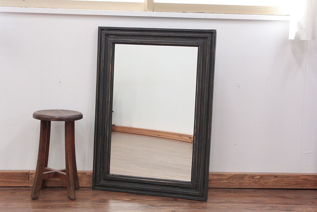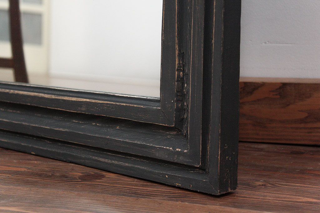 ラフジュ工房> 鏡> 姿見 > アンティーク雑貨 ラフジュ工房オリジナル アンティークペイントブラックウォールミラー(2)(鏡、姿見)