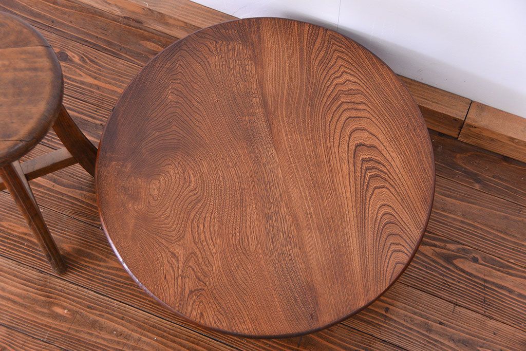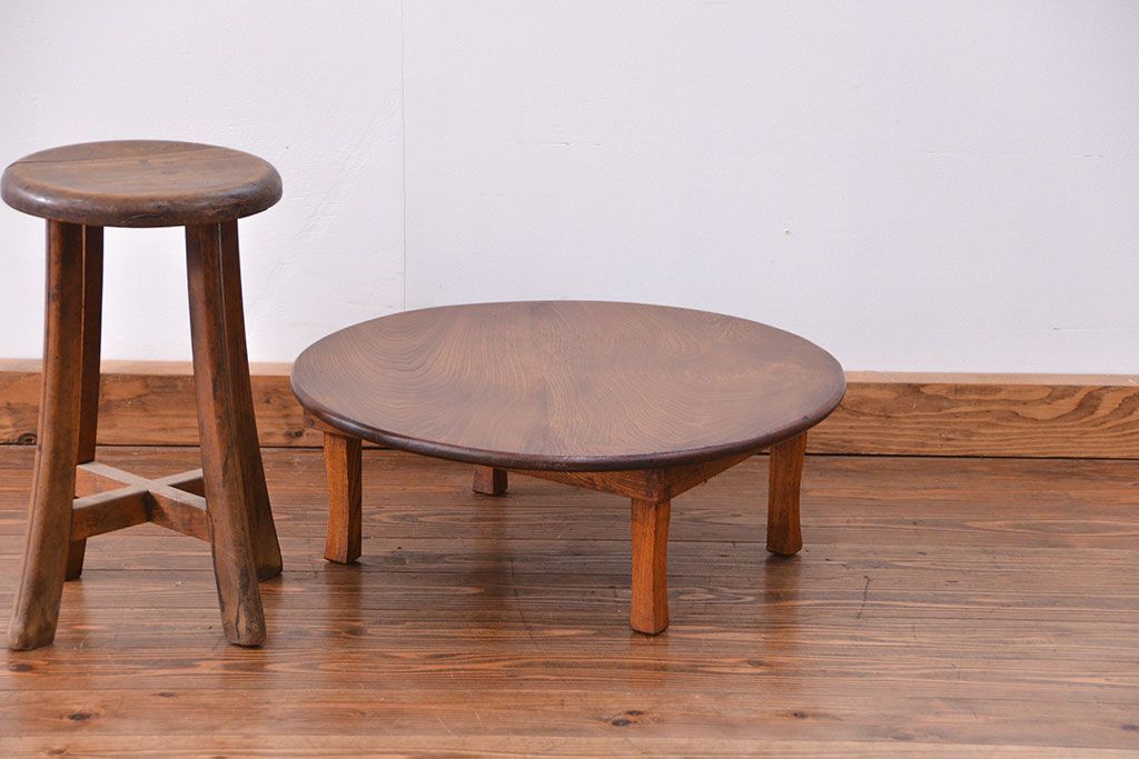 レトロ家具 昭和レトロ 古い栓材の美しい丸型ちゃぶ台(テーブル、机)