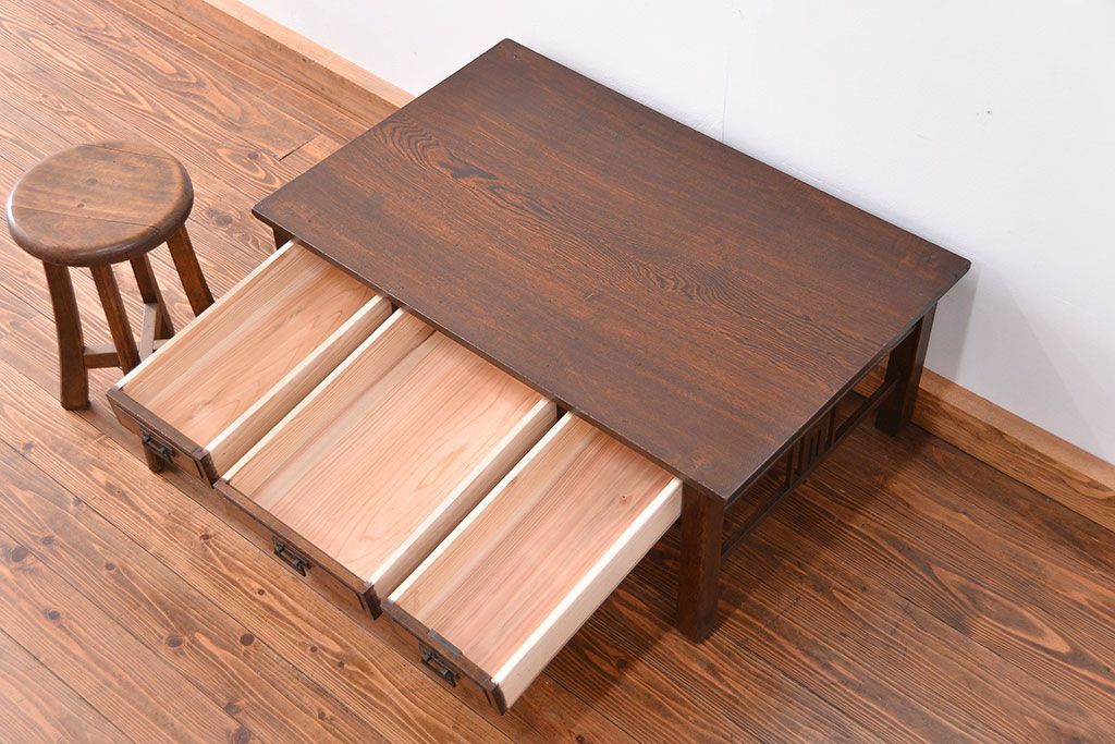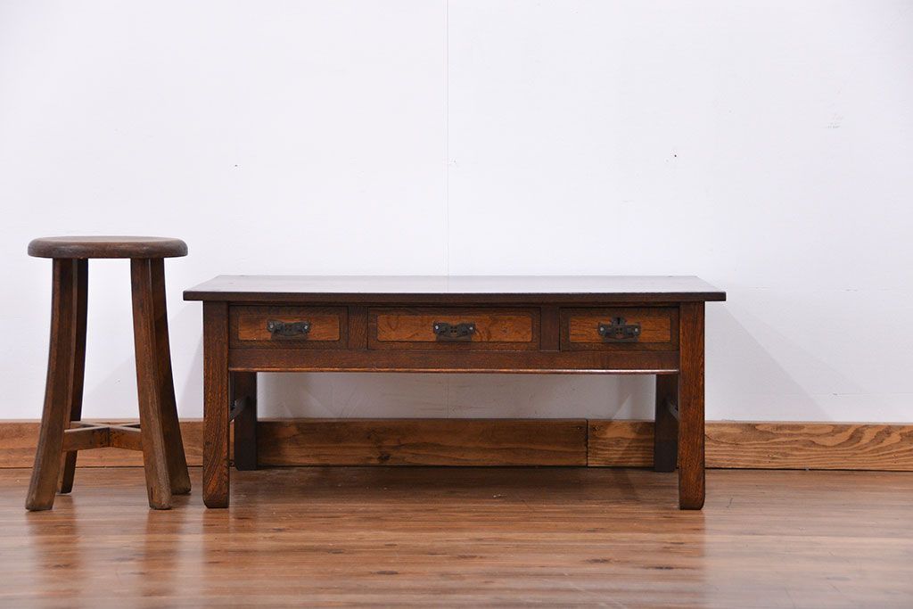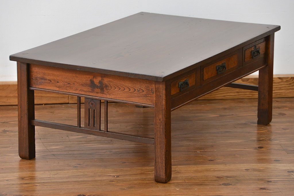 ラフジュ工房> デスク> 文机・座机 > アンティーク家具 大正ロマン 象嵌入りの上質なアンティークテーブル(文机、作業台)