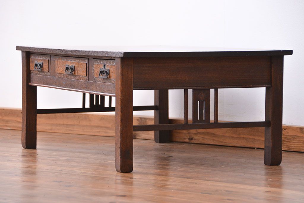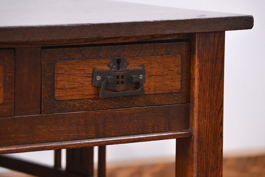 ラフジュ工房> テーブル> 作業台 > アンティーク家具 大正ロマン 象嵌入りの上質なアンティークテーブル(文机、作業台)
