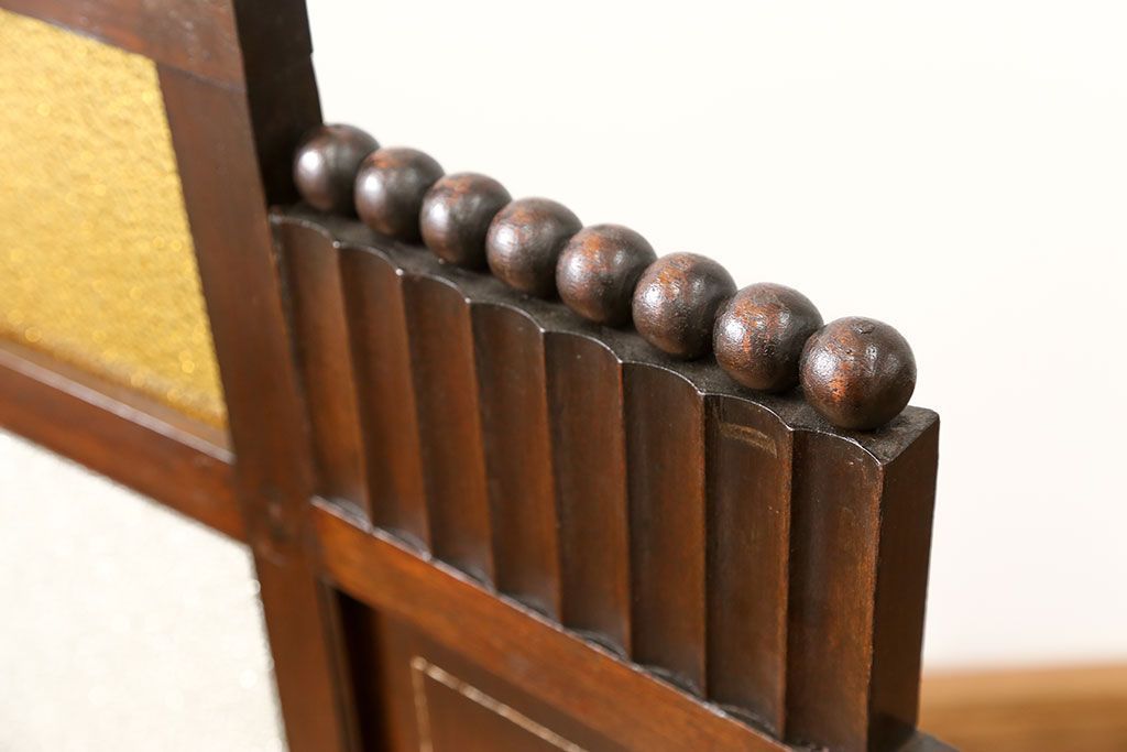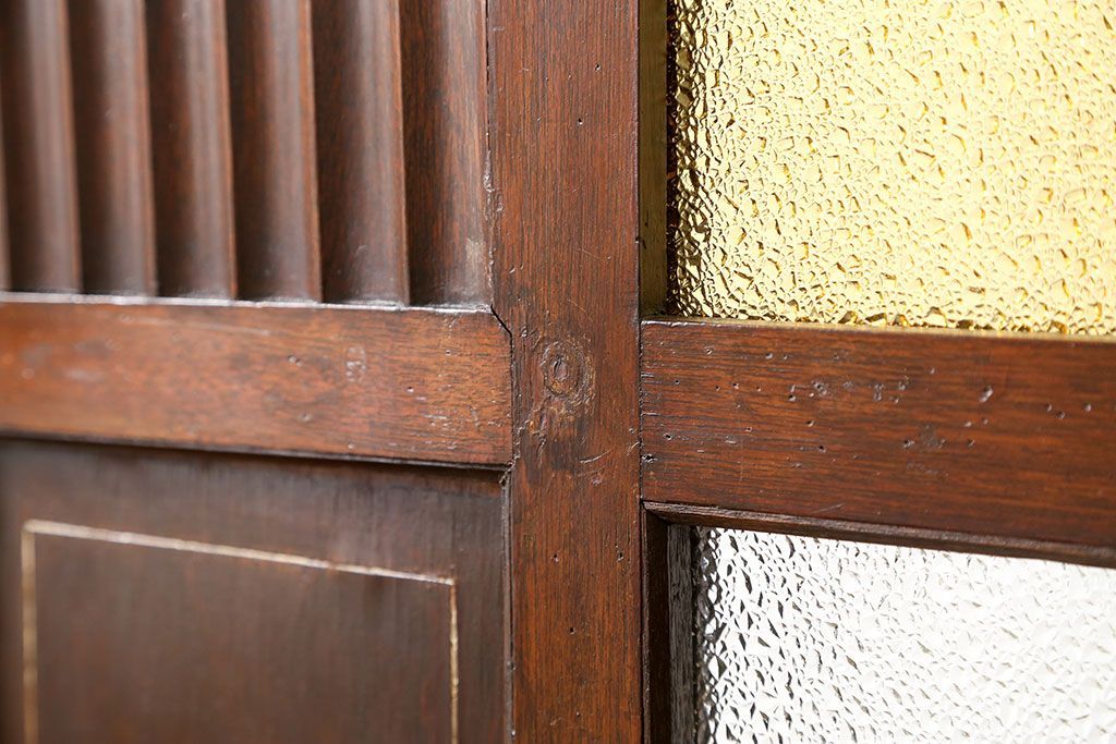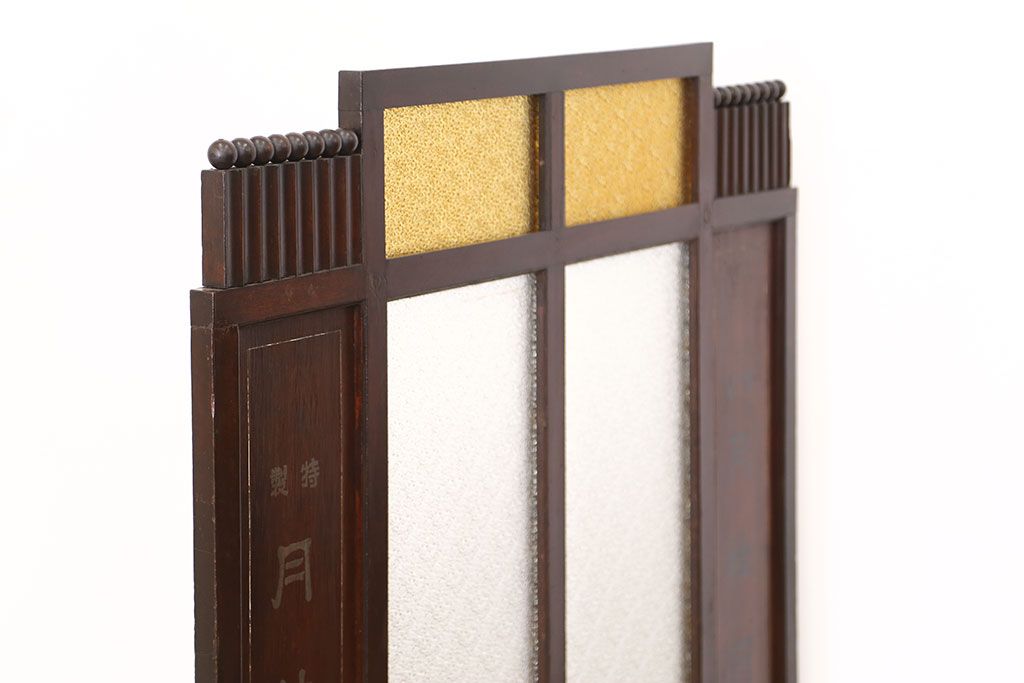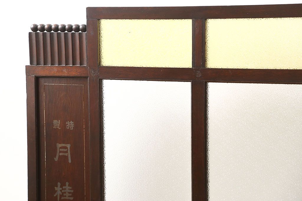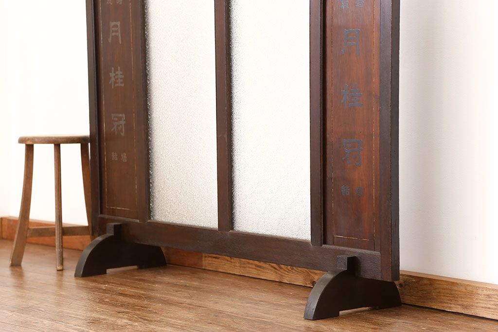 ラフジュ工房> 衝立・パーテーション > アンティーク雑貨 古い酒屋の色ガラス入りアンティーク衝立て(看板付き、ノベルティー、キリンビール)