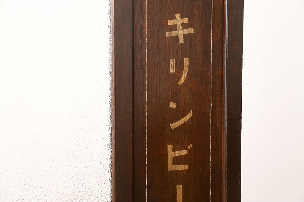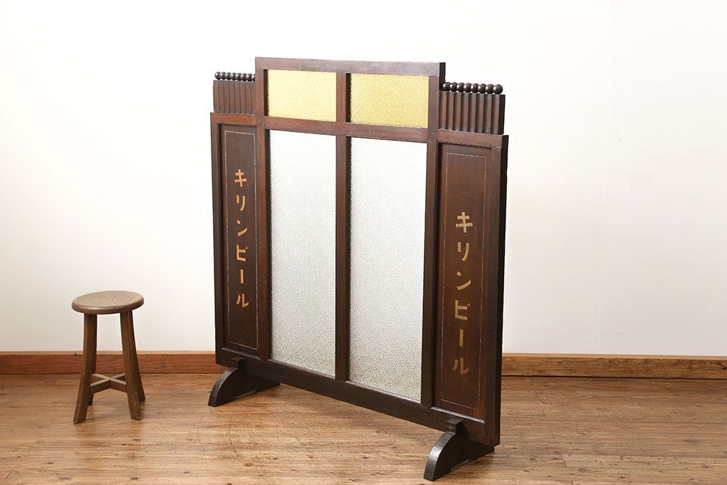 アンティーク雑貨 古い酒屋の色ガラス入りアンティーク衝立て(看板付き、ノベルティー、キリンビール)