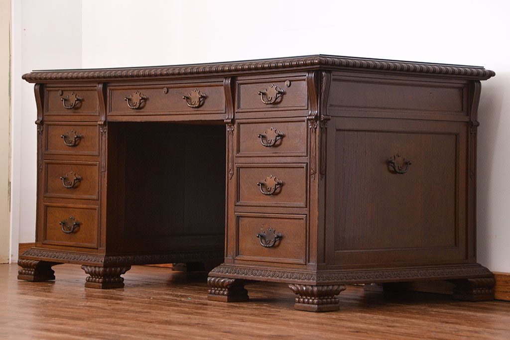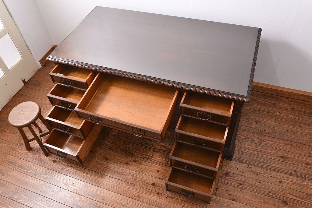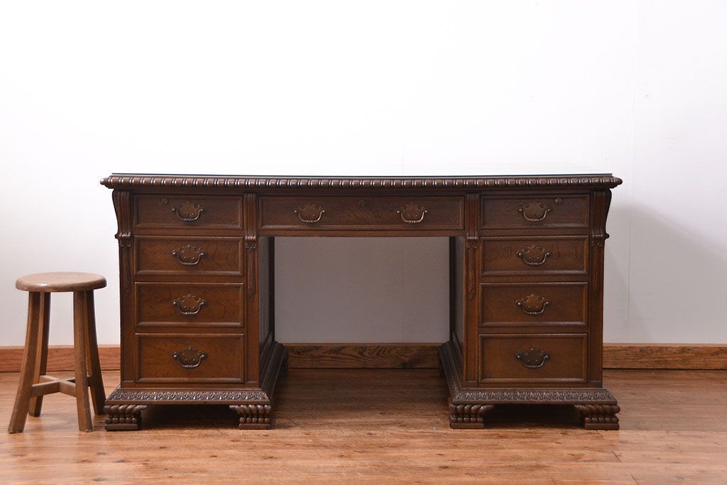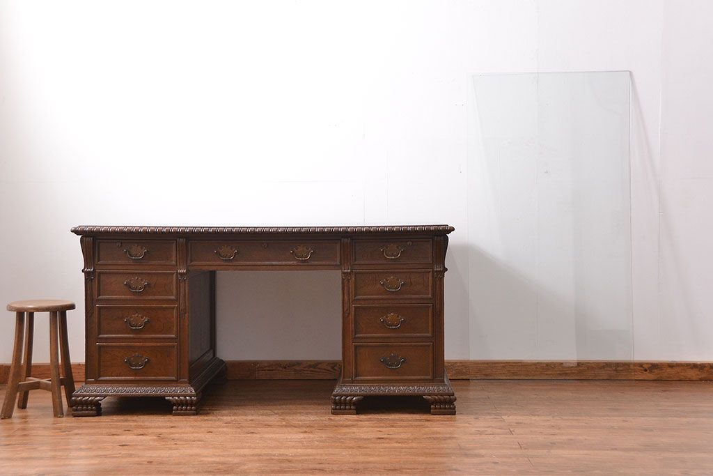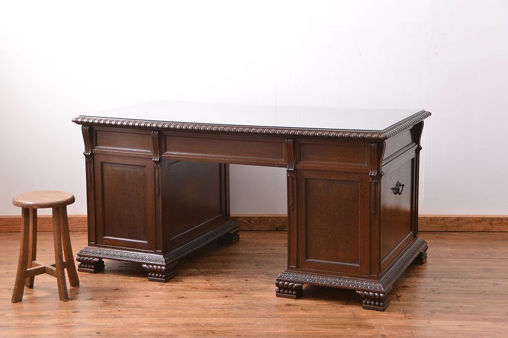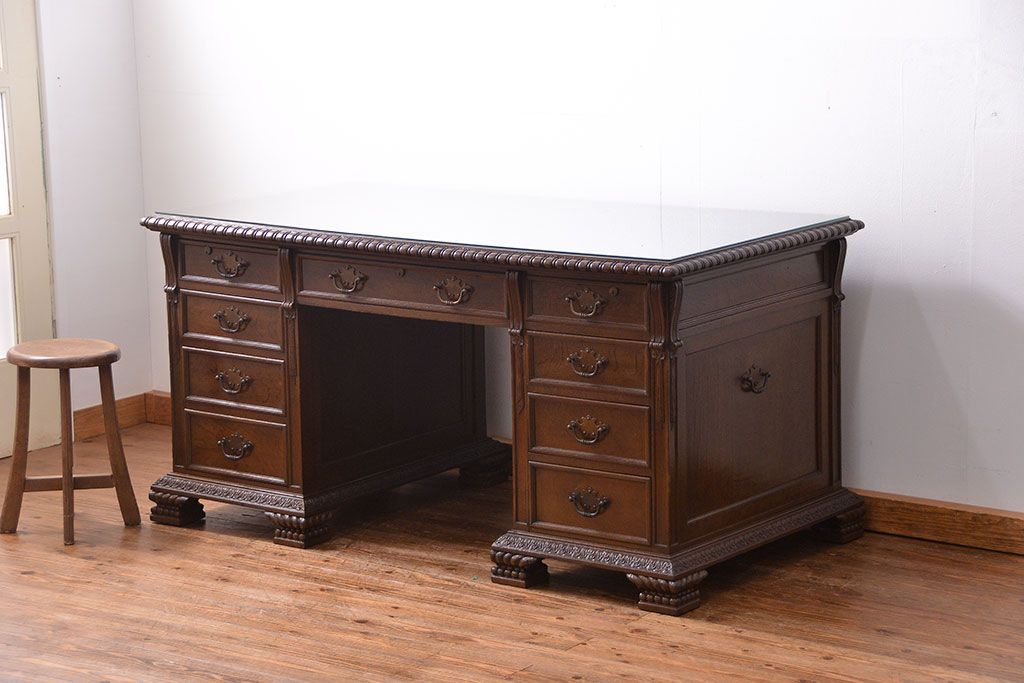 アンティーク家具 アンティーク 国産 イギリス風 重厚な高級プレジデントデスク(テーブル、作業台)