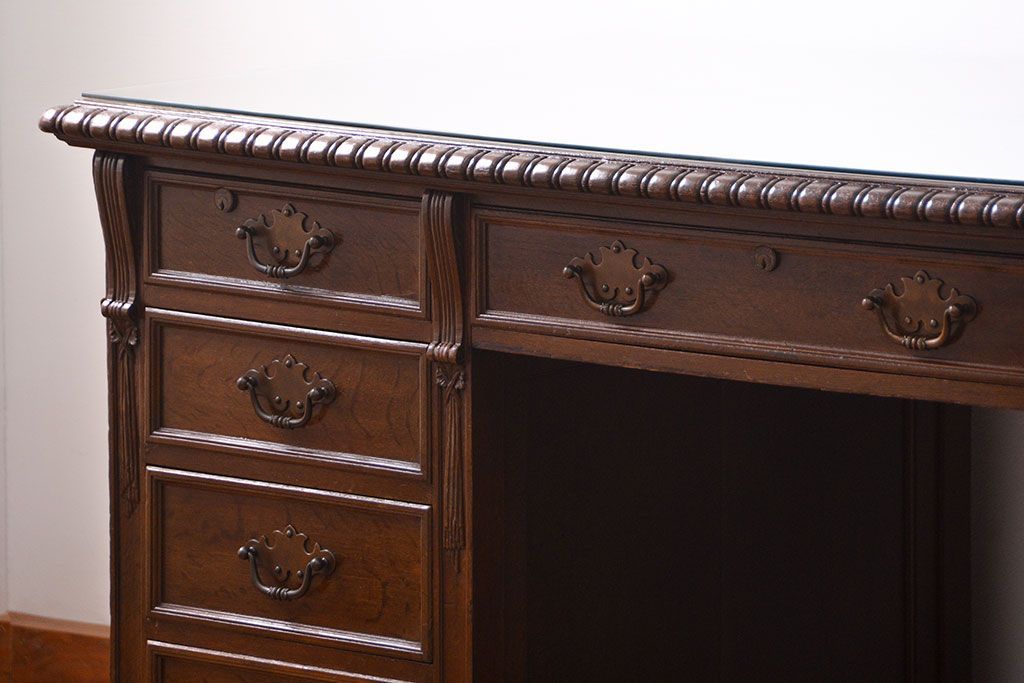 アンティーク 国産 イギリス風 重厚な高級プレジデントデスク(テーブル、作業台)です。