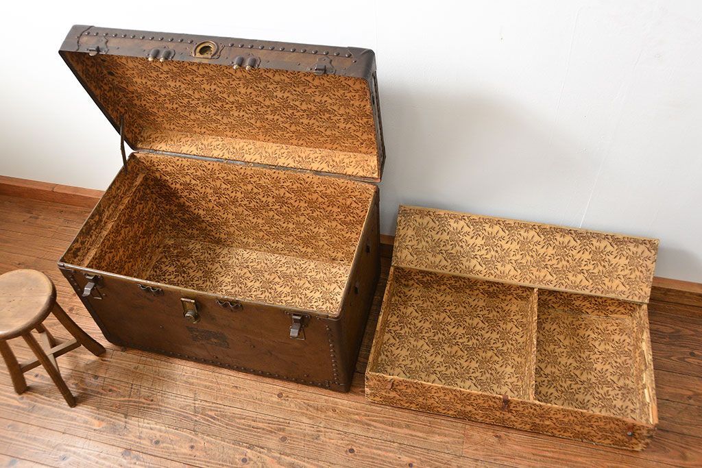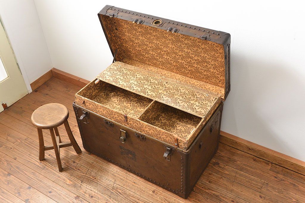 イギリスアンティーク 使い込まれた大きな船トランク