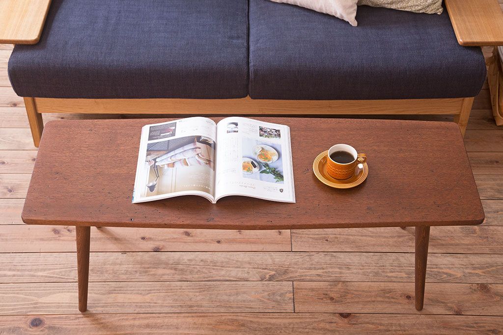 ラフジュ工房オリジナル 天板一枚板!古材を使った緩やかな曲線のセンターテーブル(大)(2)です。