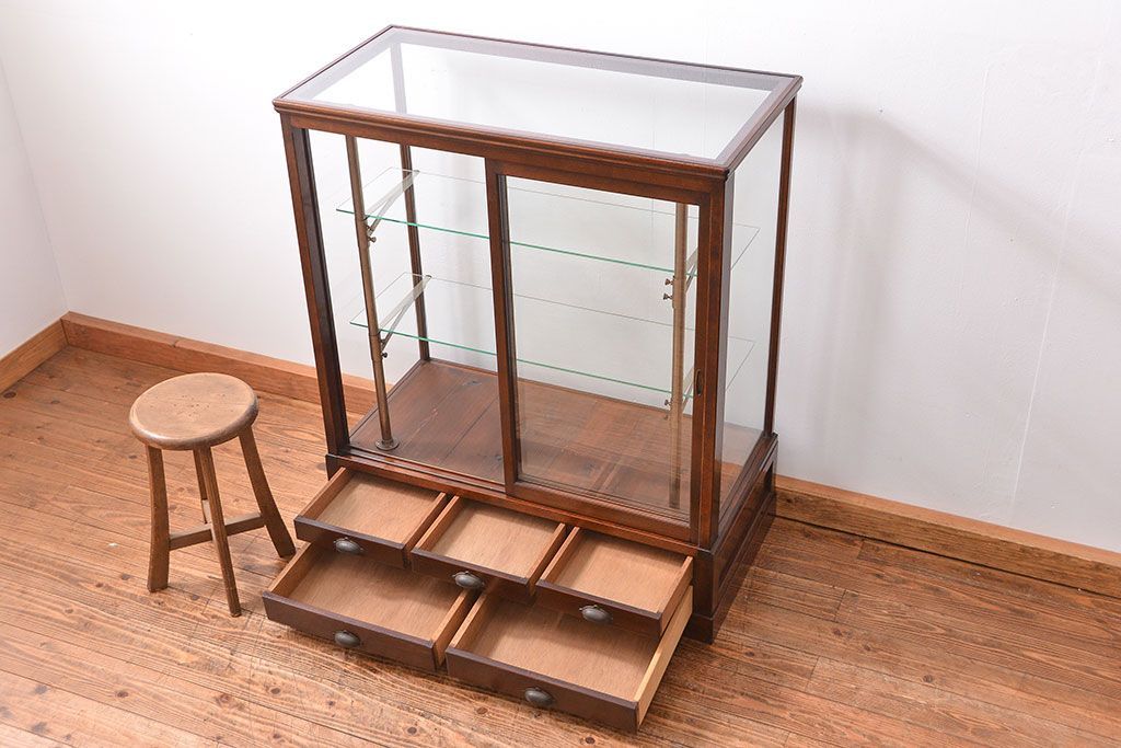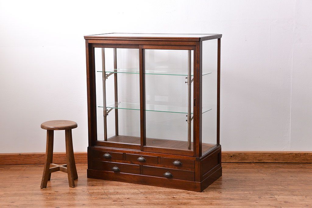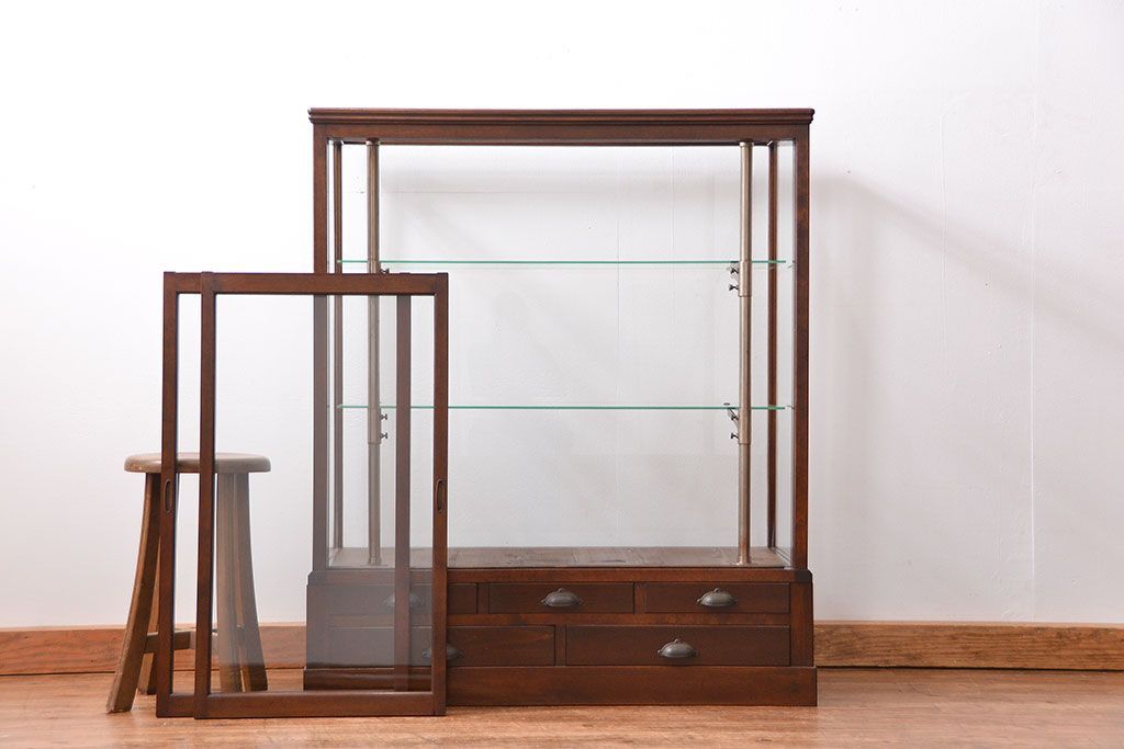 アンティーク家具 大正ロマン 高級品 古い桜材の上質なガラスケース(ショーケース)