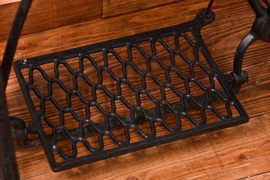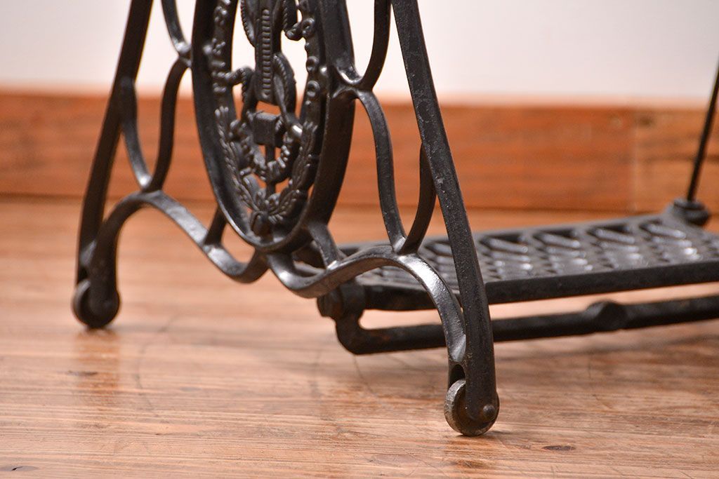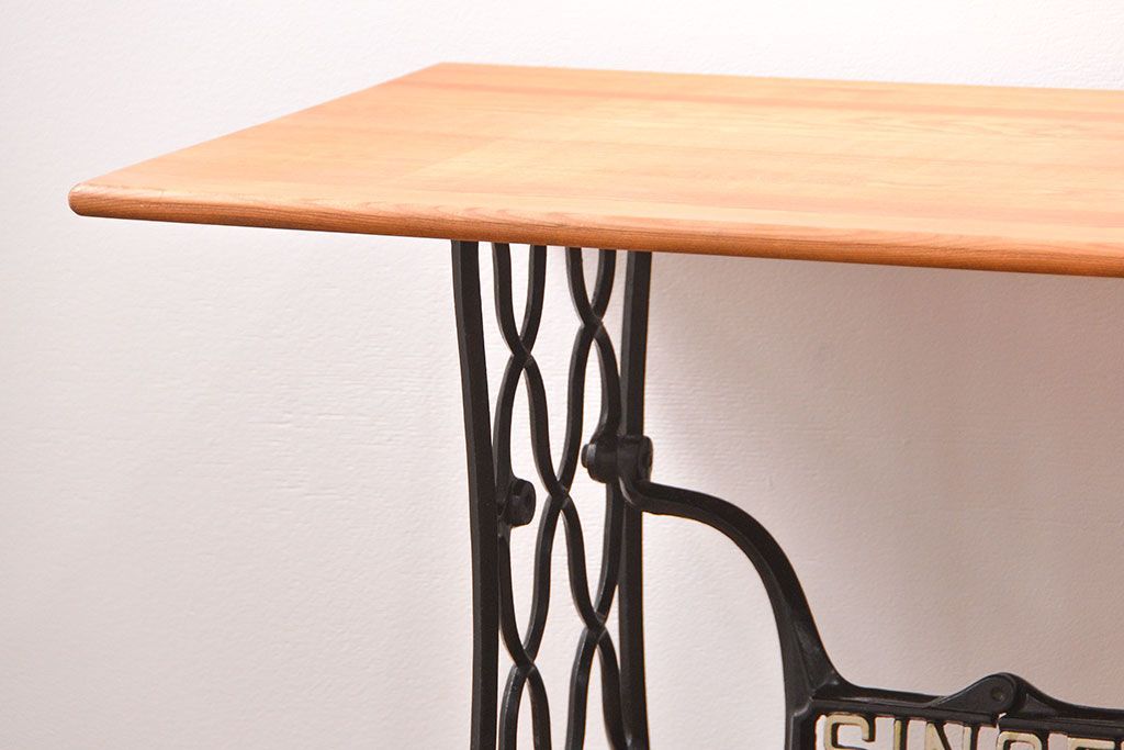 脚の網目がお洒落なイギリス製シンガーミシンをリメイクした机です。