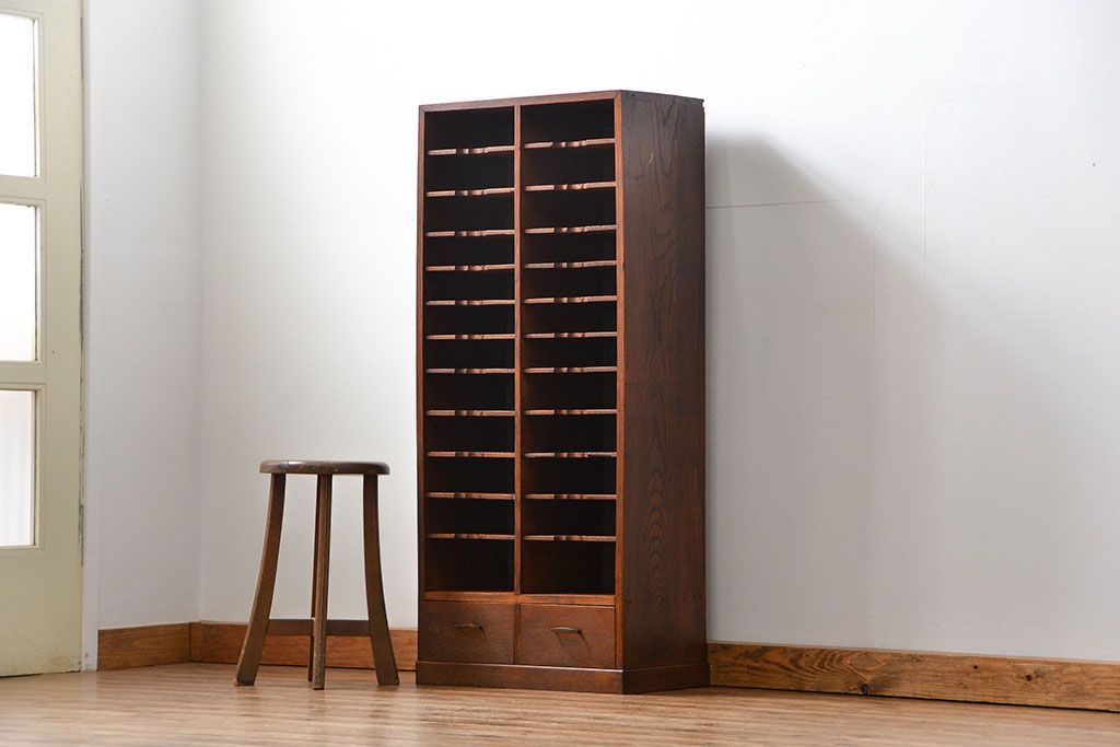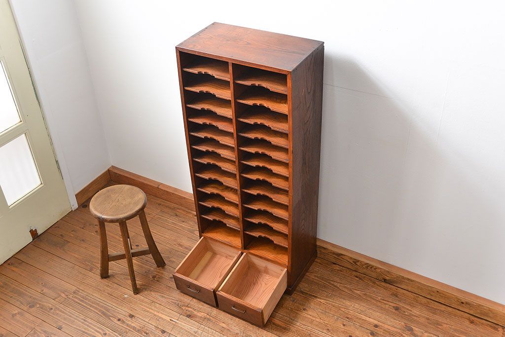 アンティーク家具 アンティーク 古い栗材の重厚な書類棚(カルテケース、小引き出し)
