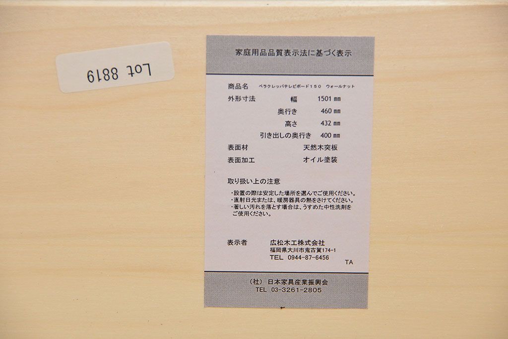中古 広松木工製 ウォールナットテレビボード 定価11万円 (TVボード、ローボード)