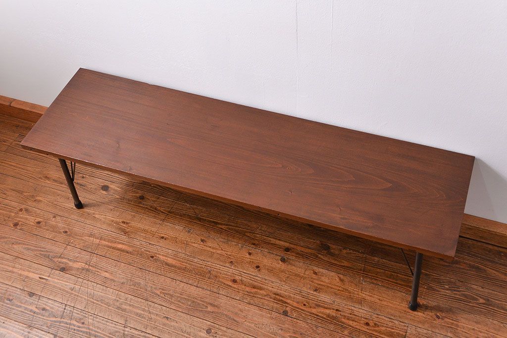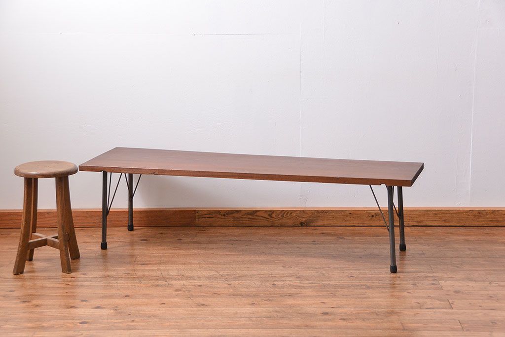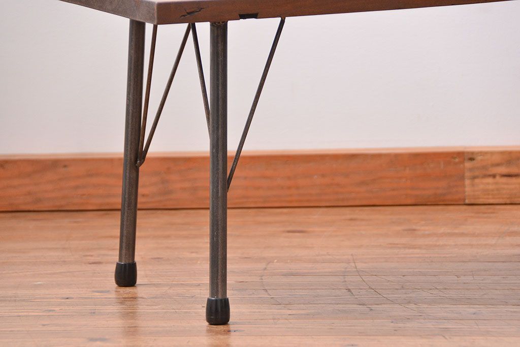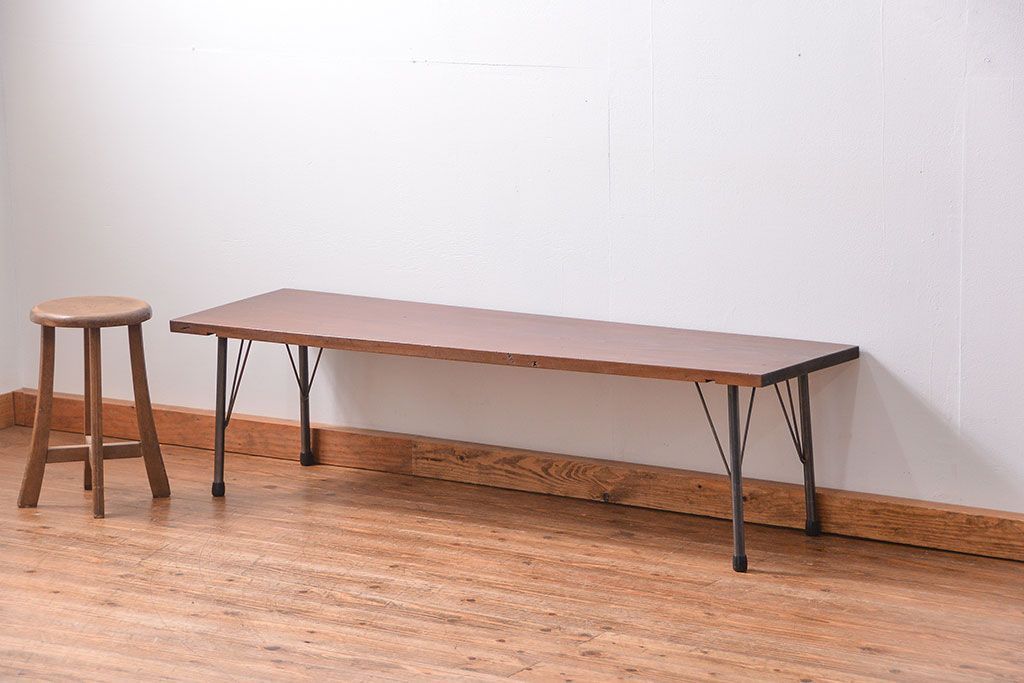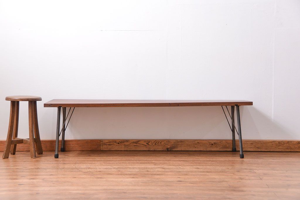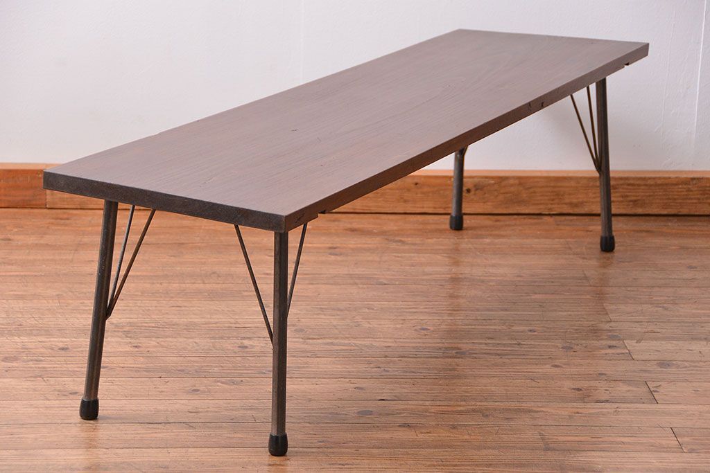 アンティーク 天板一枚板 使い込まれた古材天板の鉄脚センターテーブル(2)(ベンチ、長椅子、長イス)です。