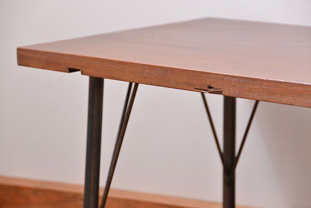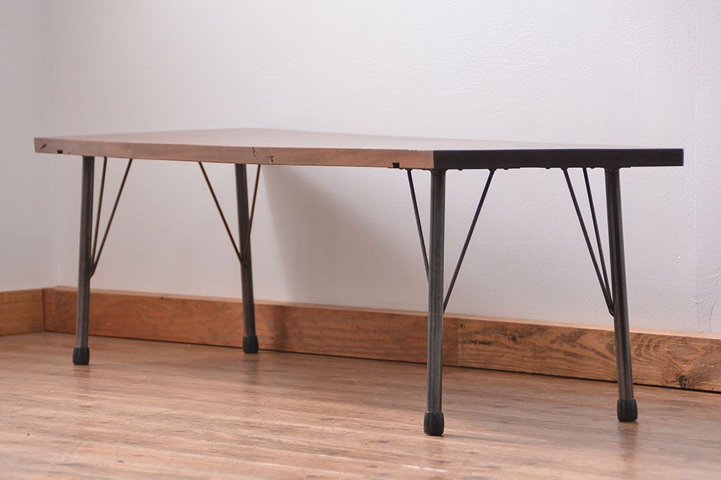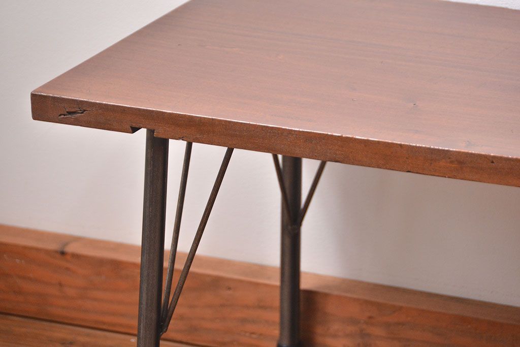 店舗什器 > アンティーク家具 アンティーク 天板一枚板 使い込まれた古材天板の鉄脚センターテーブル(2)(ベンチ、長椅子、長イス)