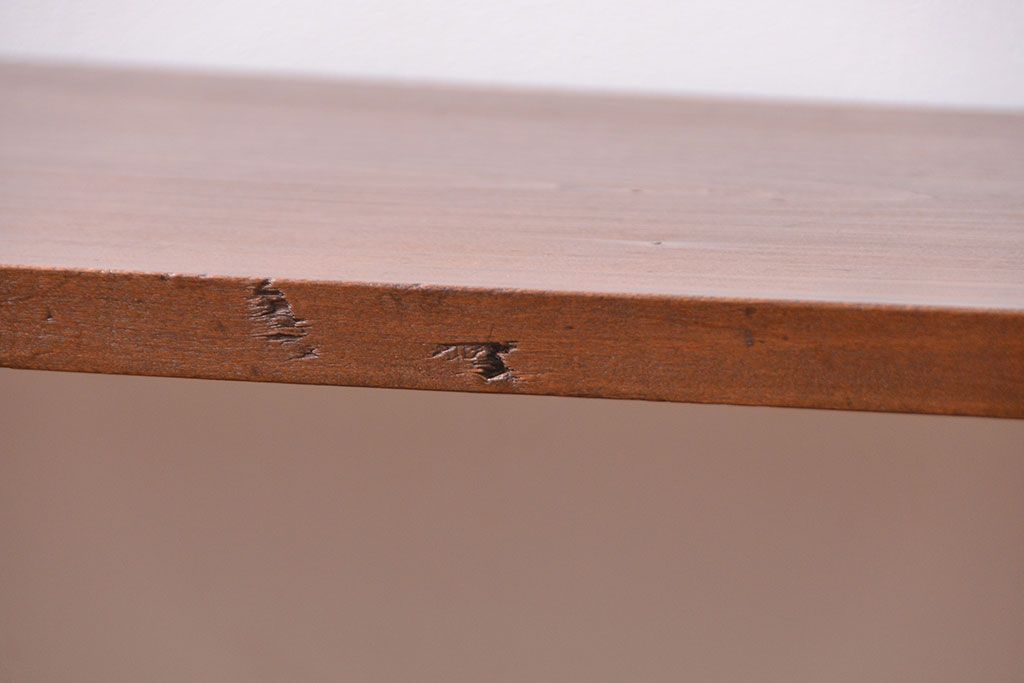 テーブル> カウンターテーブル > アンティーク家具 アンティーク 天板一枚板 使い込まれた古材天板の鉄脚センターテーブル(2)(ベンチ、長椅子、長イス)