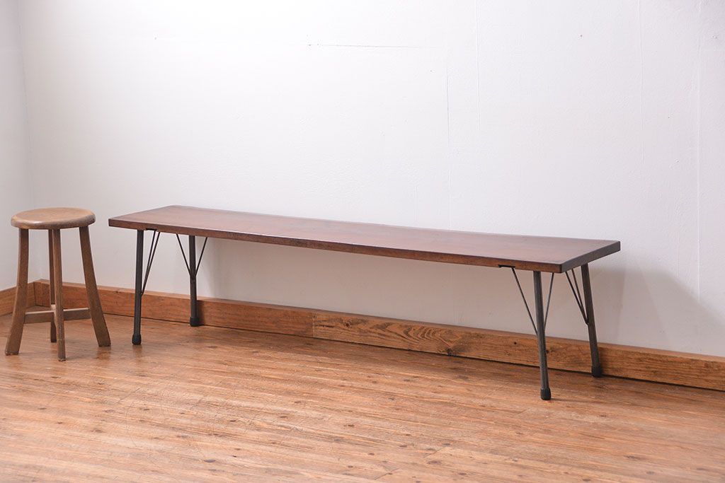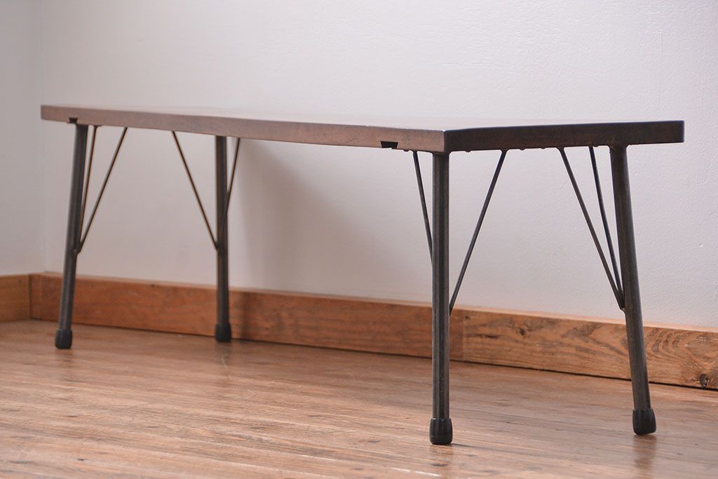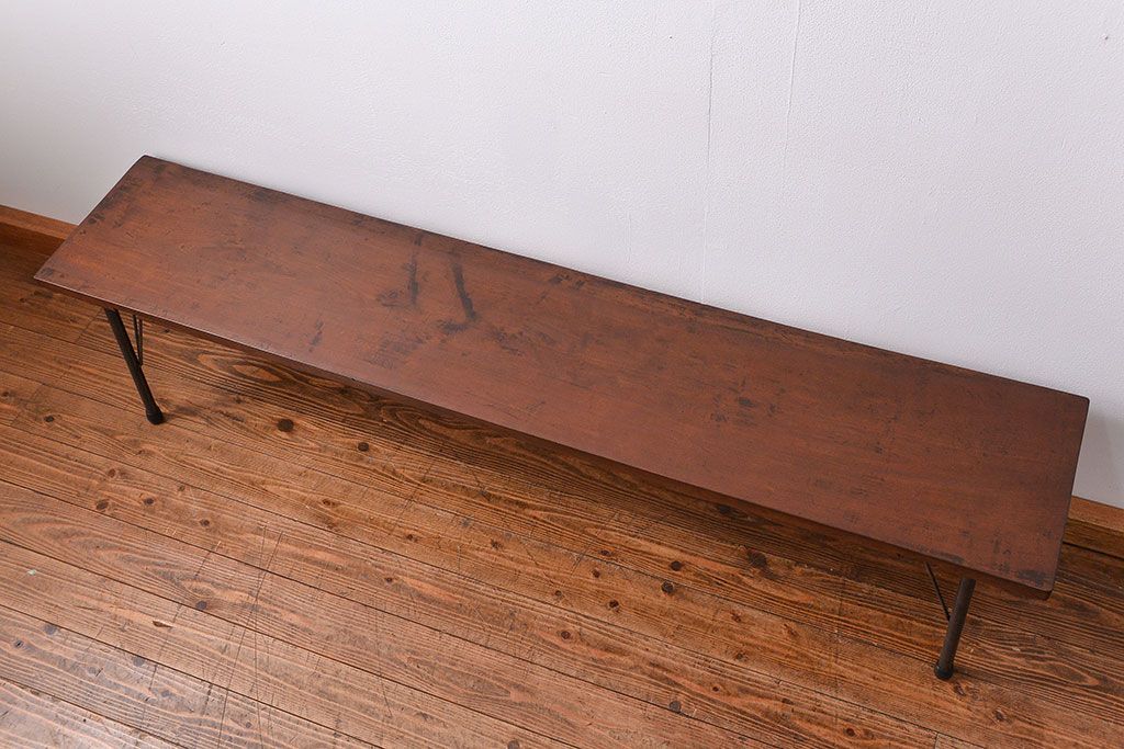 ラフジュ工房> 椅子・ベンチ> ベンチ > アンティーク家具 アンティーク 天板一枚板 使い込まれた古材天板の鉄脚センターテーブル(3)