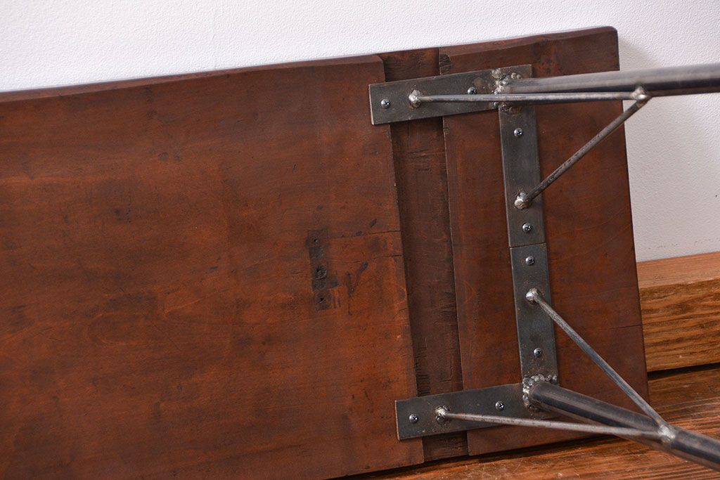 アンティーク家具 アンティーク 天板一枚板 使い込まれた古材天板の鉄脚センターテーブル(3)
