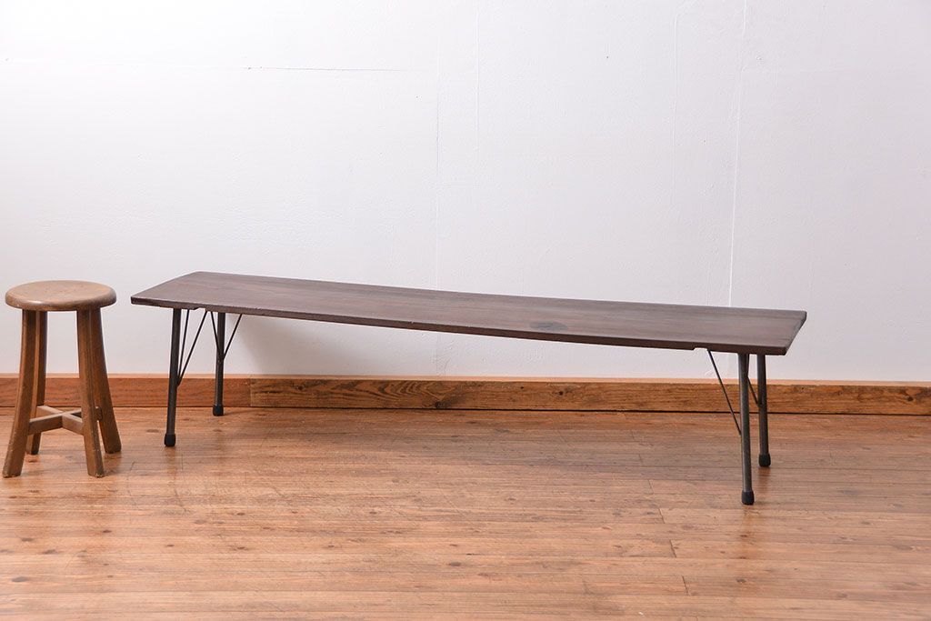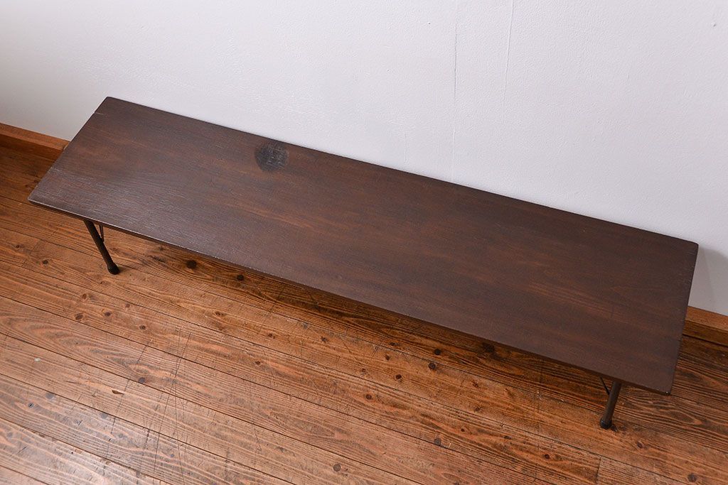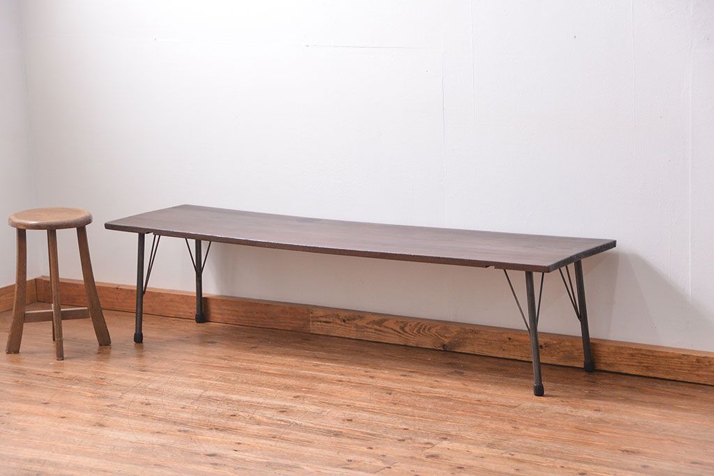 アンティーク 天板一枚板 使い込まれた古材天板の鉄脚センターテーブル(4)です。