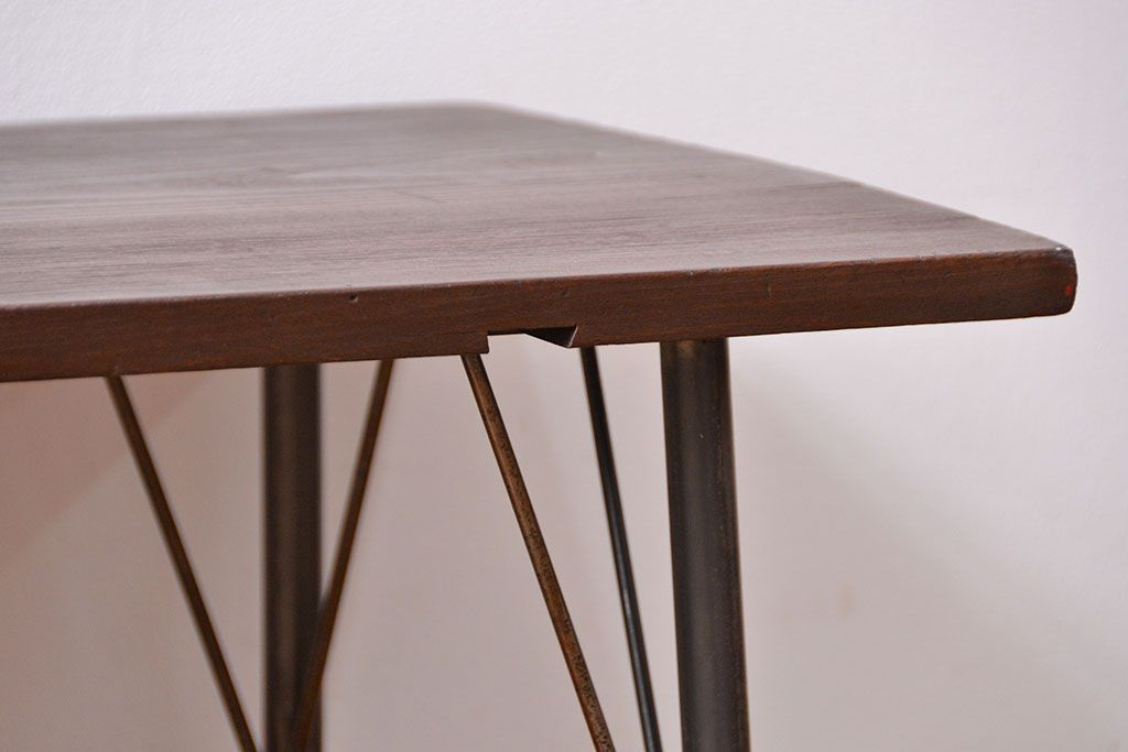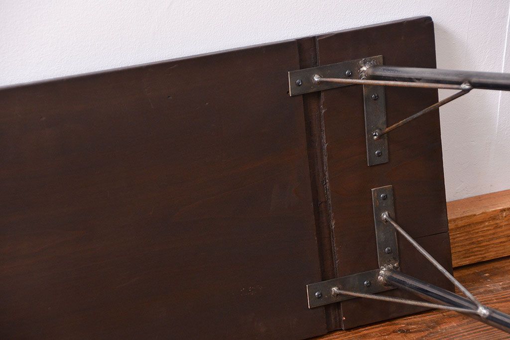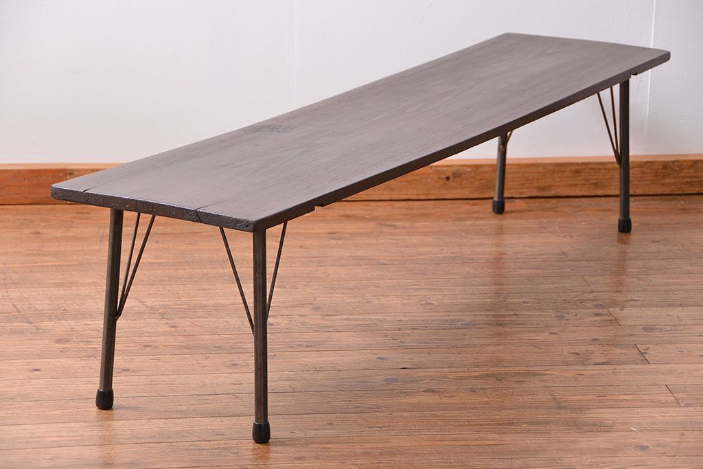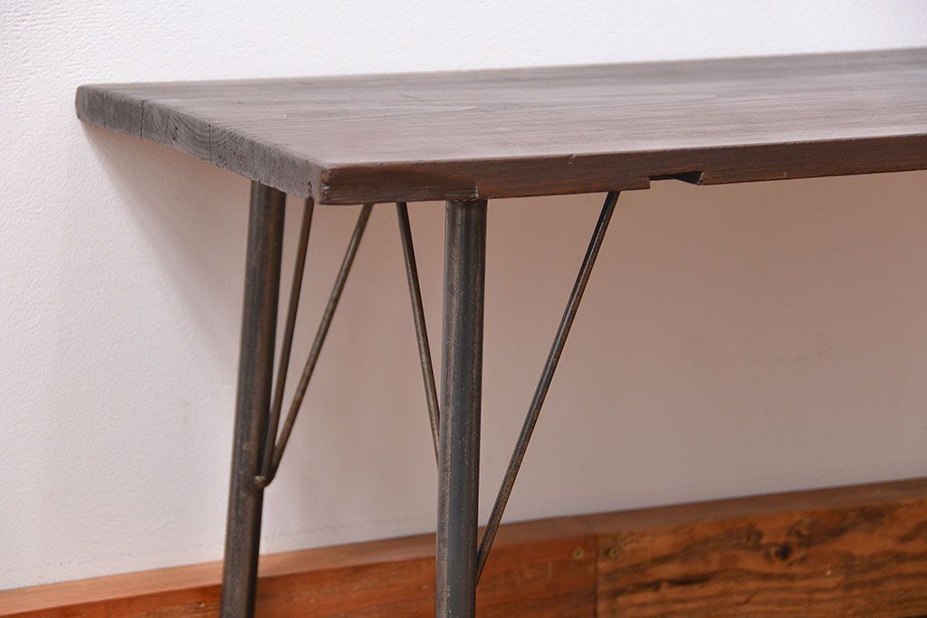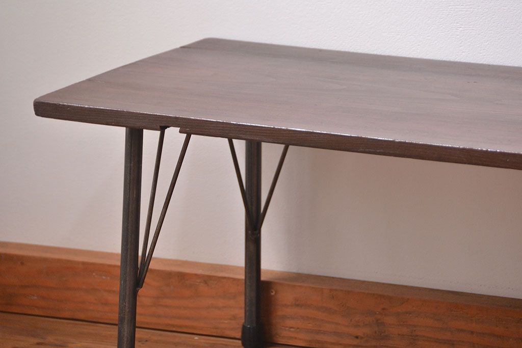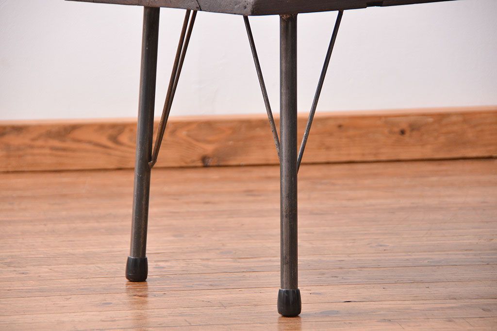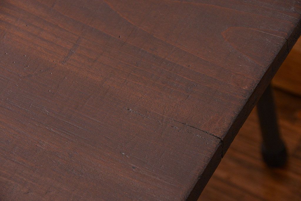 アンティーク家具 アンティーク 天板一枚板 使い込まれた古材天板の鉄脚センターテーブル(4)