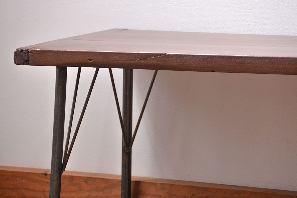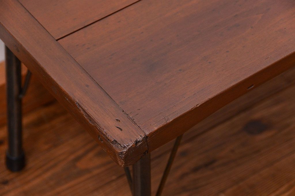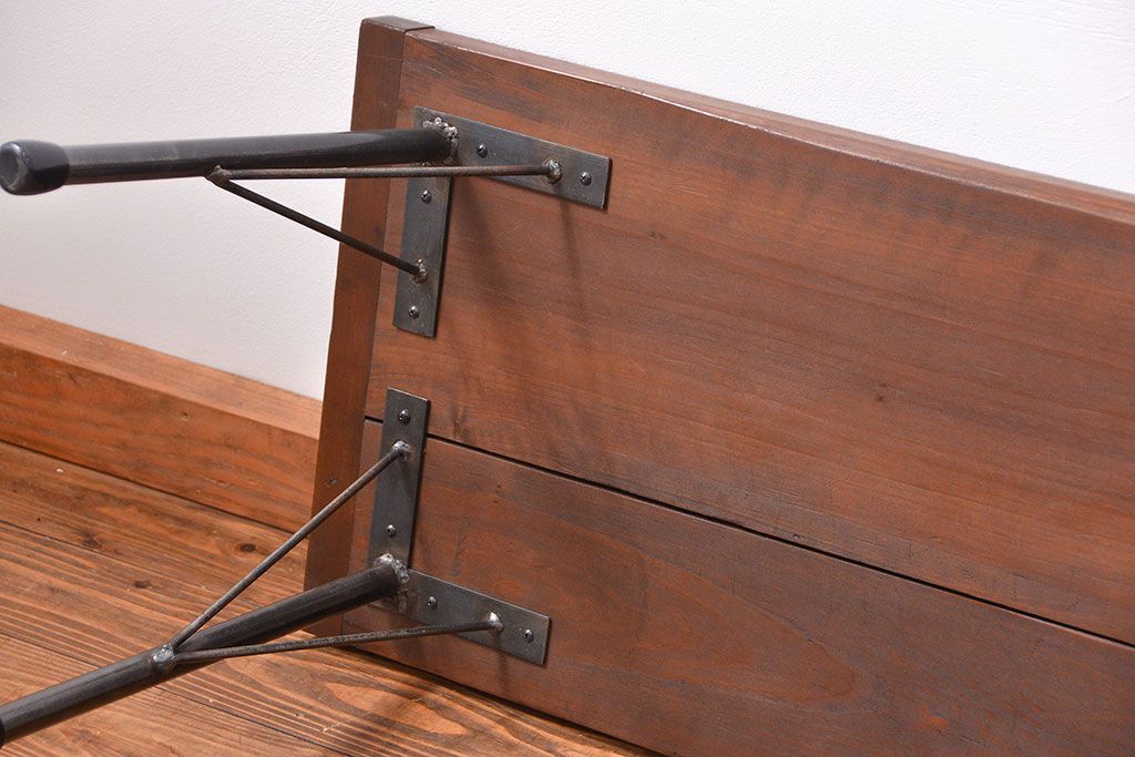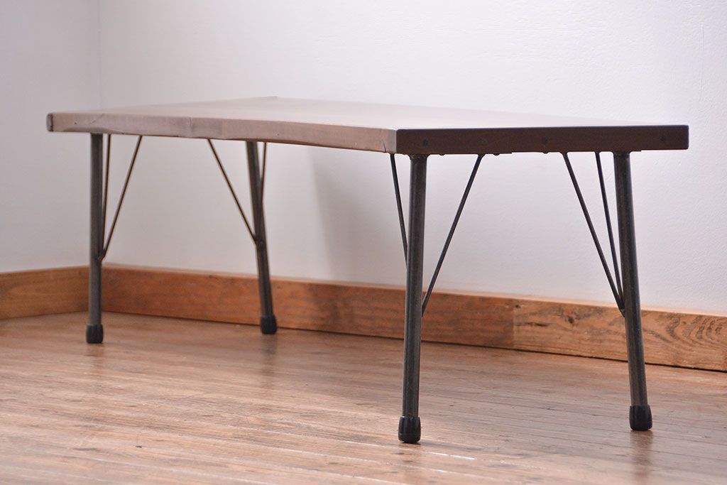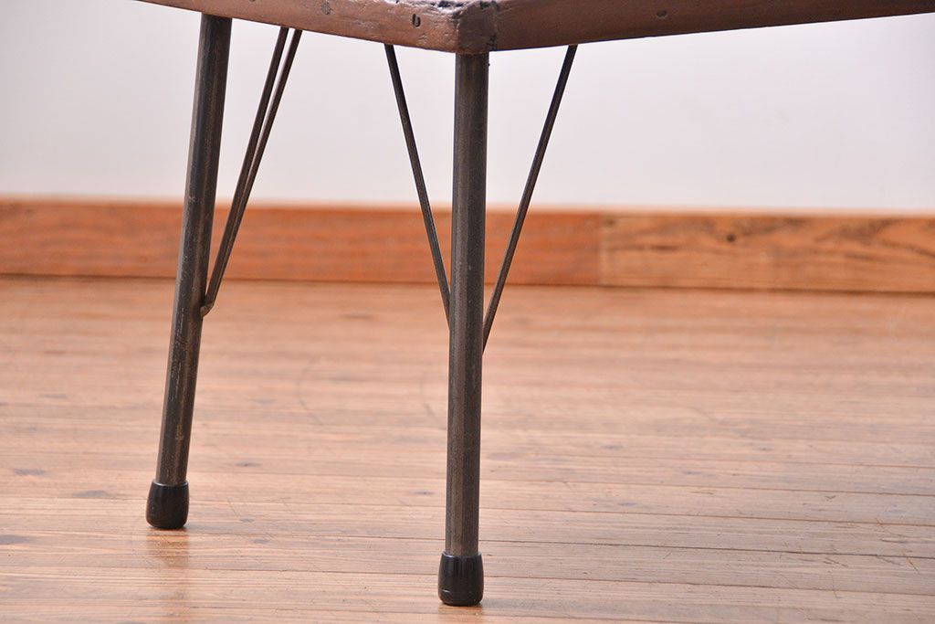 アンティーク家具 アンティーク 使い込まれた古材天板の鉄脚センターテーブル(1)(机、ベンチ、長椅子)