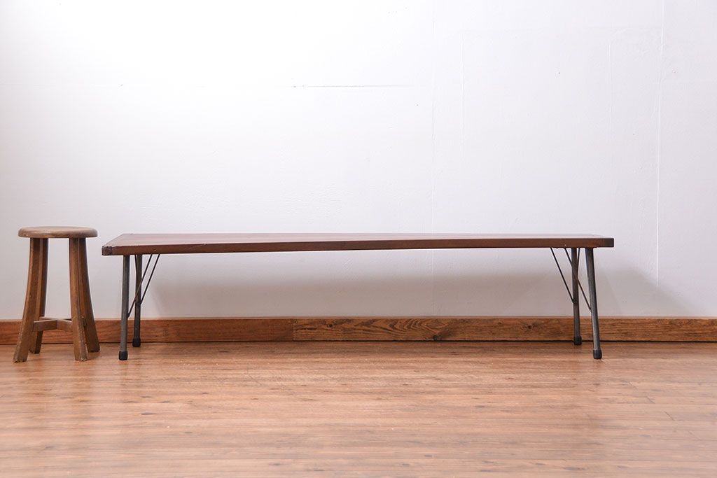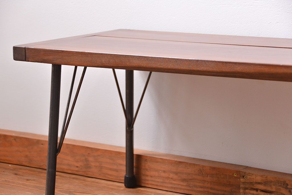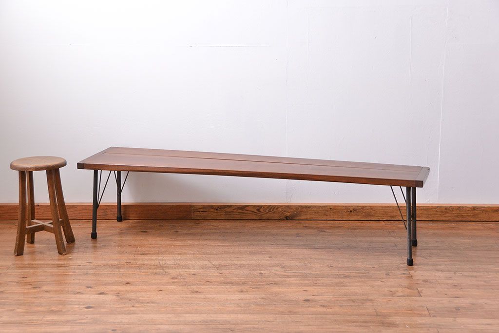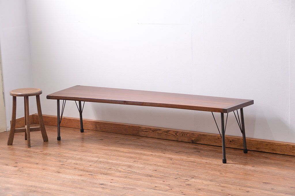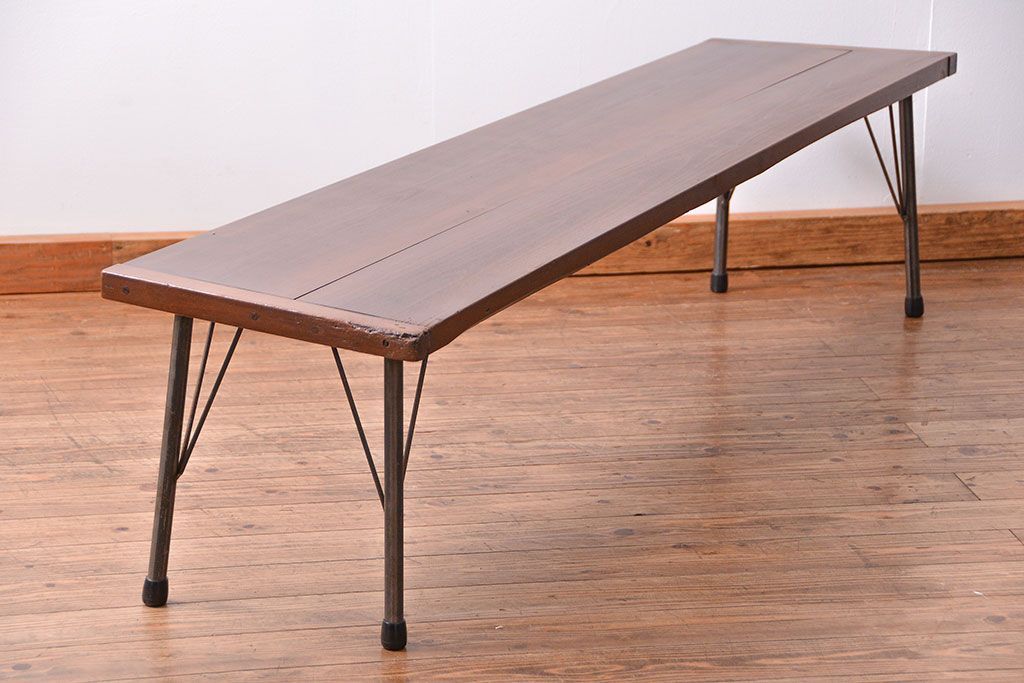 アンティーク家具 アンティーク 使い込まれた古材天板の鉄脚センターテーブル(1)(机、ベンチ、長椅子)