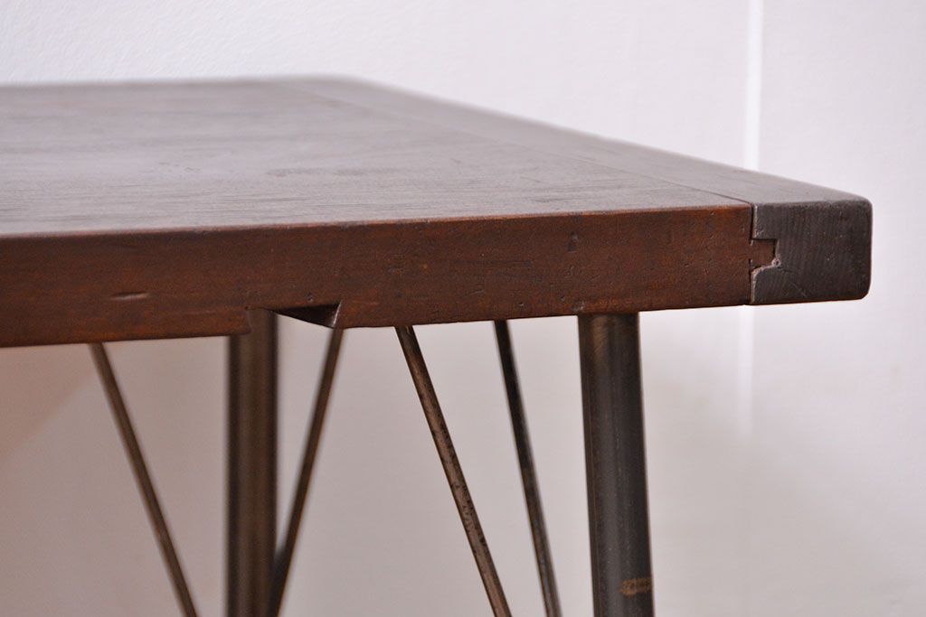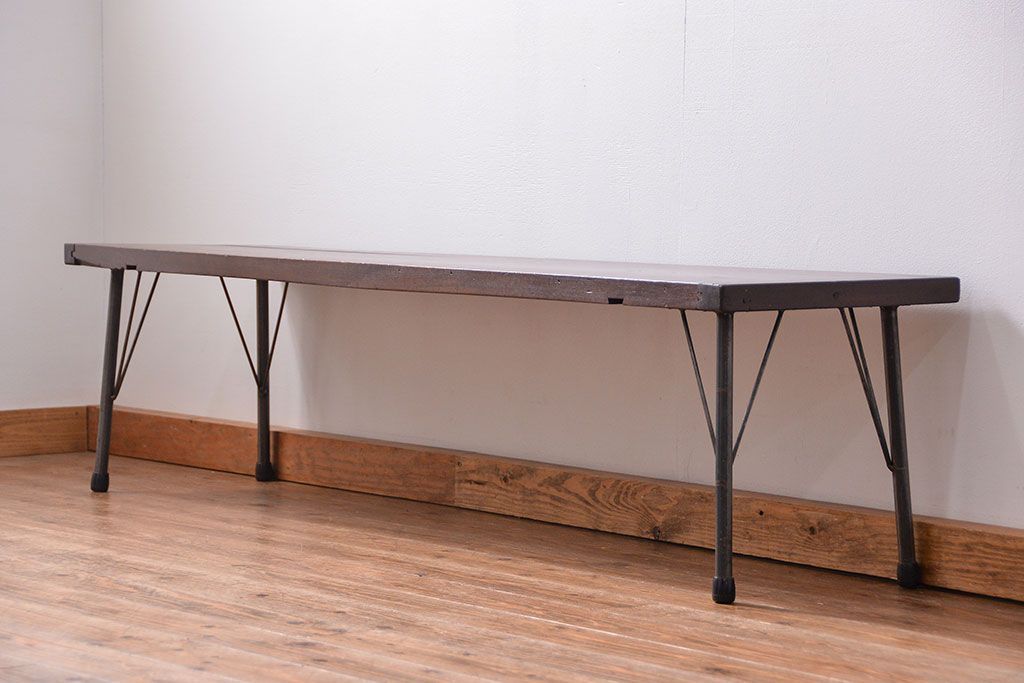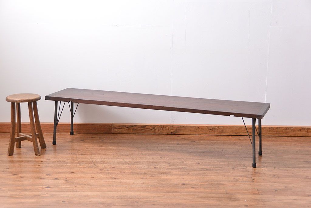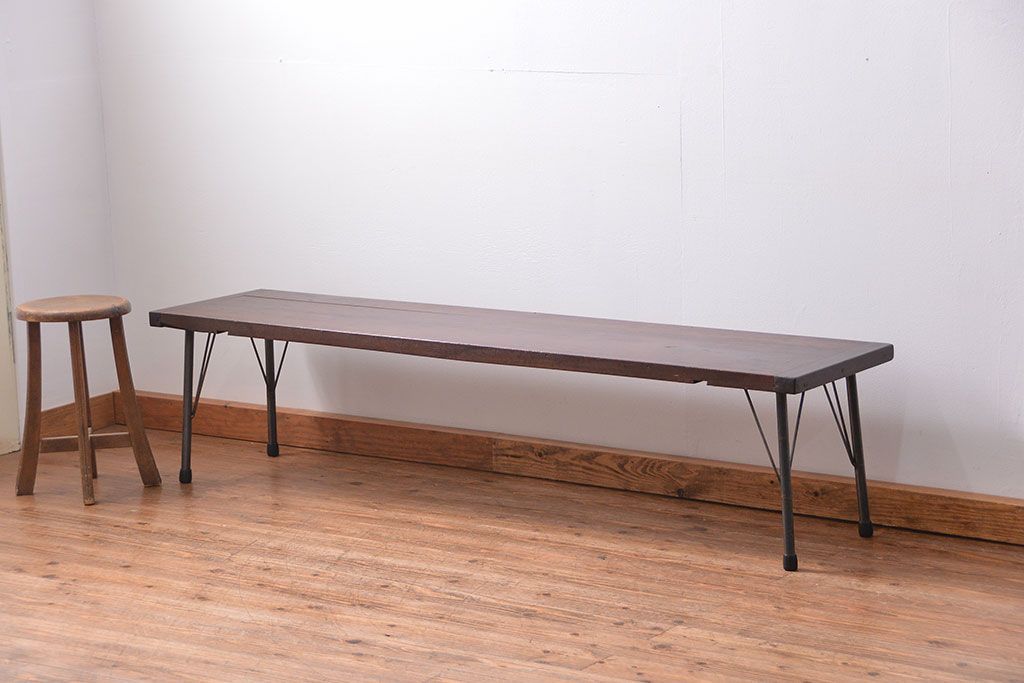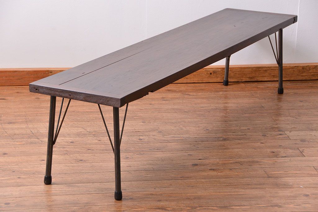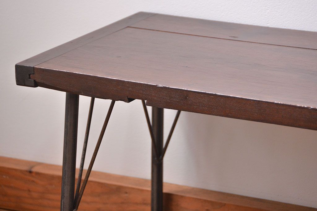 アンティーク家具 アンティーク 使い込まれた古材天板の鉄脚センターテーブル(2)(机、ベンチ、長椅子)