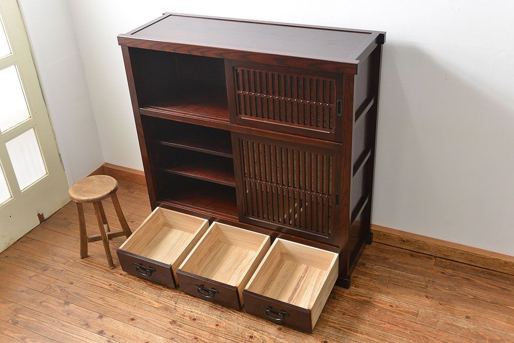 民芸家具 > 中古 三越で購入 上質な高級水屋箪笥 定価約35万円(茶箪笥、食器棚、収納棚)