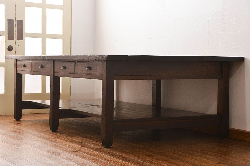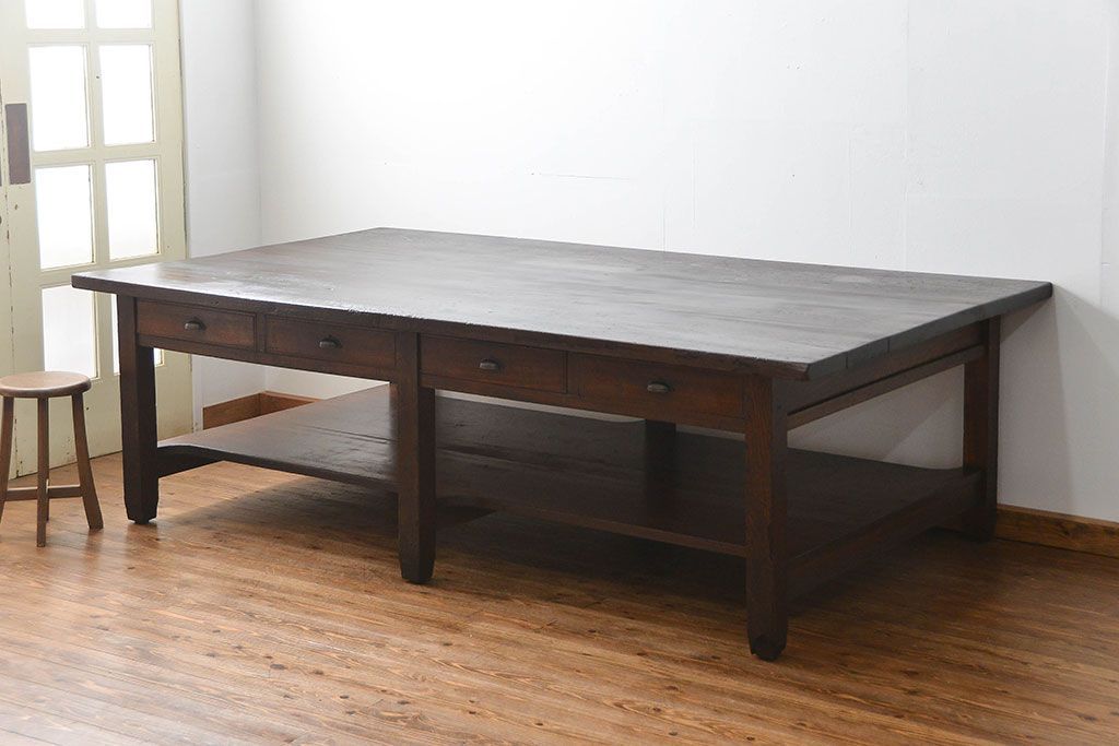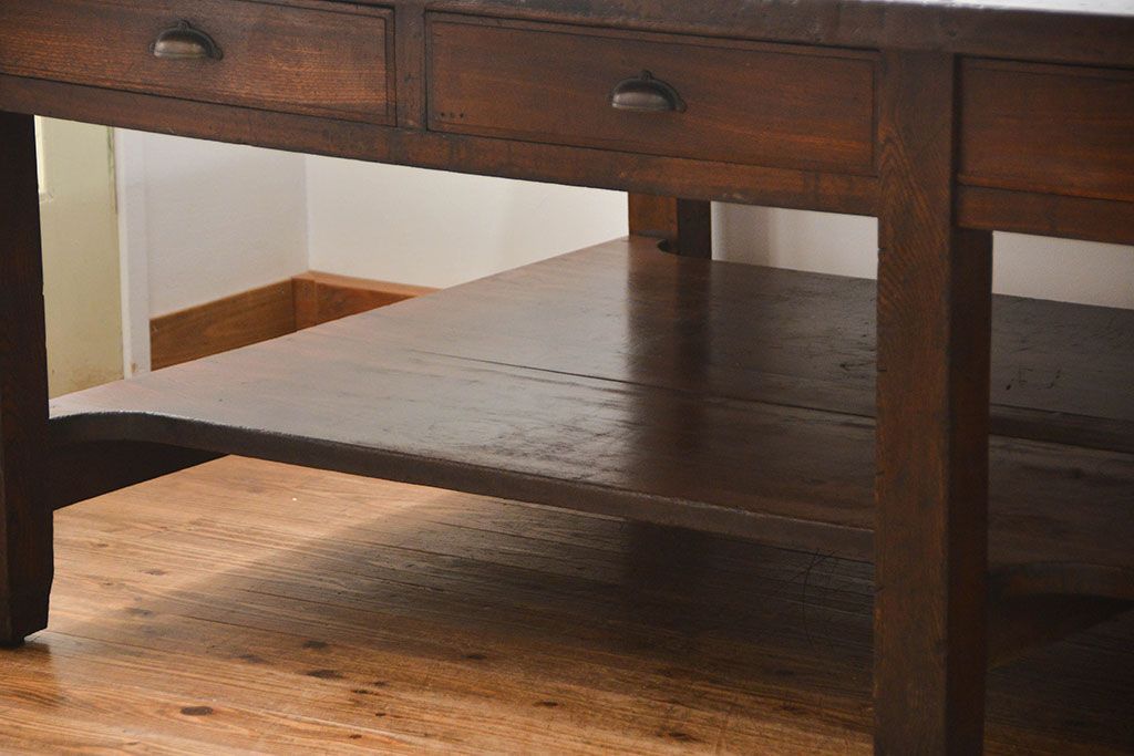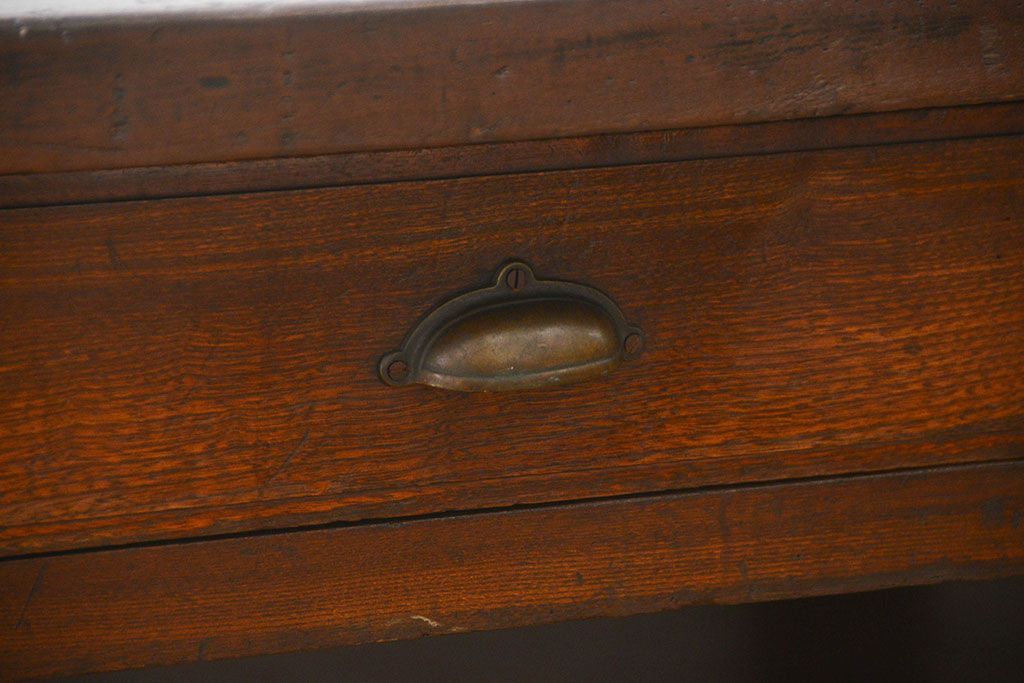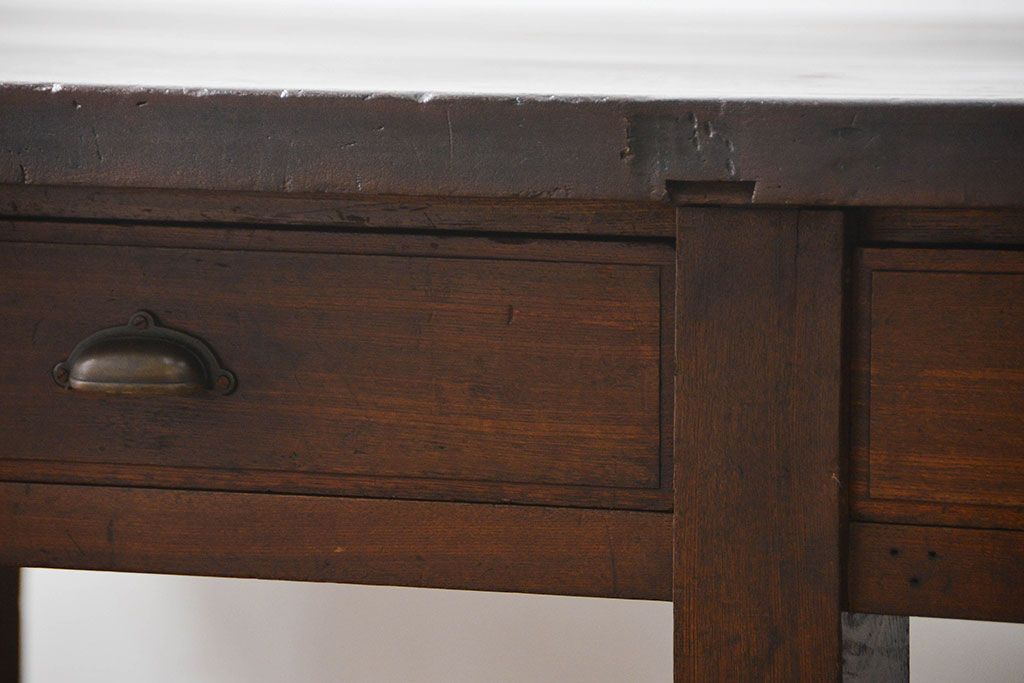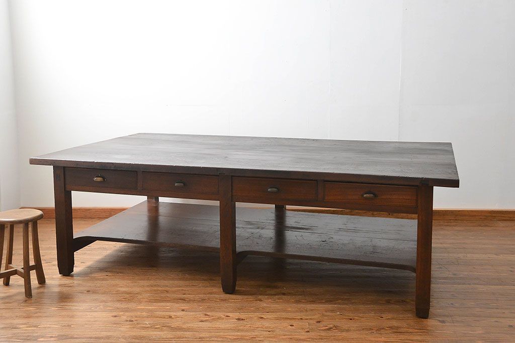 テーブル> 作業台 > アンティーク家具 アンティーク 特大!古い学校の両面引き出し作業台(テーブル、デスク、机、在宅ワーク、在宅用陳列台)