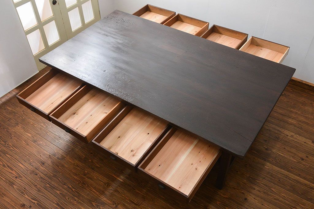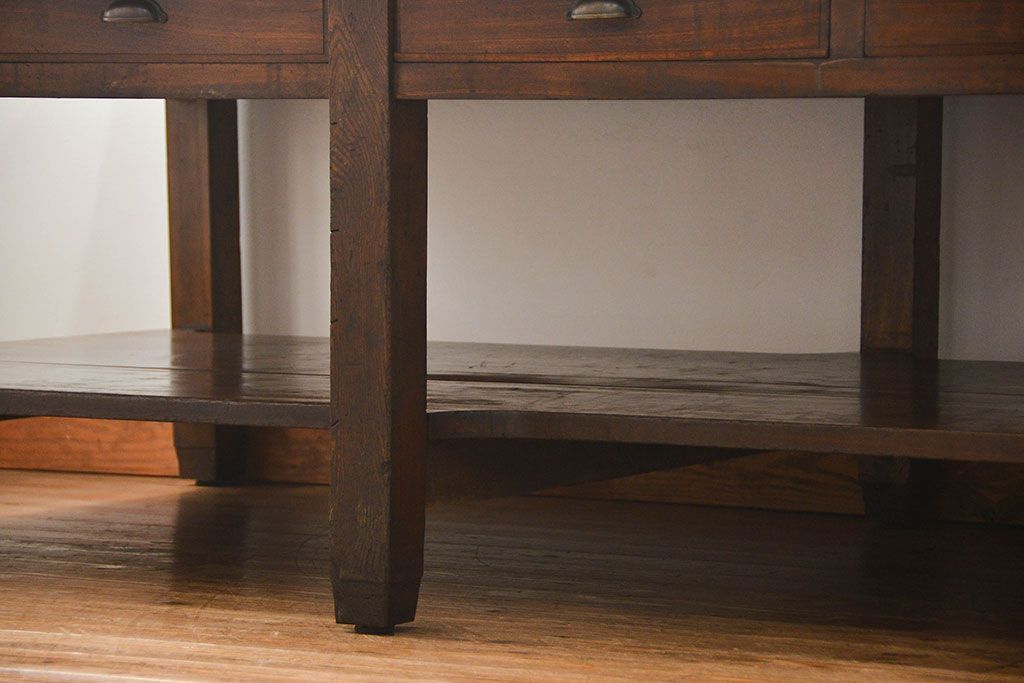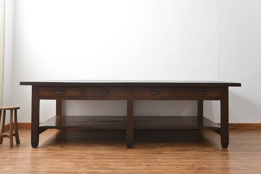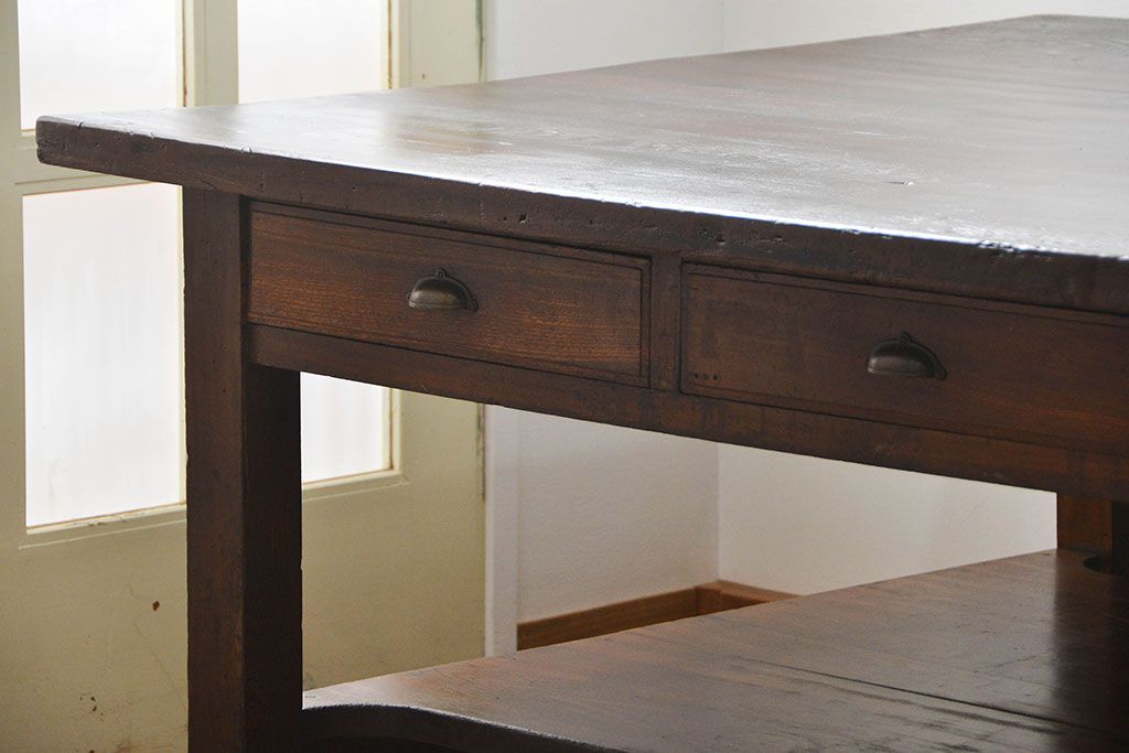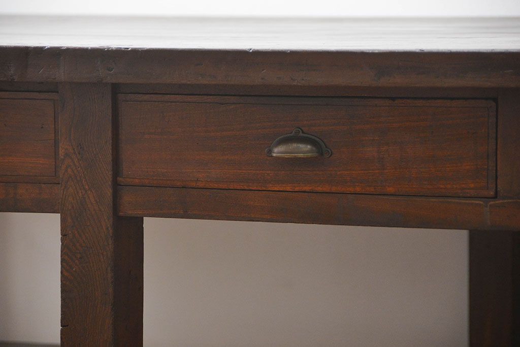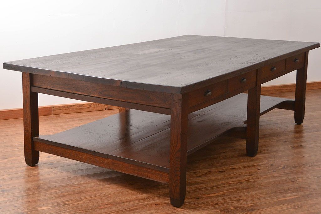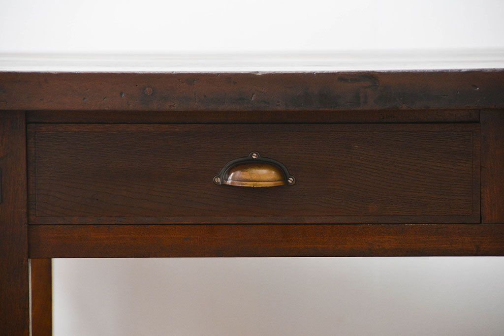 テーブル> 作業台 > アンティーク家具 アンティーク 特大!古い学校の両面引き出し作業台(テーブル、デスク、机、在宅ワーク、在宅用陳列台)