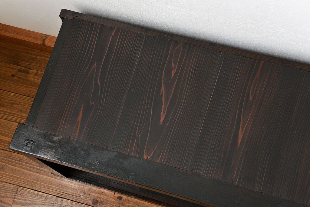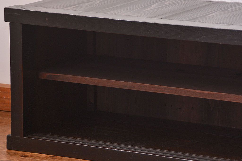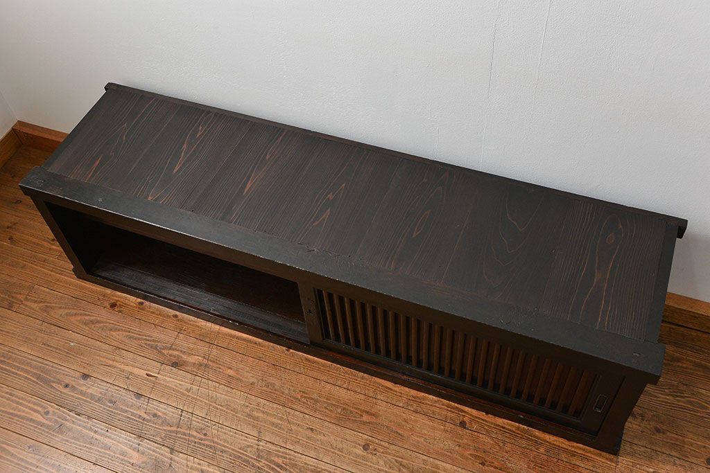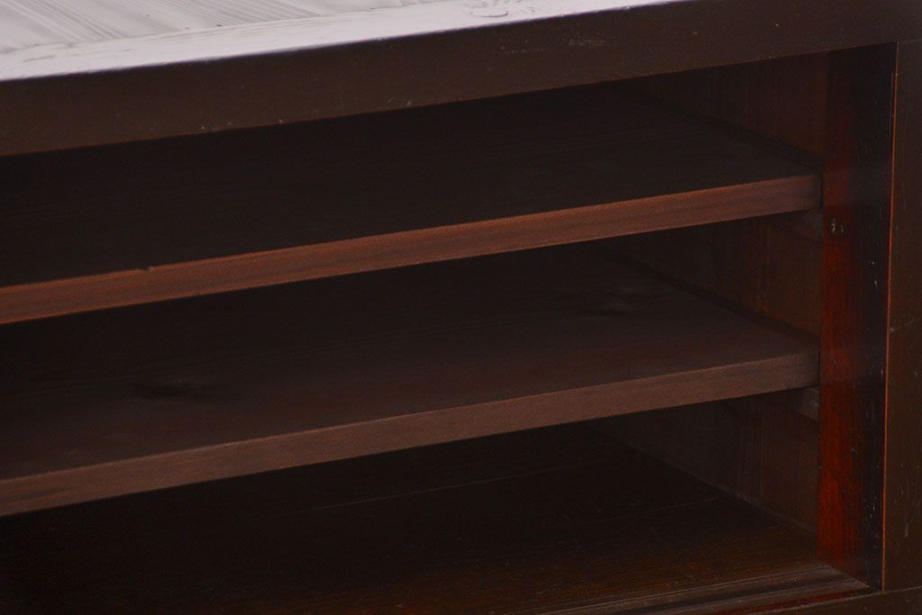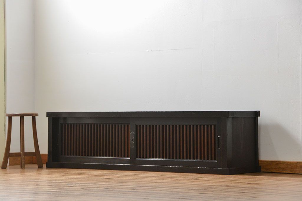 キャビネット・戸棚> テレビ台・ローボード > アンティーク家具 アンティーク シックな縦桟引き戸の収納箪笥ローボード (水屋箪笥、テレビボード、テレビ台、キャビネット、収納棚)