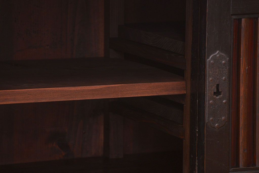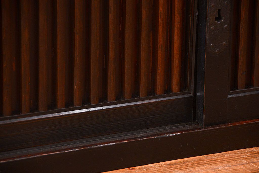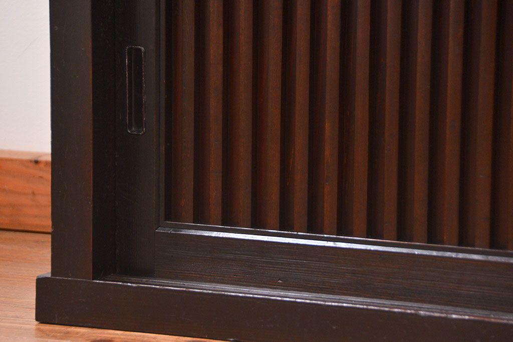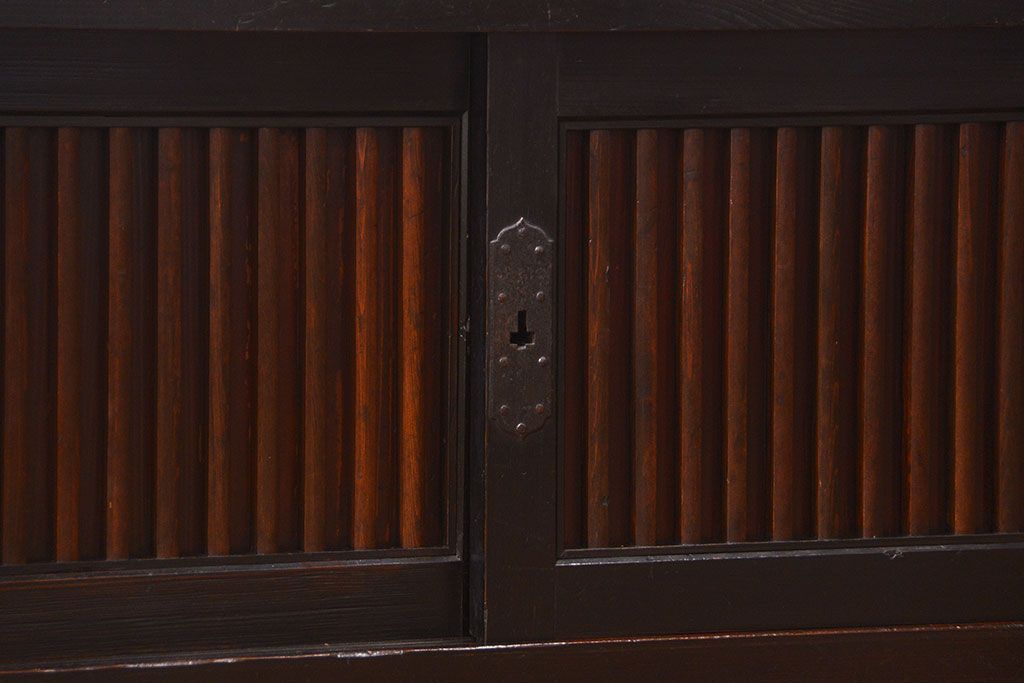 和箪笥 > アンティーク家具 アンティーク シックな縦桟引き戸の収納箪笥ローボード (水屋箪笥、テレビボード、テレビ台、キャビネット、収納棚)