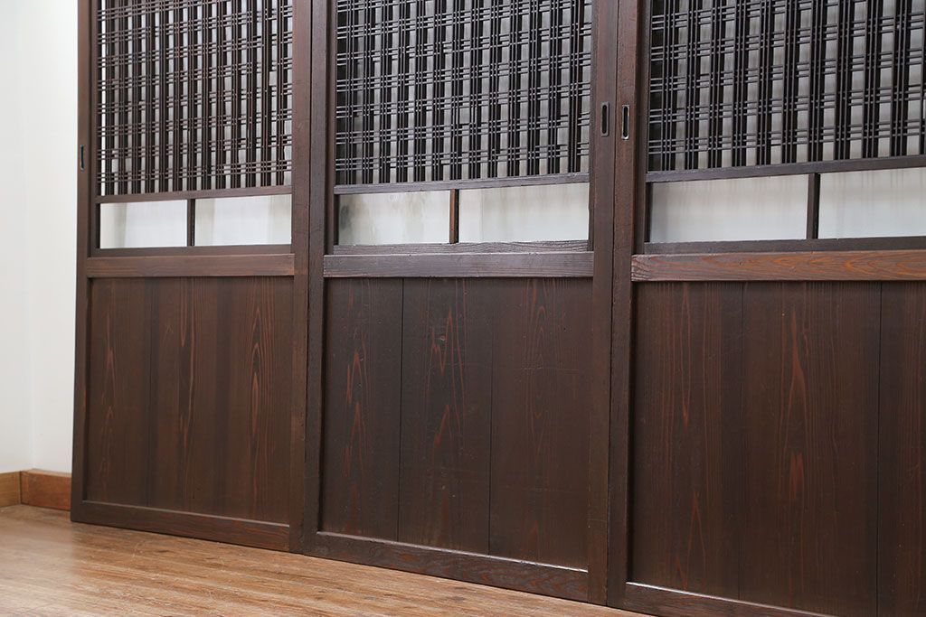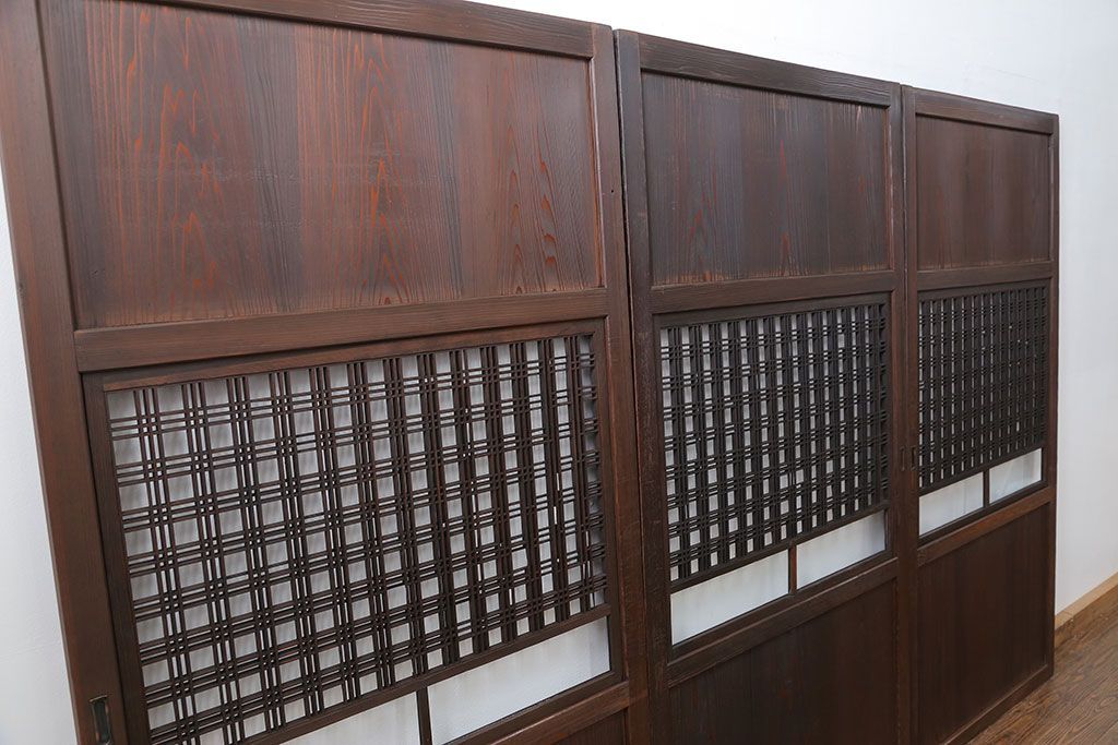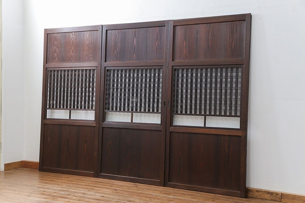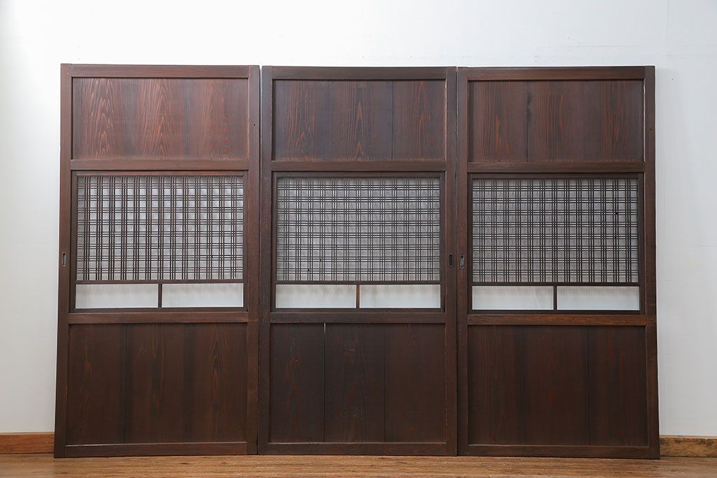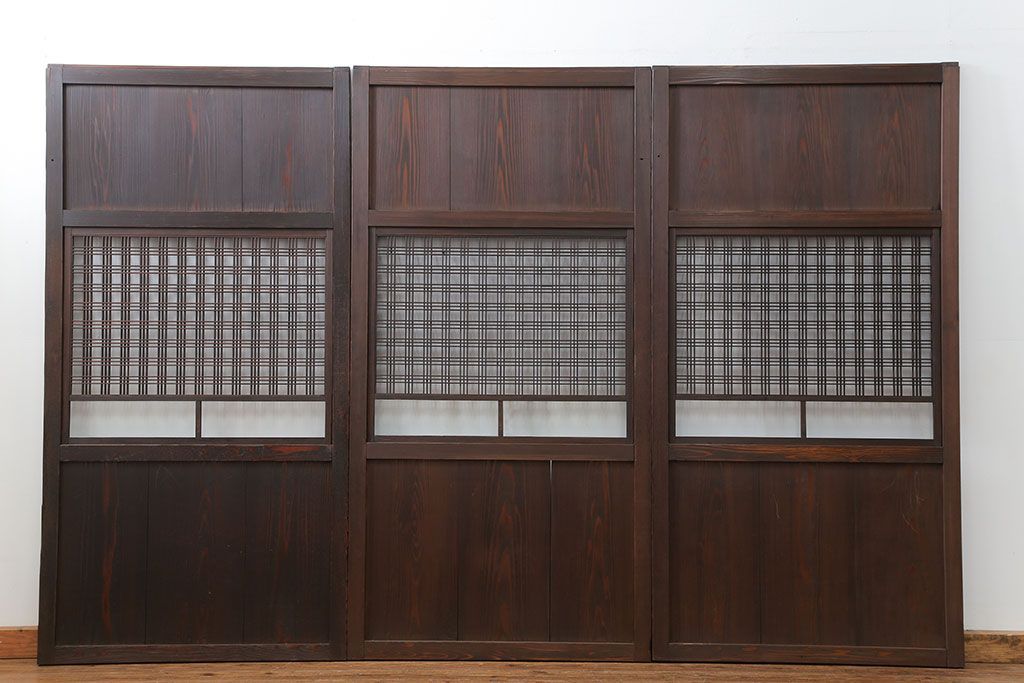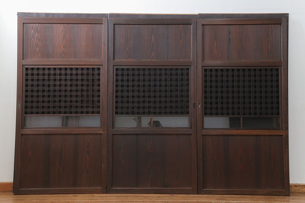 古民具・骨董 使い込まれた組子入りの格子帯戸 3枚セット(引き戸、和風建具)