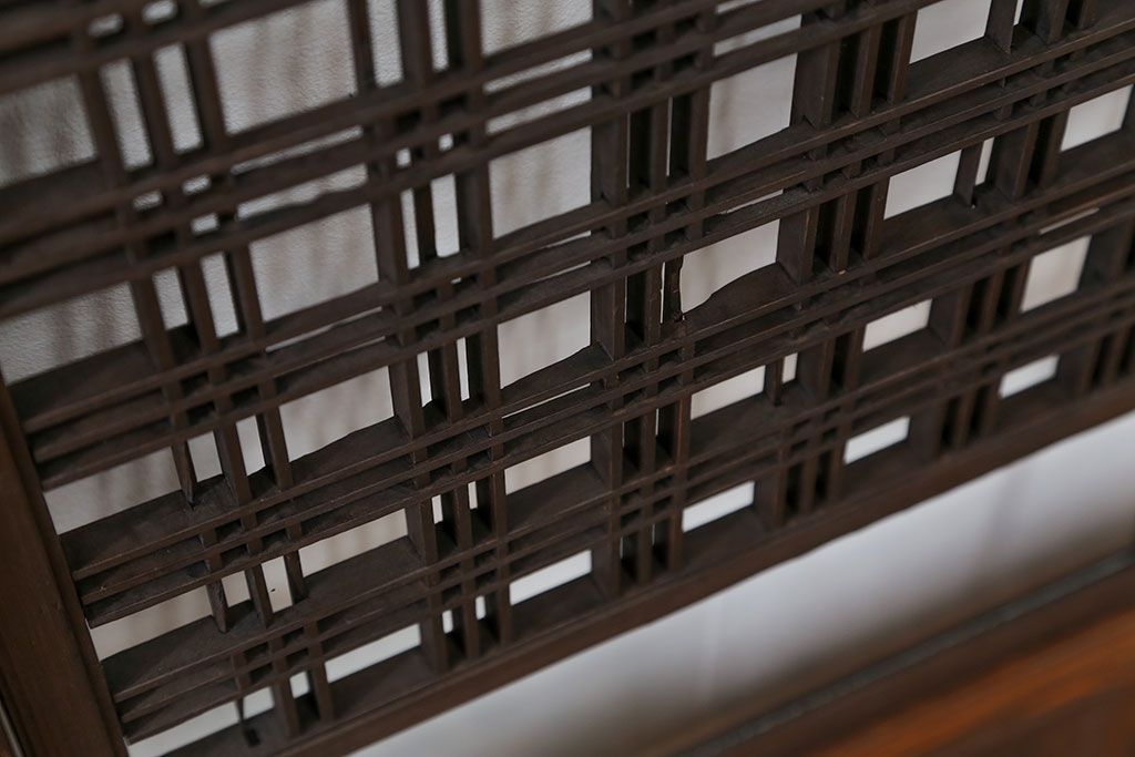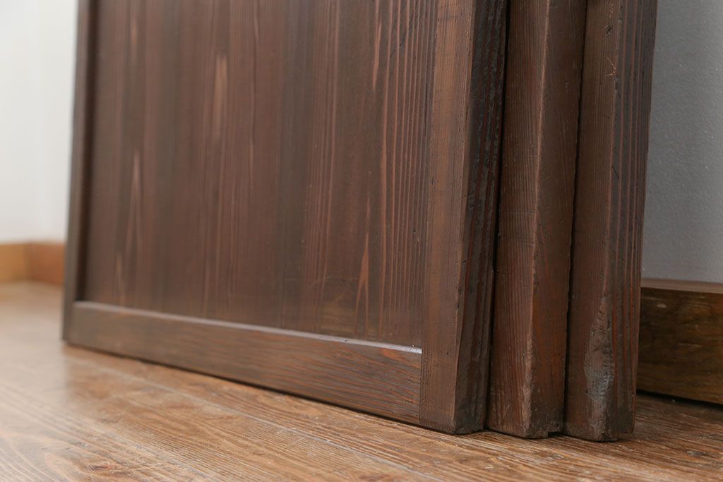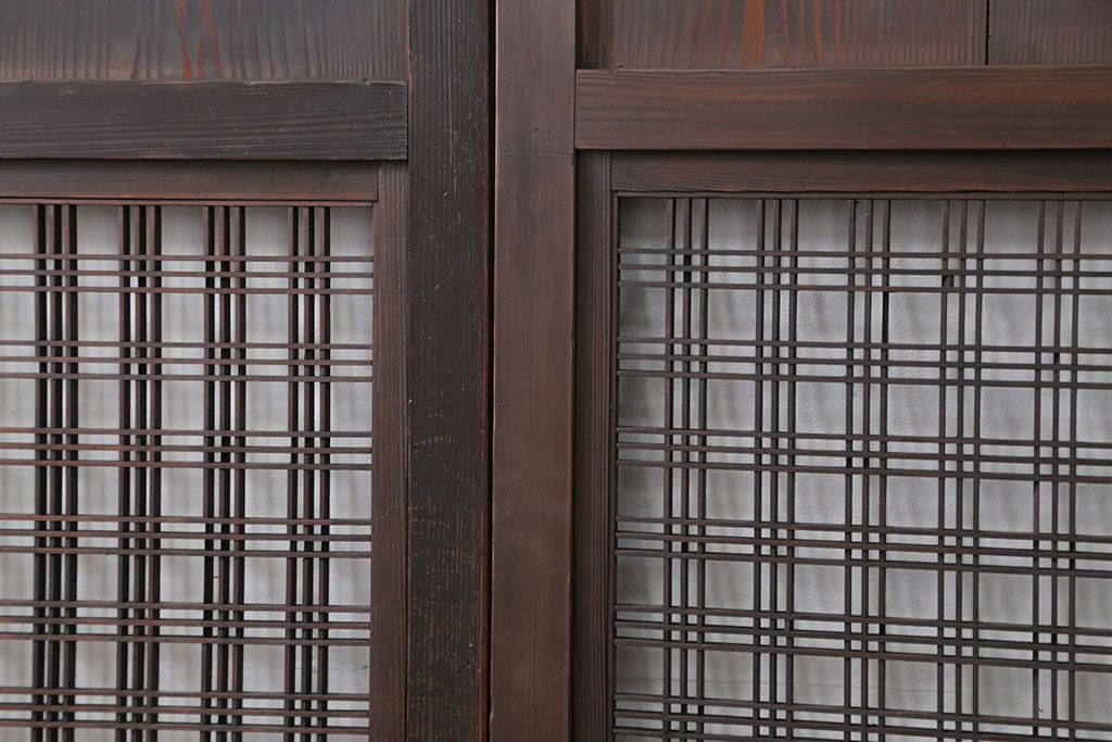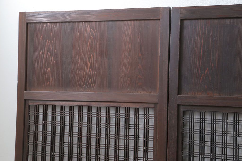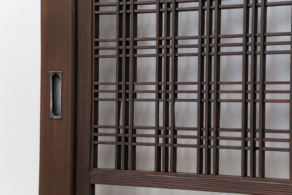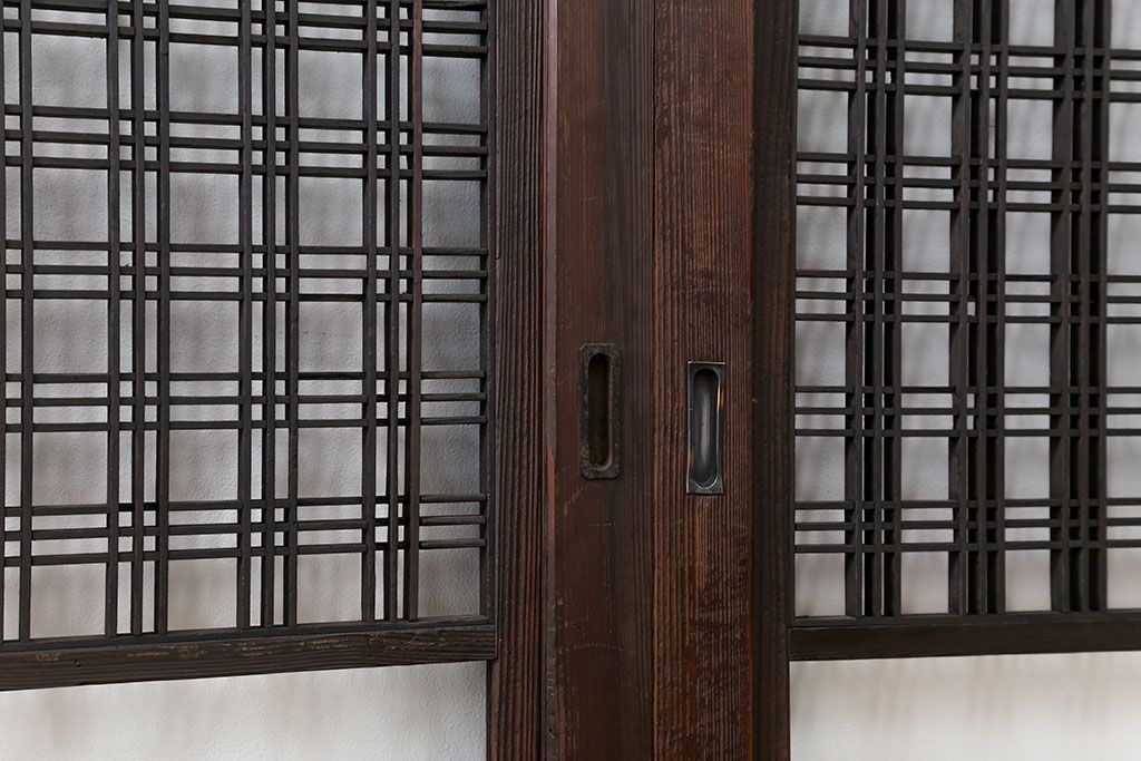 古民具・骨董 使い込まれた組子入りの格子帯戸 3枚セット(引き戸、和風建具)