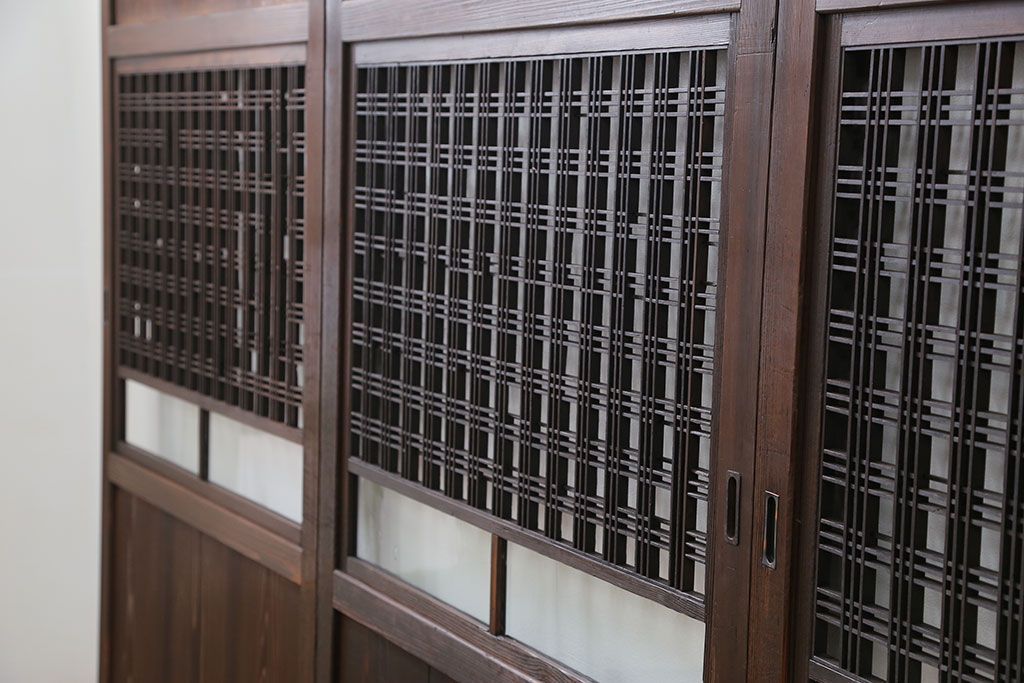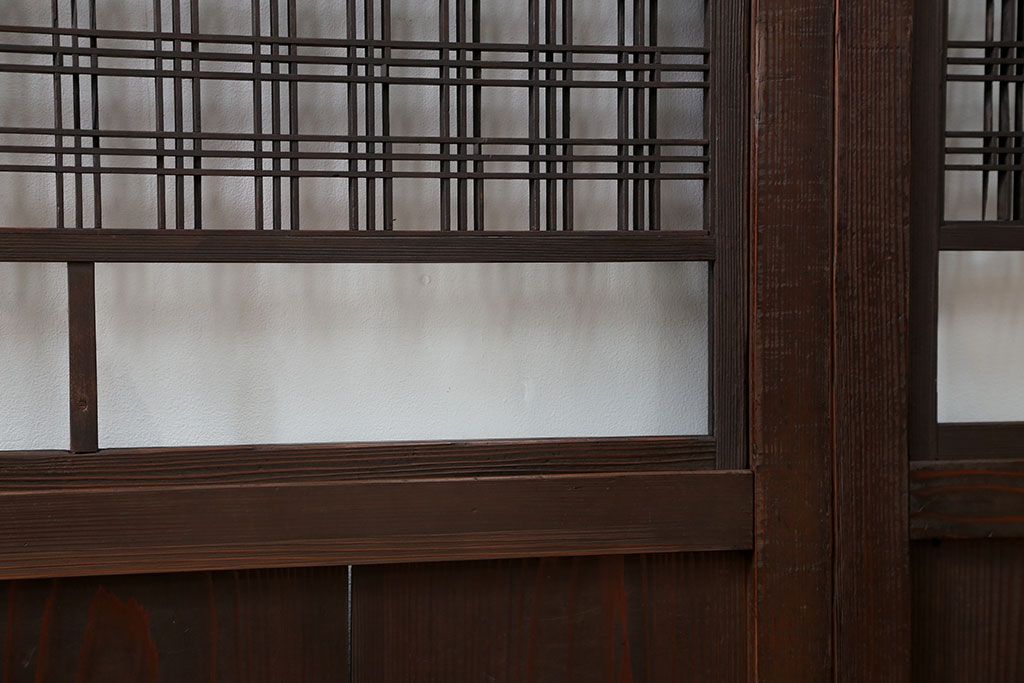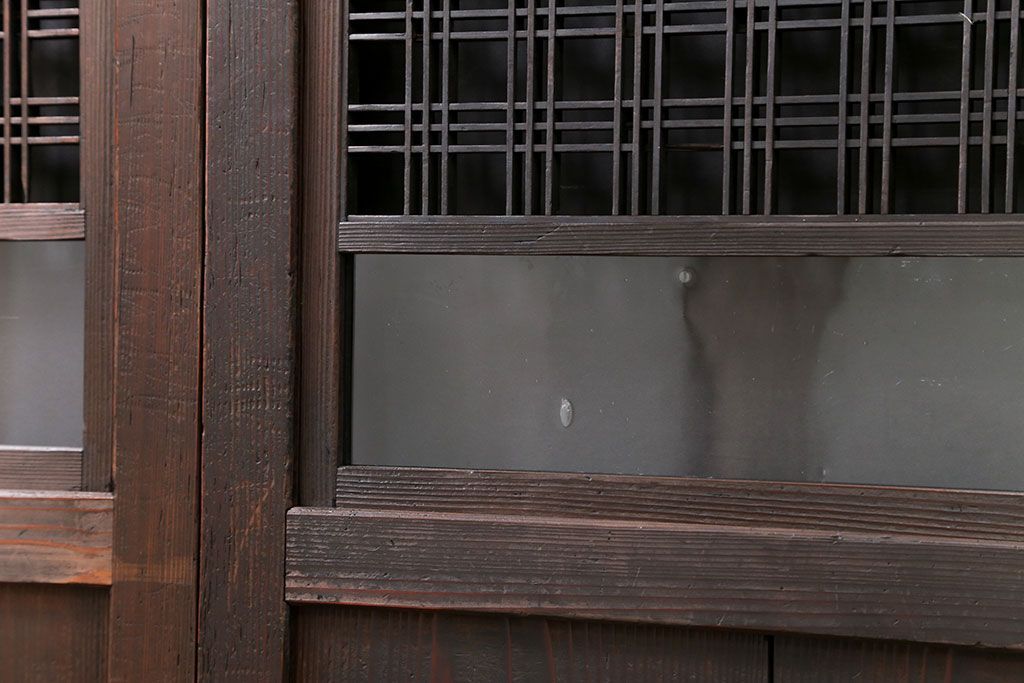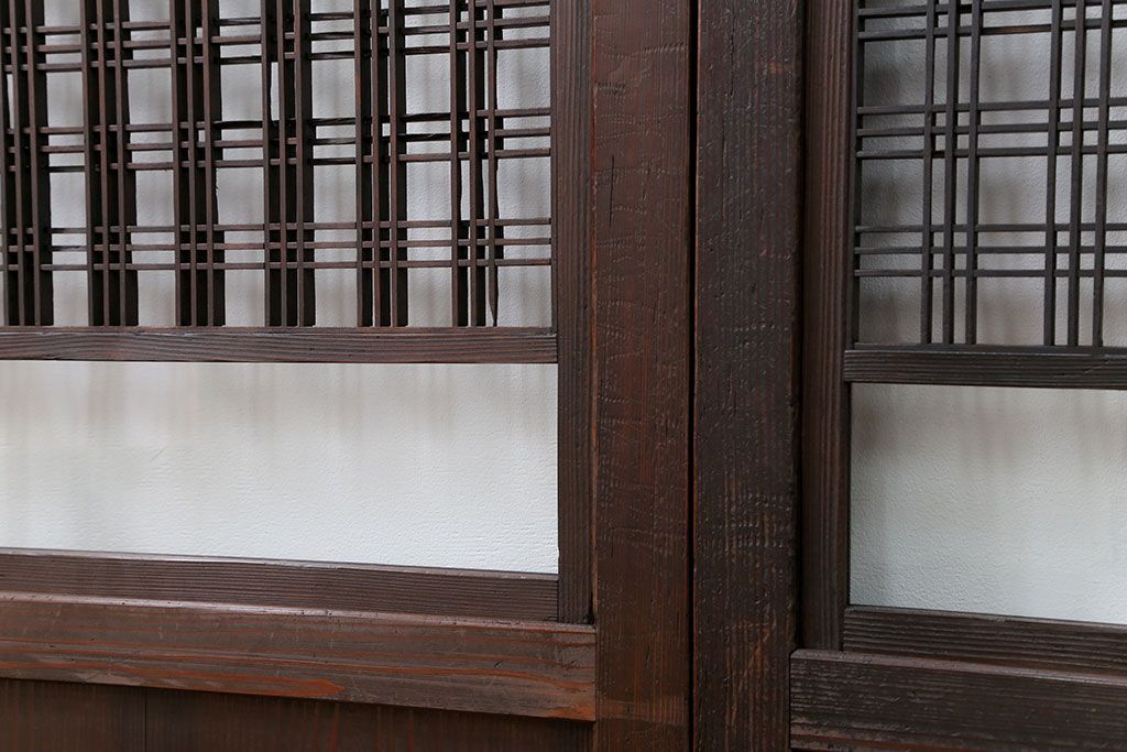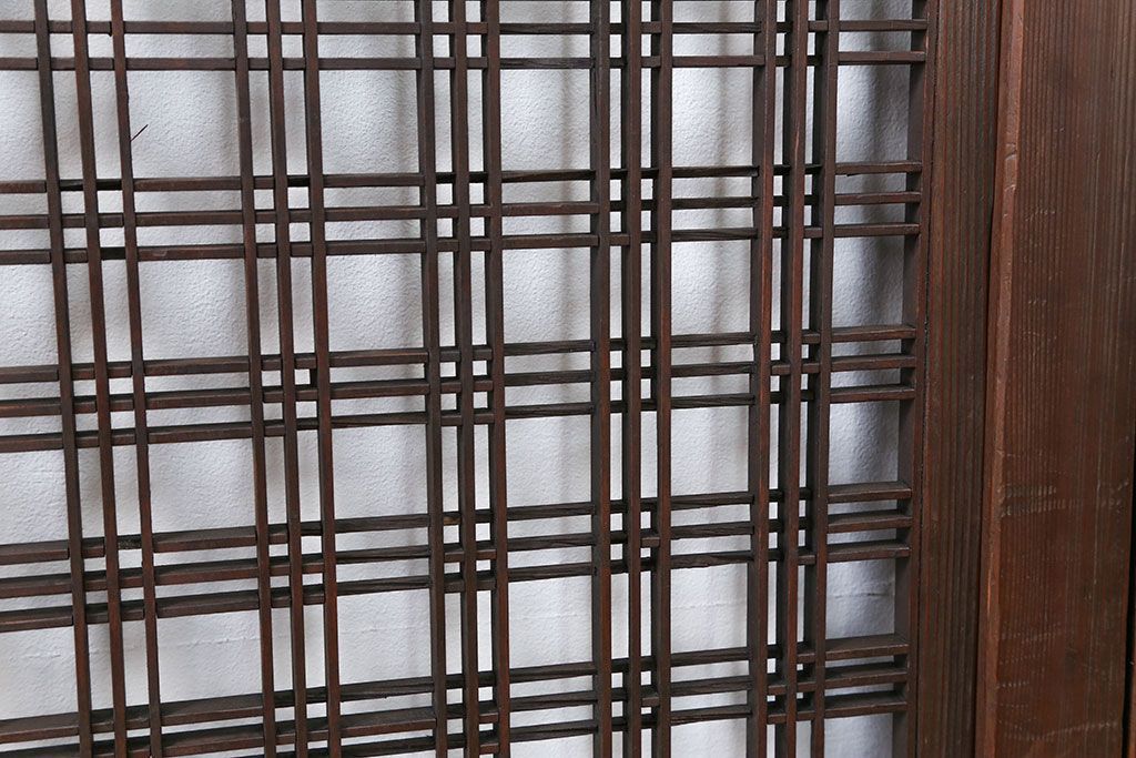 古民具・骨董 使い込まれた組子入りの格子帯戸 3枚セット(引き戸、和風建具)です。