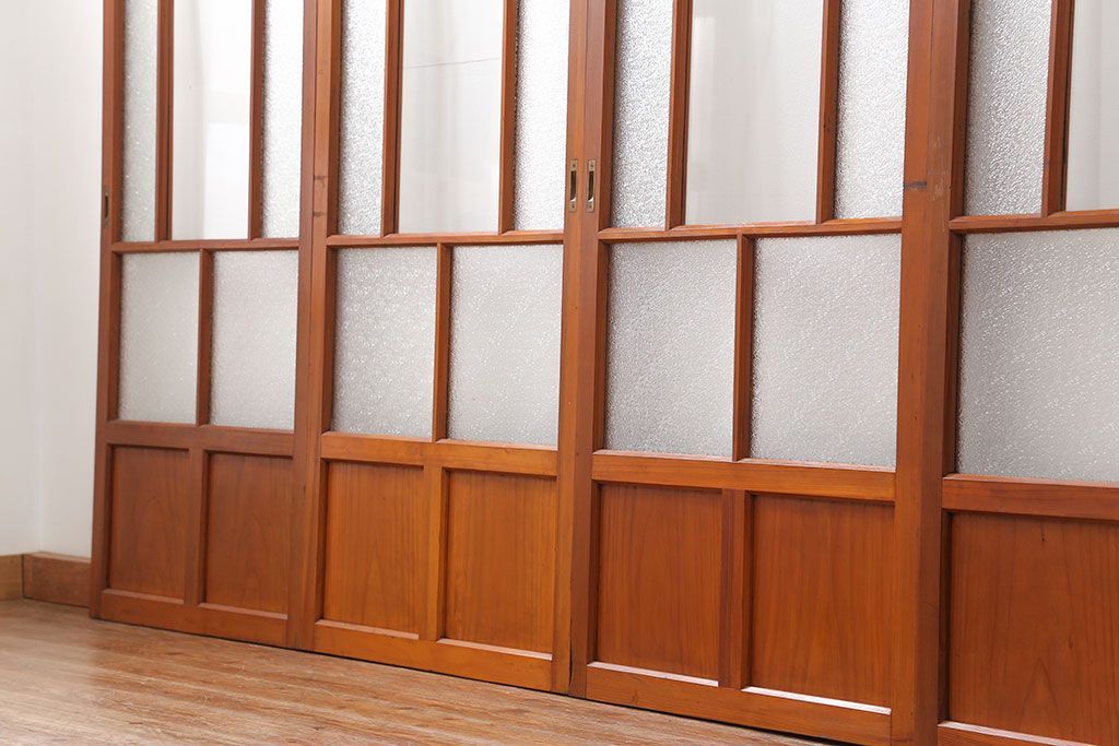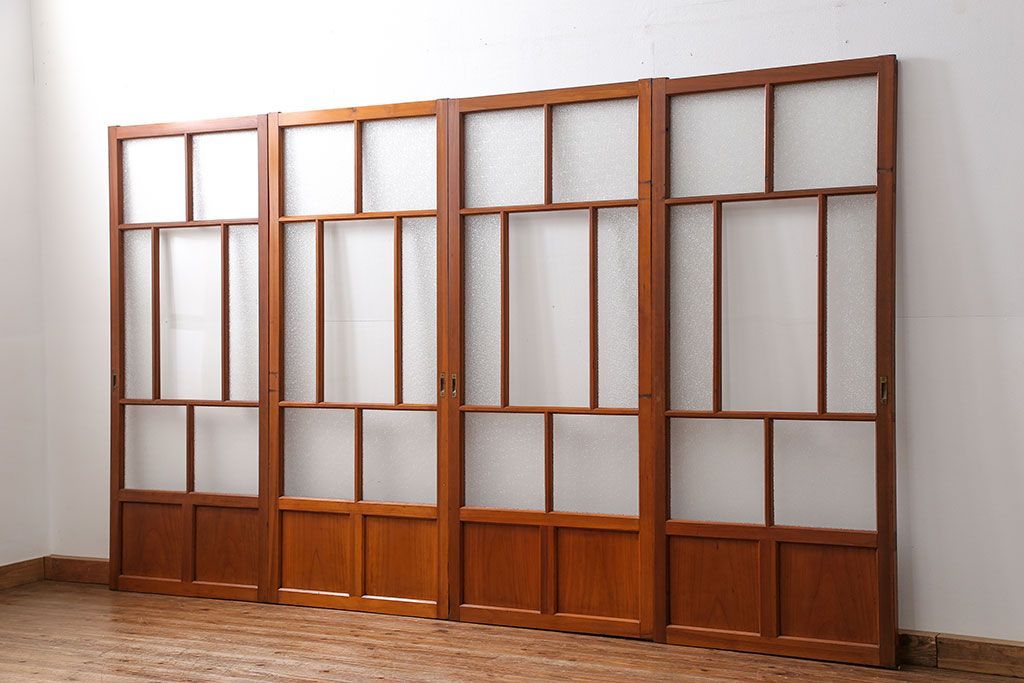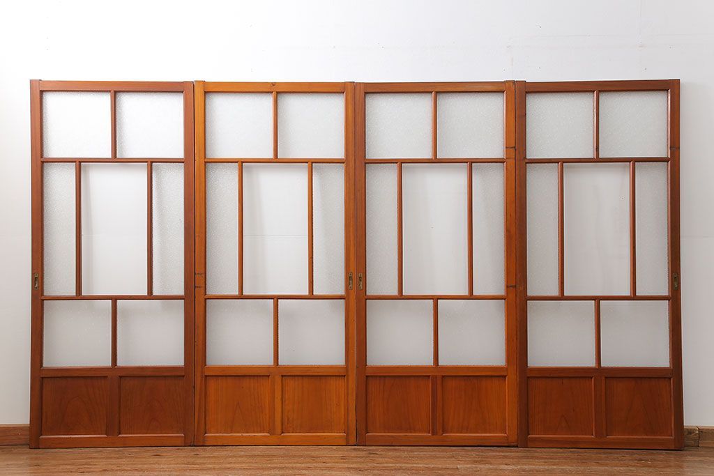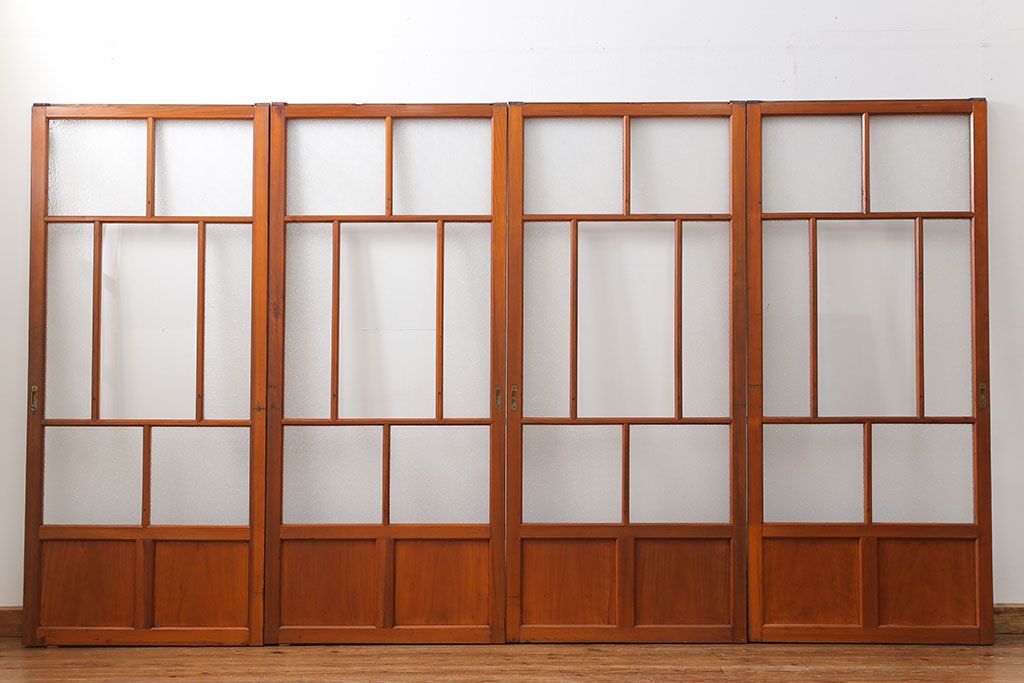 アンティーク 高さが低めの美しいガラス戸 4枚セットです。