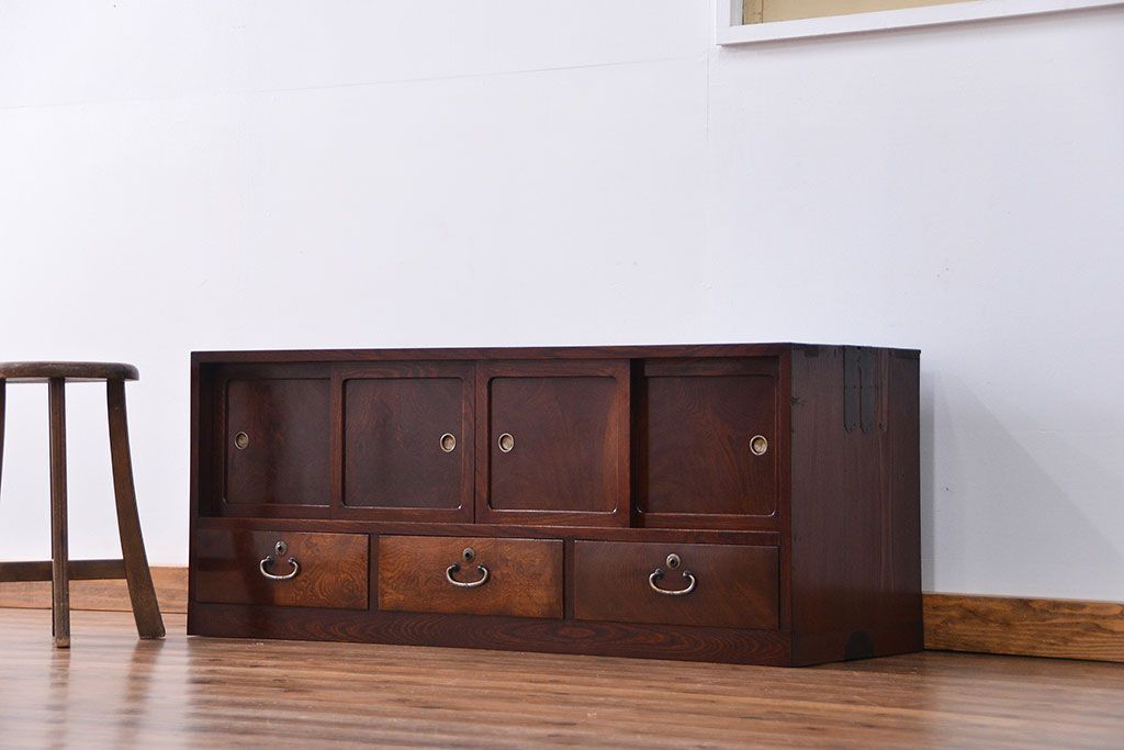 ラフジュ工房> 骨董・美術品 > アンティーク家具 古民具・骨董 前面欅材 杢目の素晴らしい時代箪笥ローボード(収納棚)