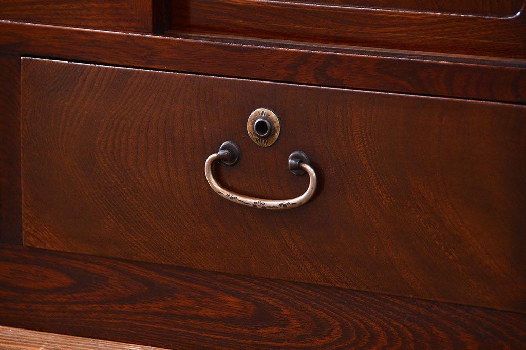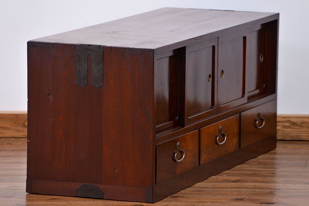 アンティーク家具 古民具・骨董 前面欅材 杢目の素晴らしい時代箪笥ローボード(収納棚)
