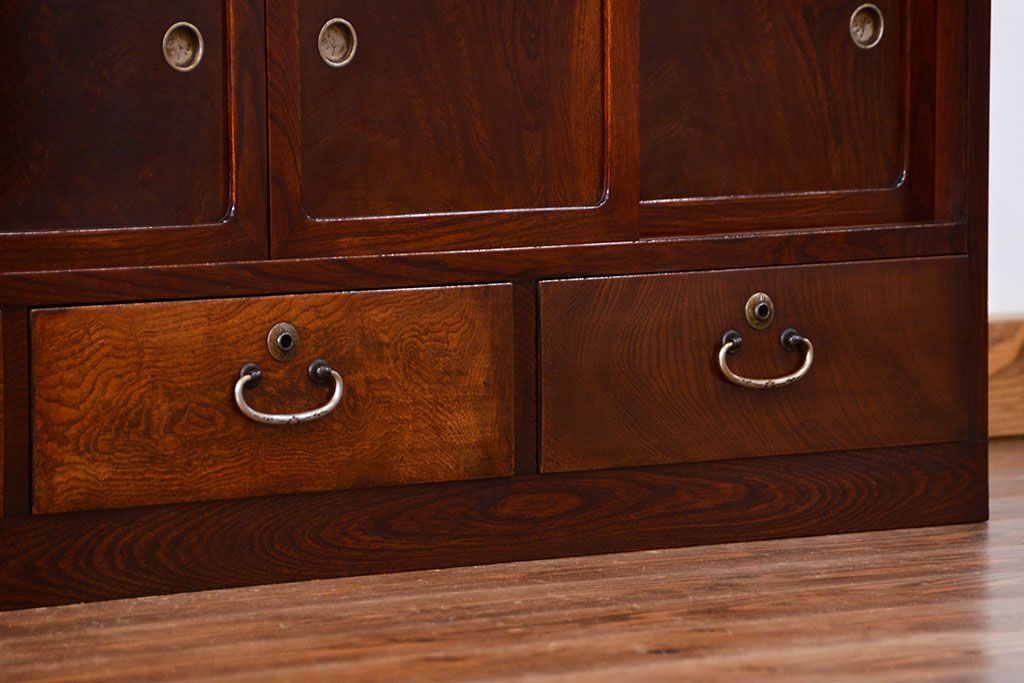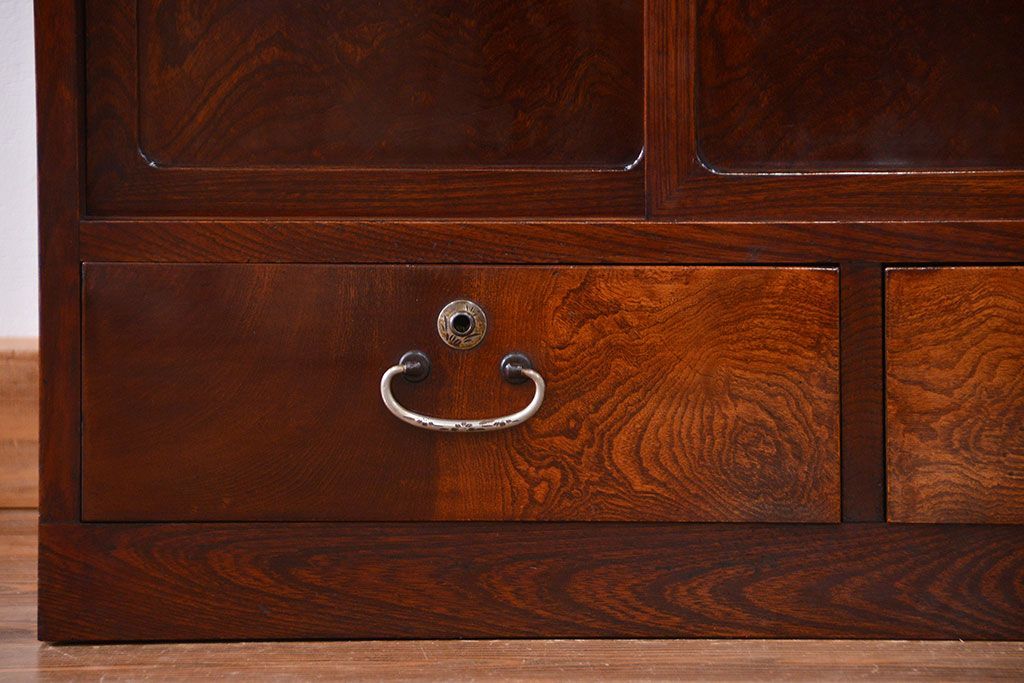 ラフジュ工房> 和箪笥> 衣装箪笥 > アンティーク家具 古民具・骨董 前面欅材 杢目の素晴らしい時代箪笥ローボード(収納棚)
