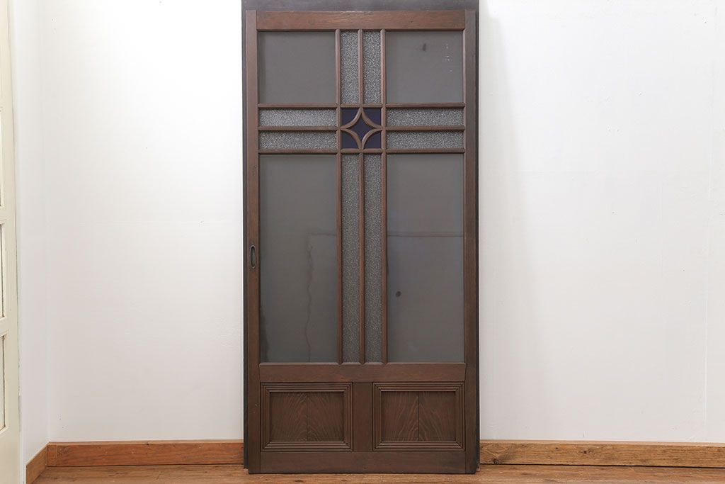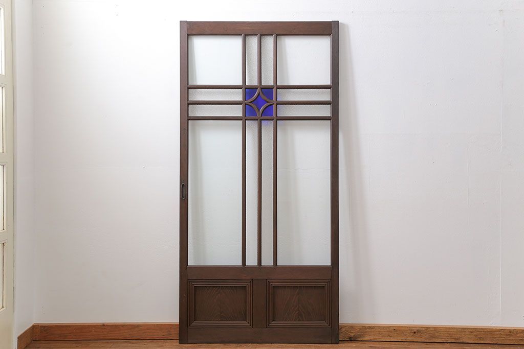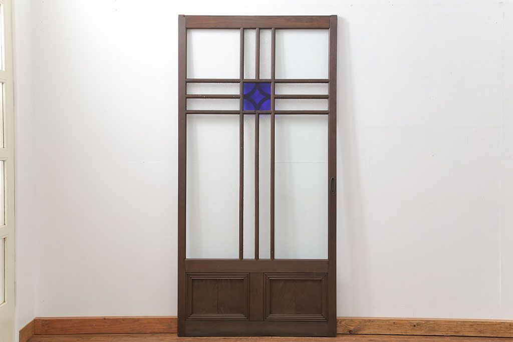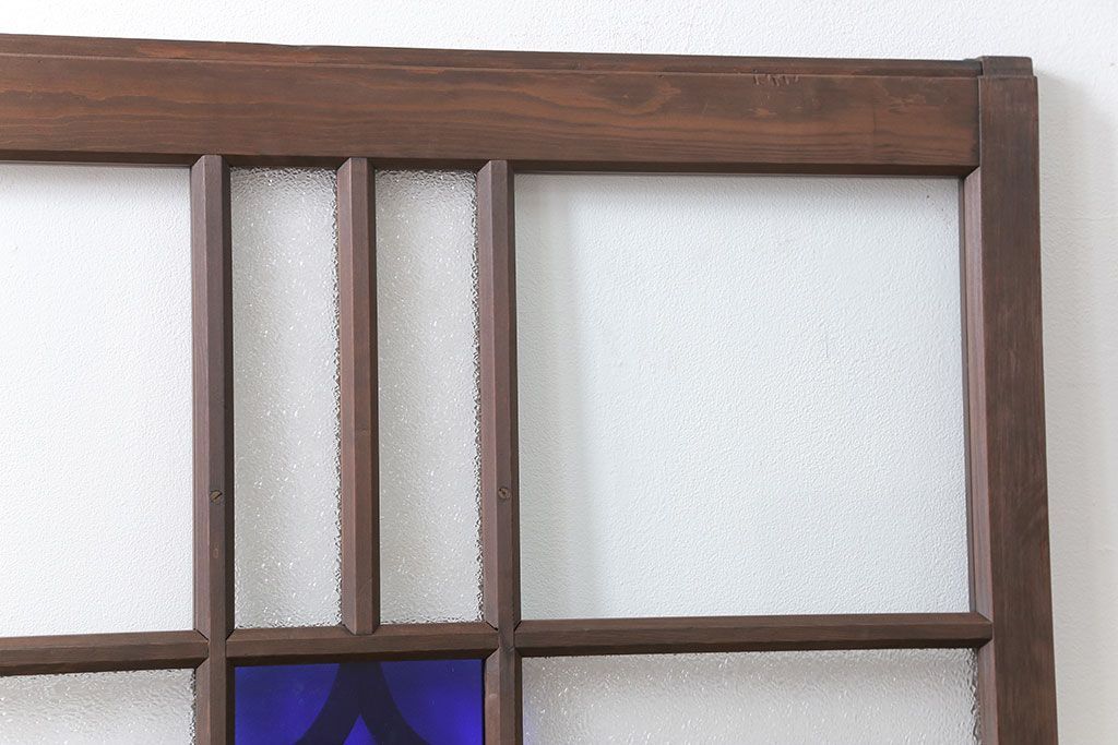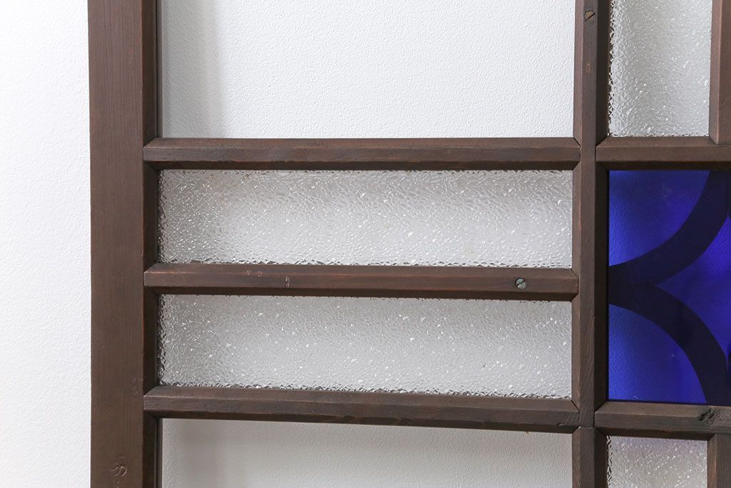 アンティーク 大正ロマン 素敵なデザイン 色ガラス入りの引き戸(ガラス戸)