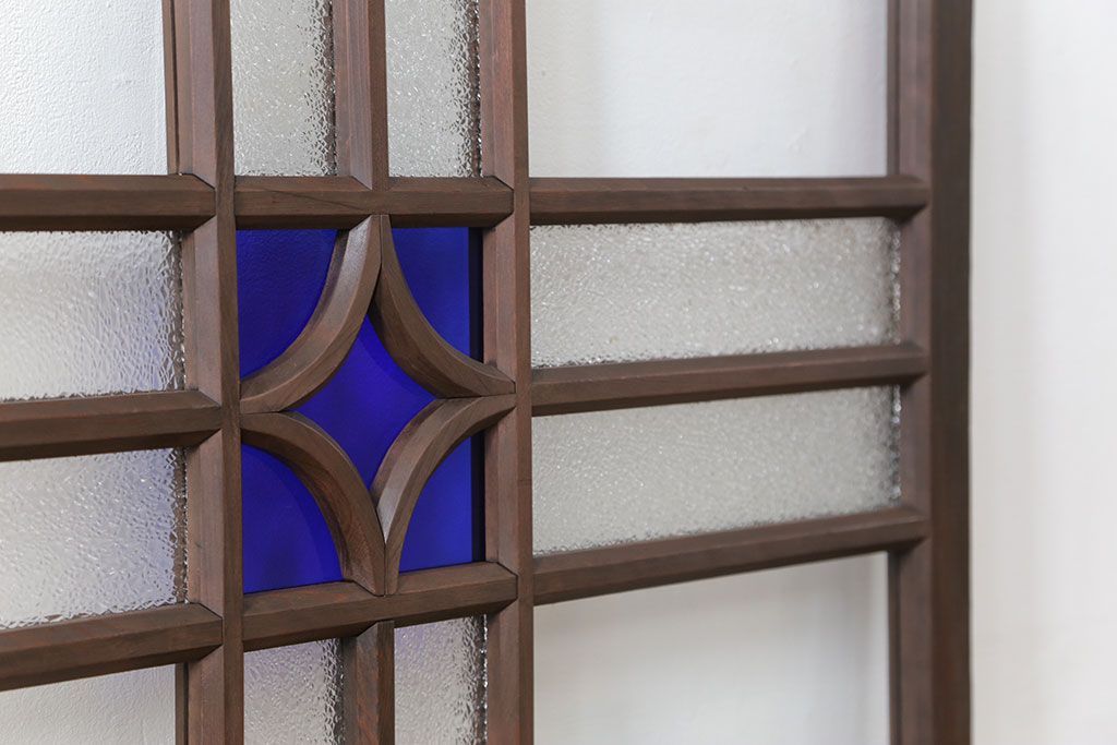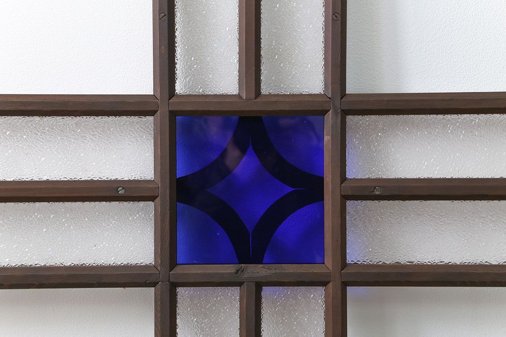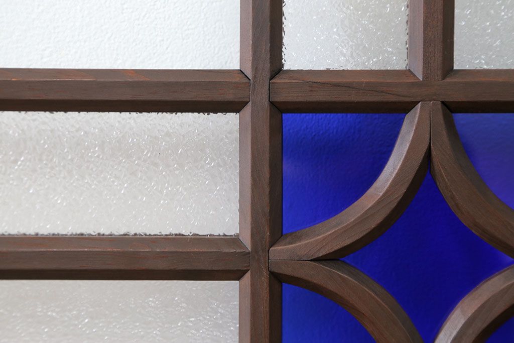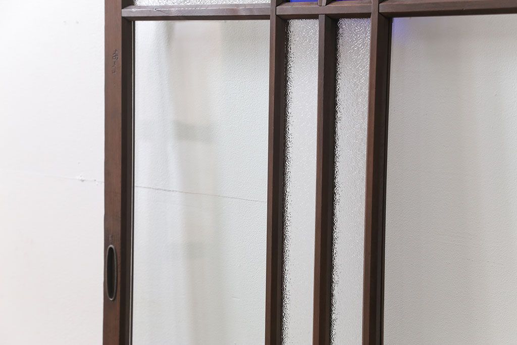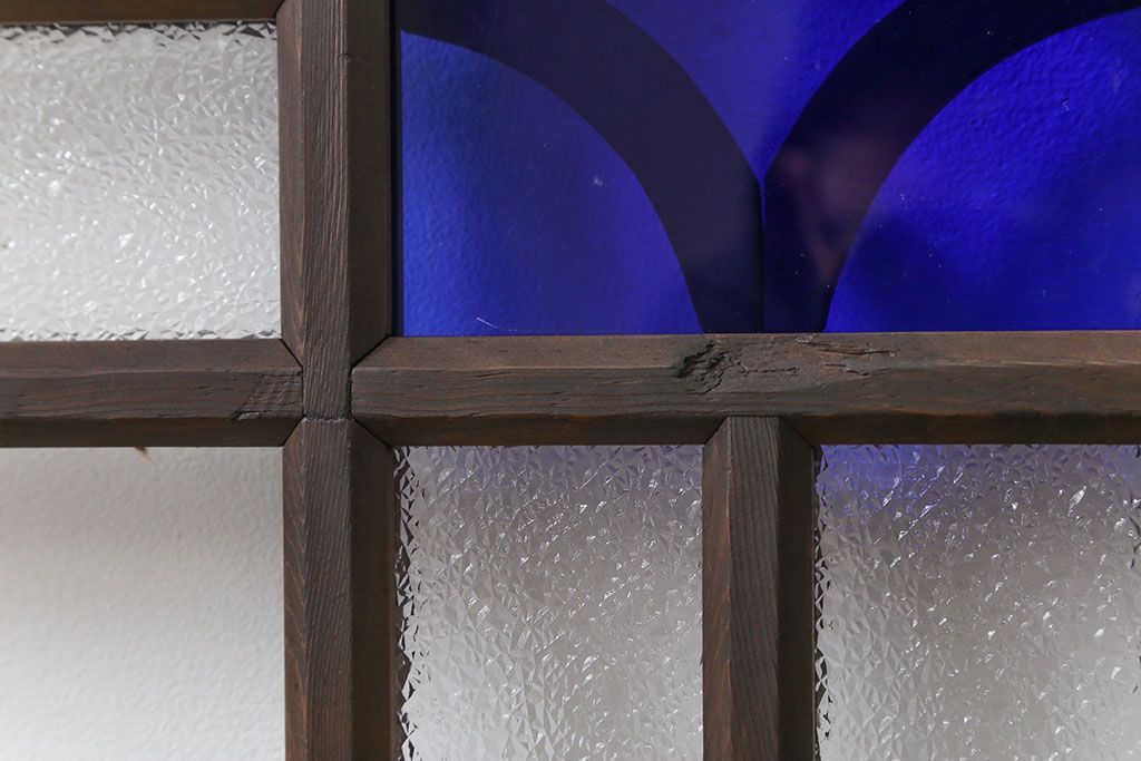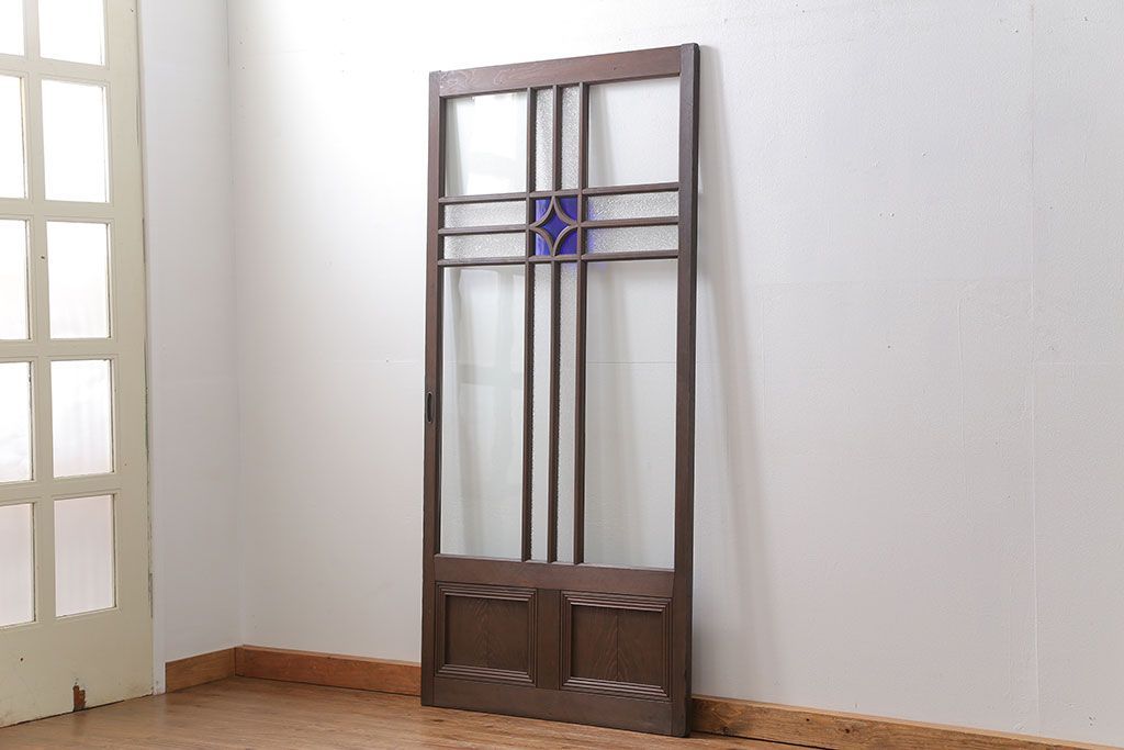 アンティーク 大正ロマン 素敵なデザイン 色ガラス入りの引き戸(ガラス戸)