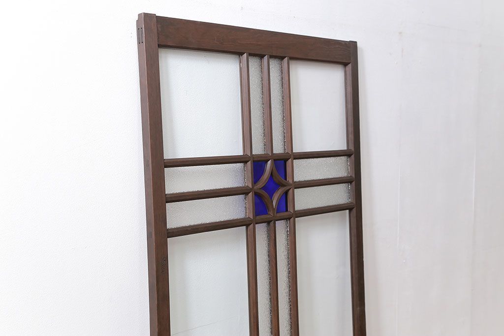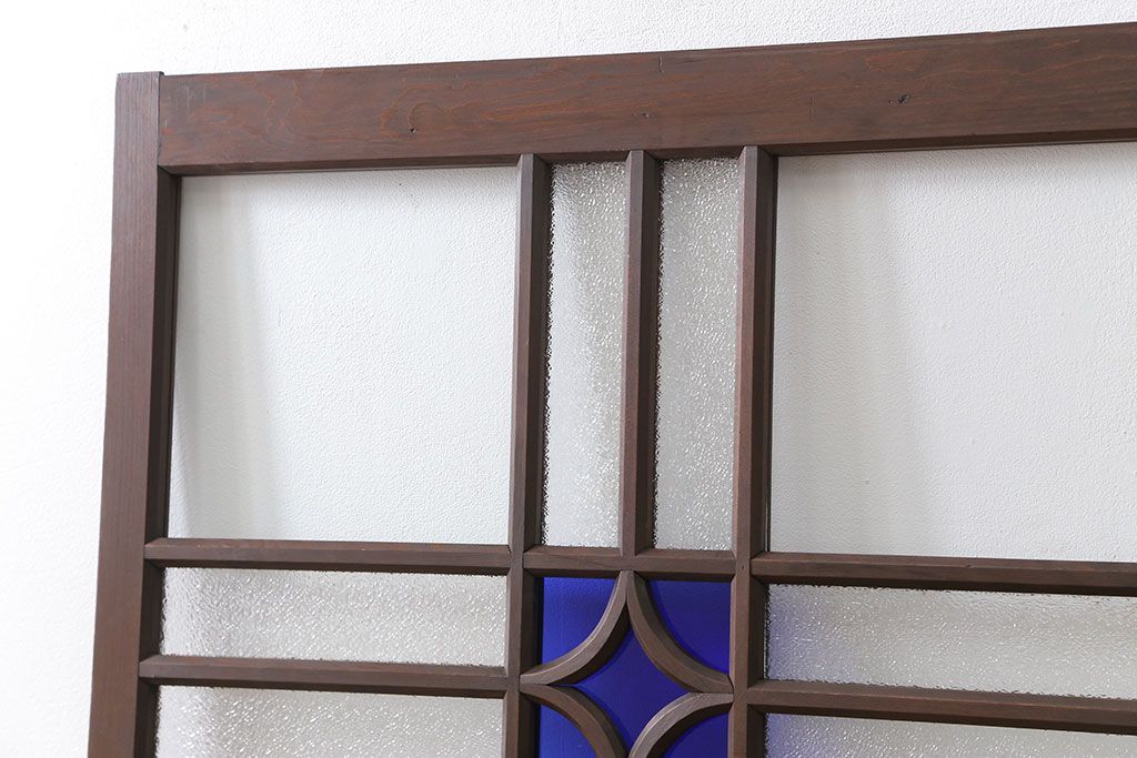 アンティーク 大正ロマン 素敵なデザイン 色ガラス入りの引き戸(ガラス戸)です。