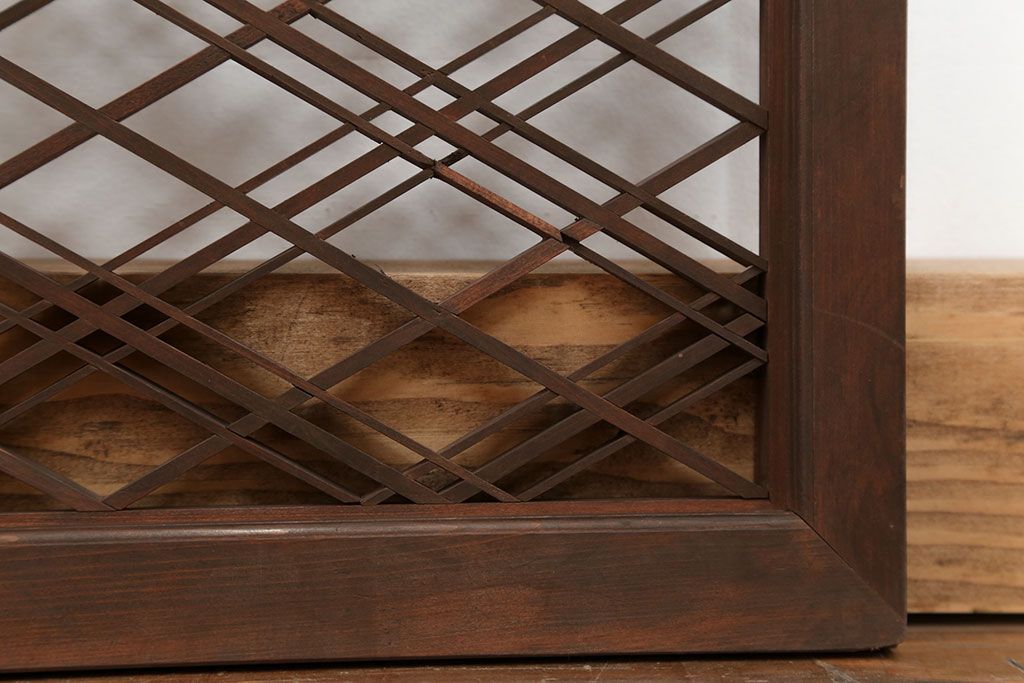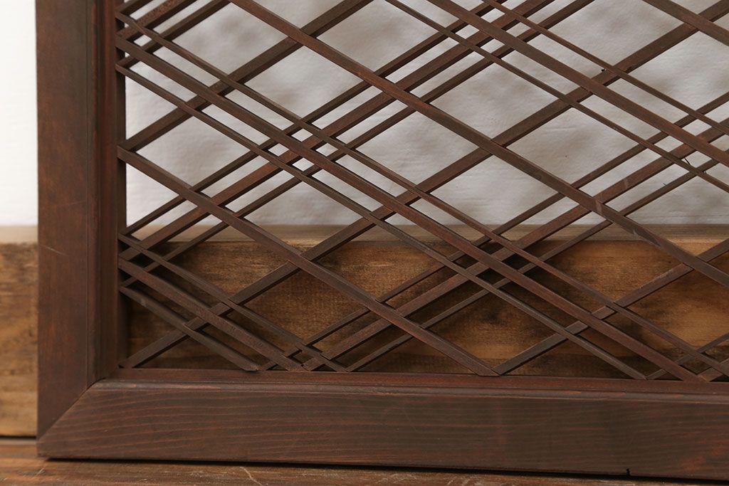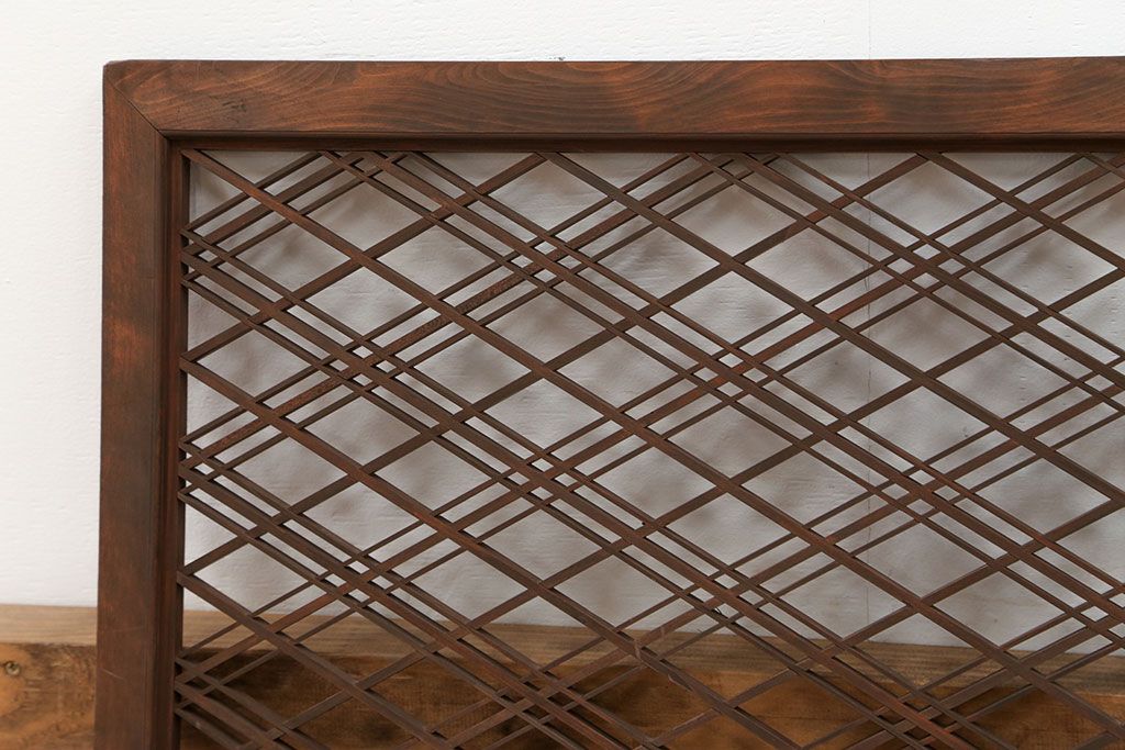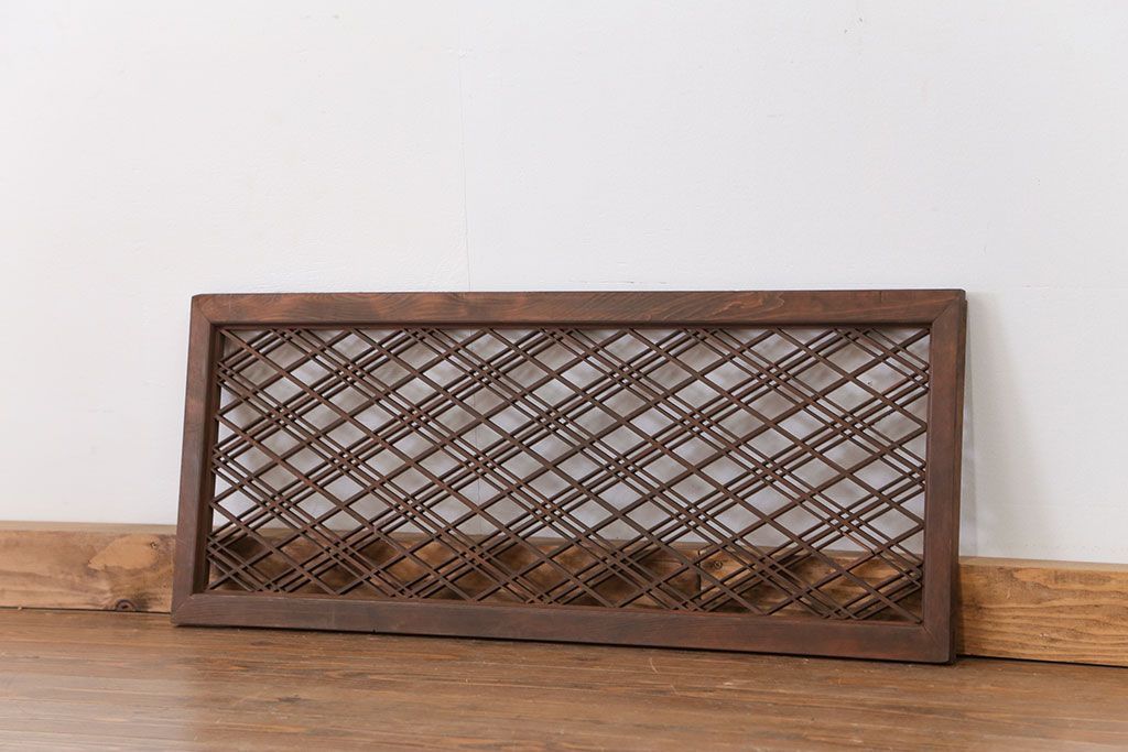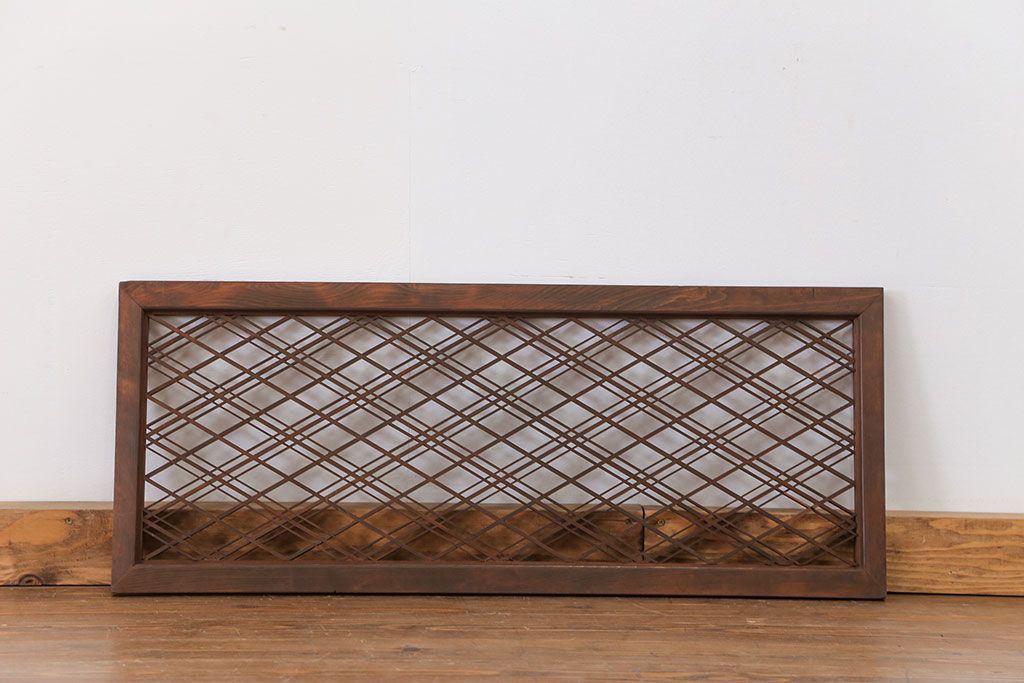 古民具・骨董 小振りな組子欄間(明り取り)です。 大変しっかりした作りで、実用的です。 画像にありますように組子に欠けや補修がありますので、ご理解の上お願いします。 しっかりとしたお品でぐらつきも全くありません。 かわいらしくて本当に素敵な一品です。 アイデア次第で色々お使いいただけると思います。 使用上問題のあるダメージはありません。 ■框サイズ 上30mm/下30mm/右25mm/左25mm