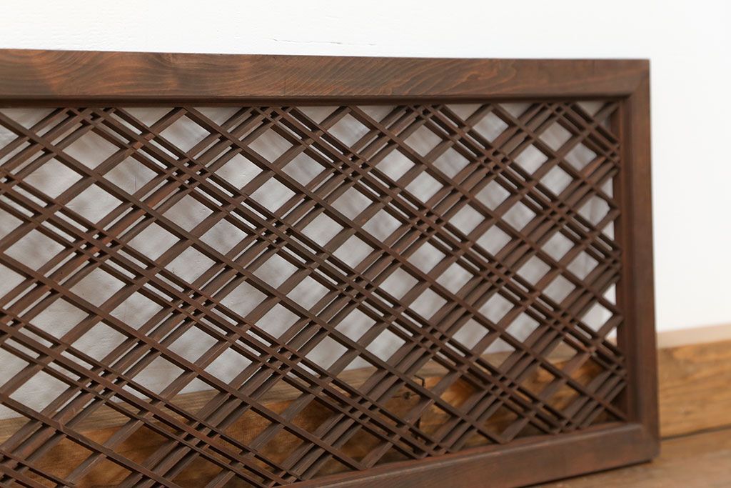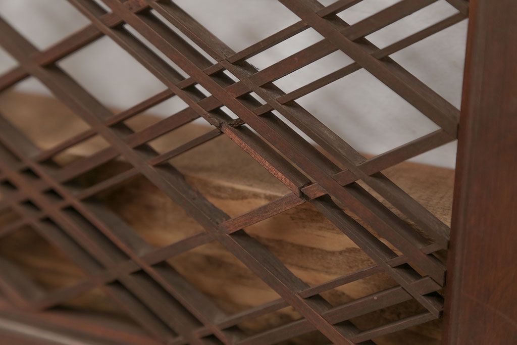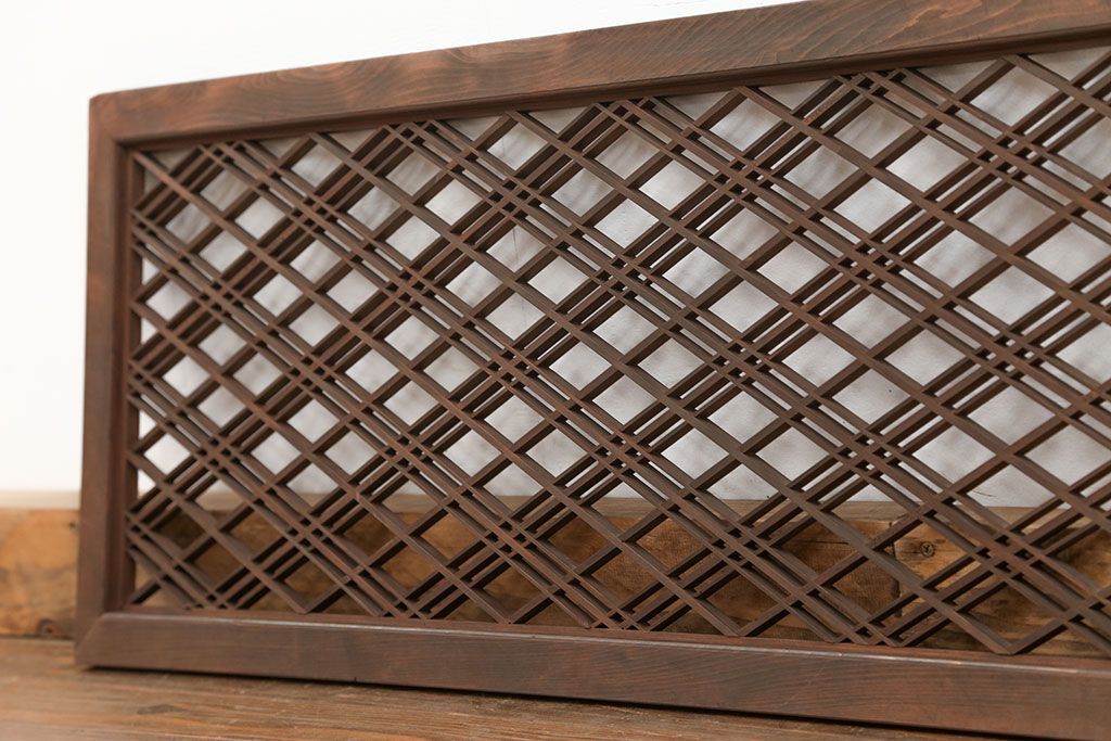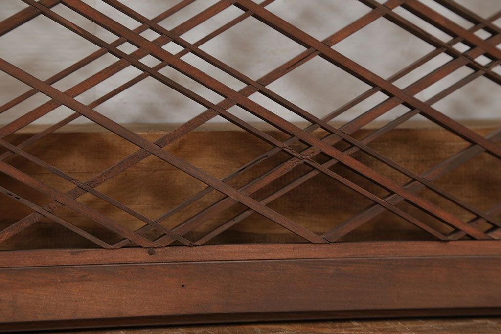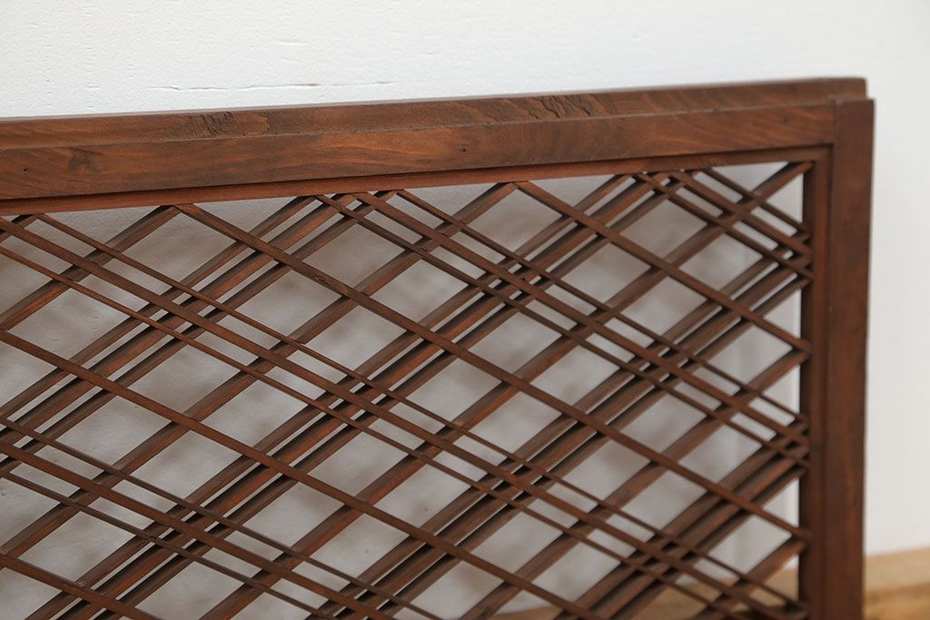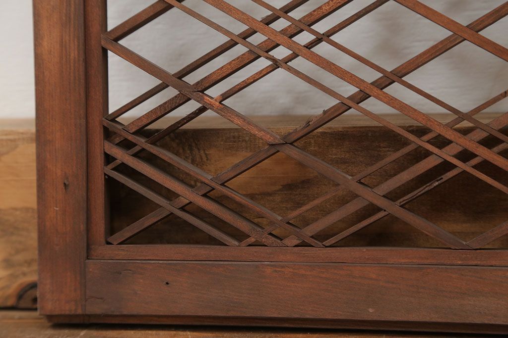 古民具・骨董 小振りな組子欄間(明り取り)です。 大変しっかりした作りで、実用的です。 画像にありますように組子に欠けや補修がありますので、ご理解の上お願いします。 しっかりとしたお品でぐらつきも全くありません。 かわいらしくて本当に素敵な一品です。 アイデア次第で色々お使いいただけると思います。 使用上問題のあるダメージはありません。 ■框サイズ 上30mm/下30mm/右25mm/左25mm