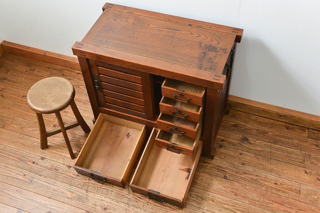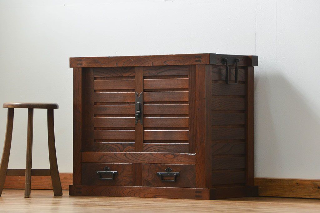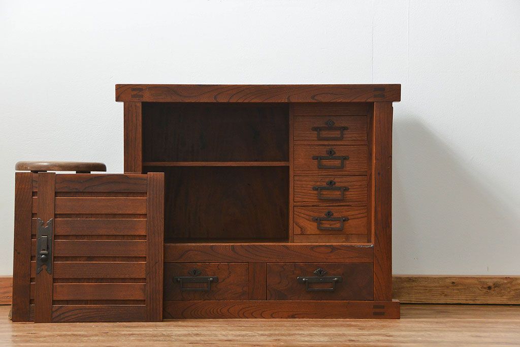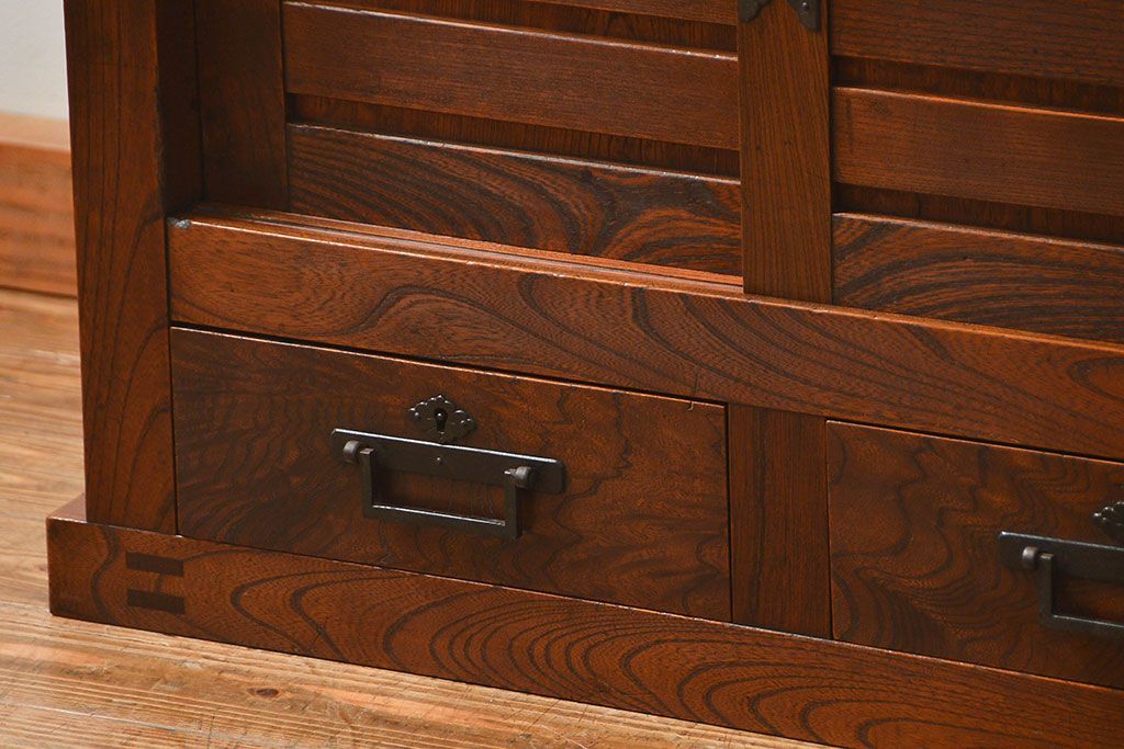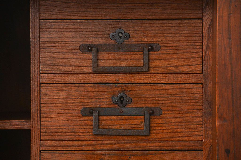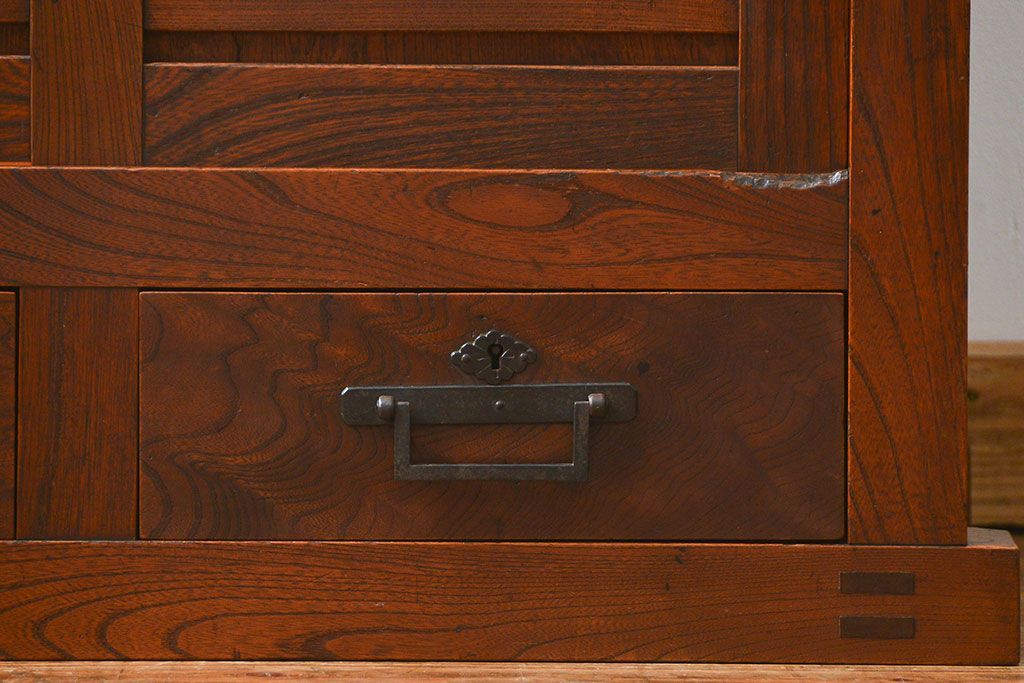 アンティーク家具 古民具・骨董 総欅 越後帳場箪笥(銭戸棚、小箪笥、船箪笥)