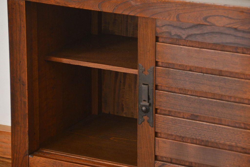 しっかりとした框組に細かく横桟が四方に回してある、上手物の帳場箪笥です。