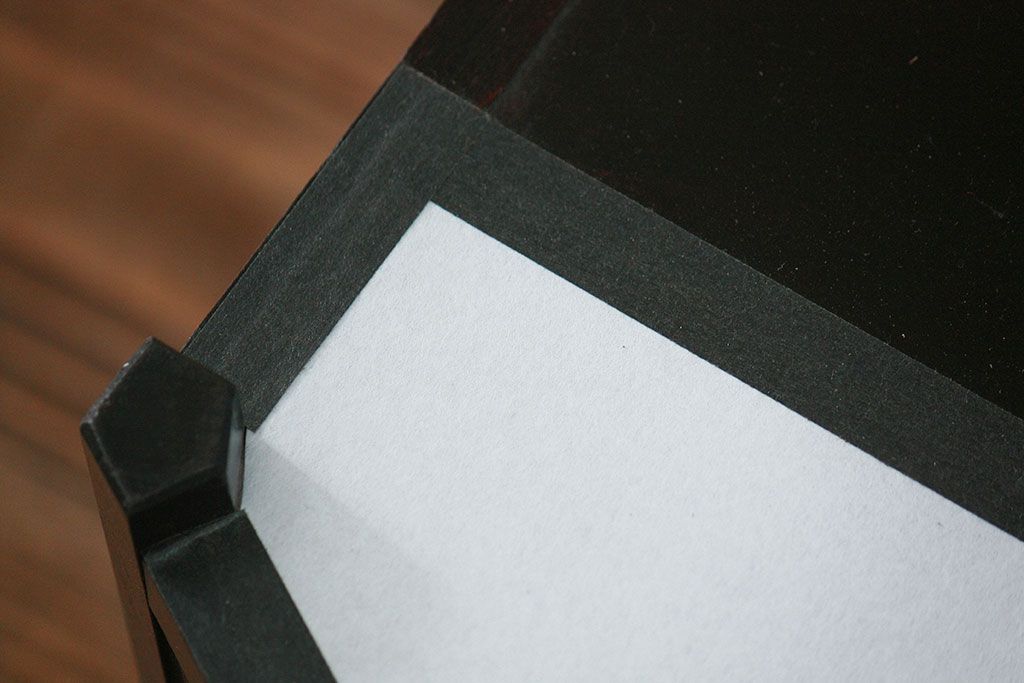 上部の障子紙は黒い紙テープで止めています。