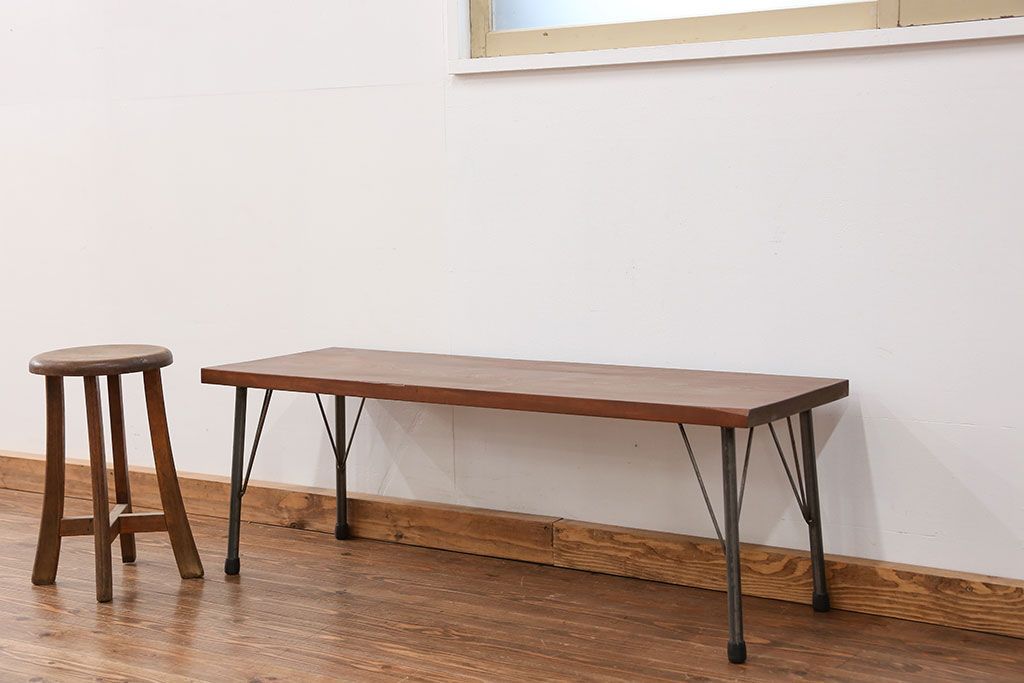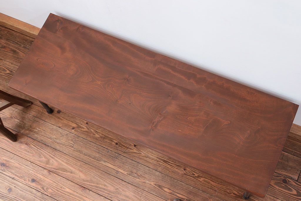 アンティーク家具 アンティーク 天板一枚板 使い込まれた古材天板の鉄脚センターテーブル(8)