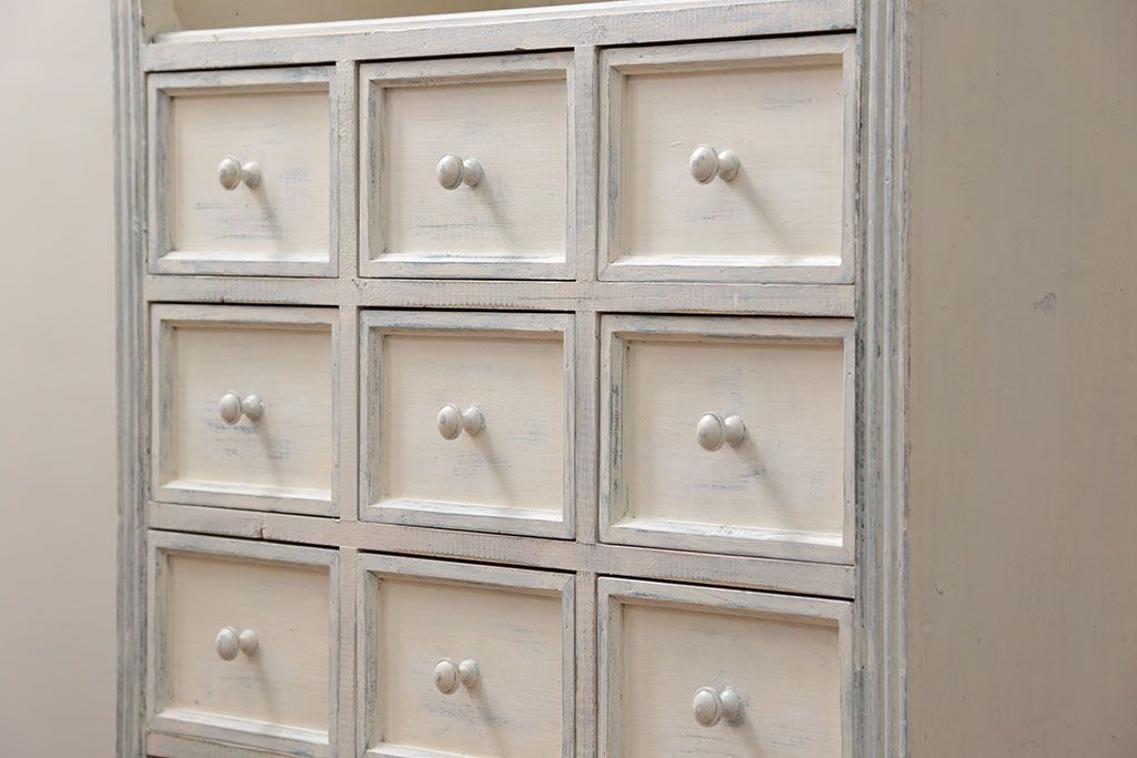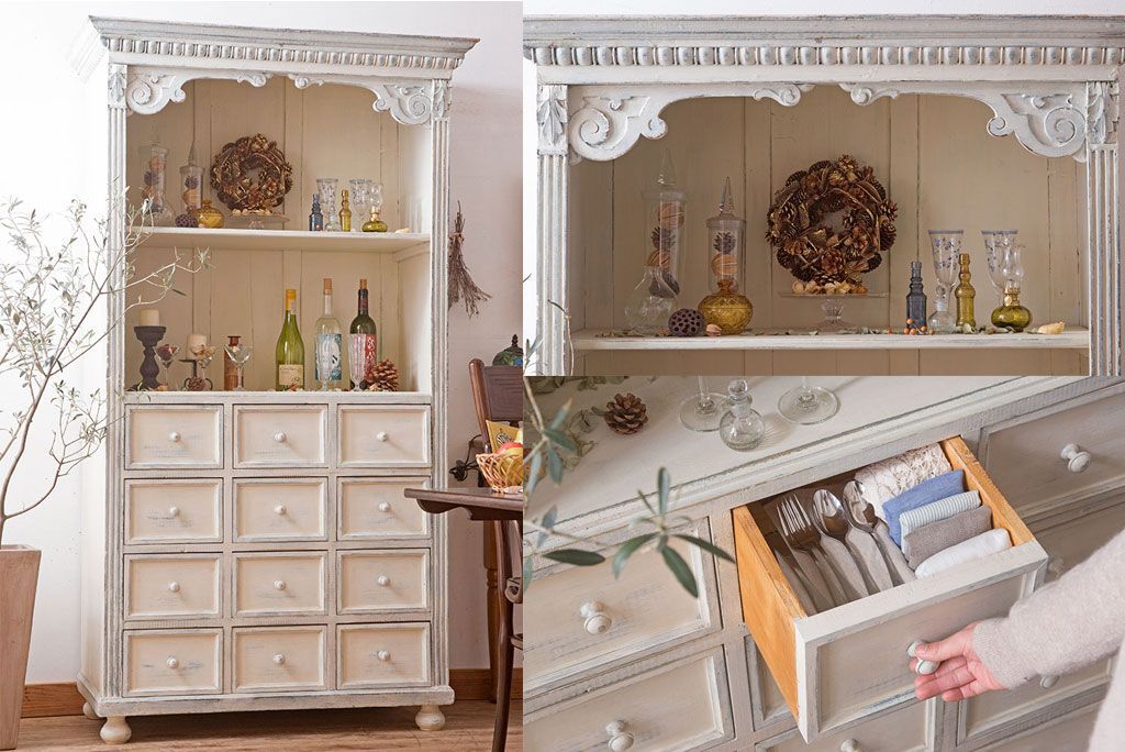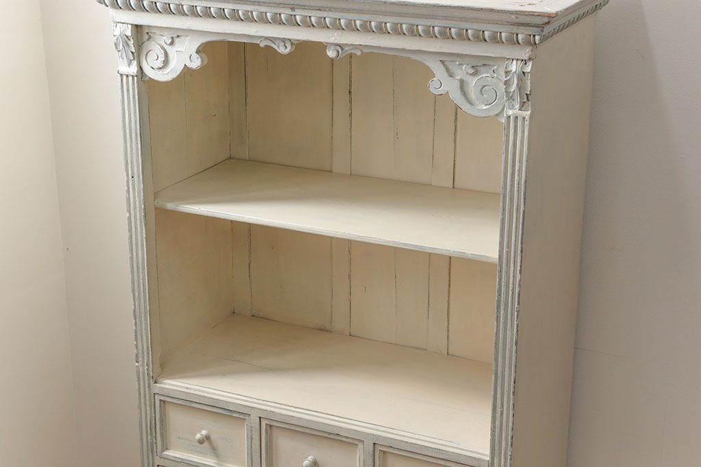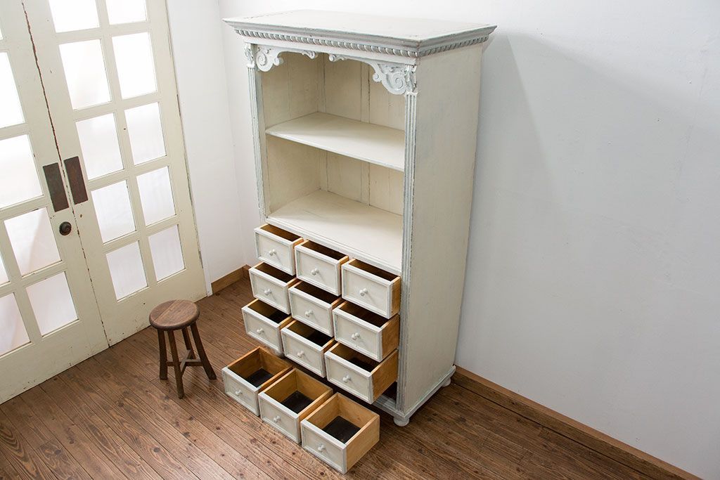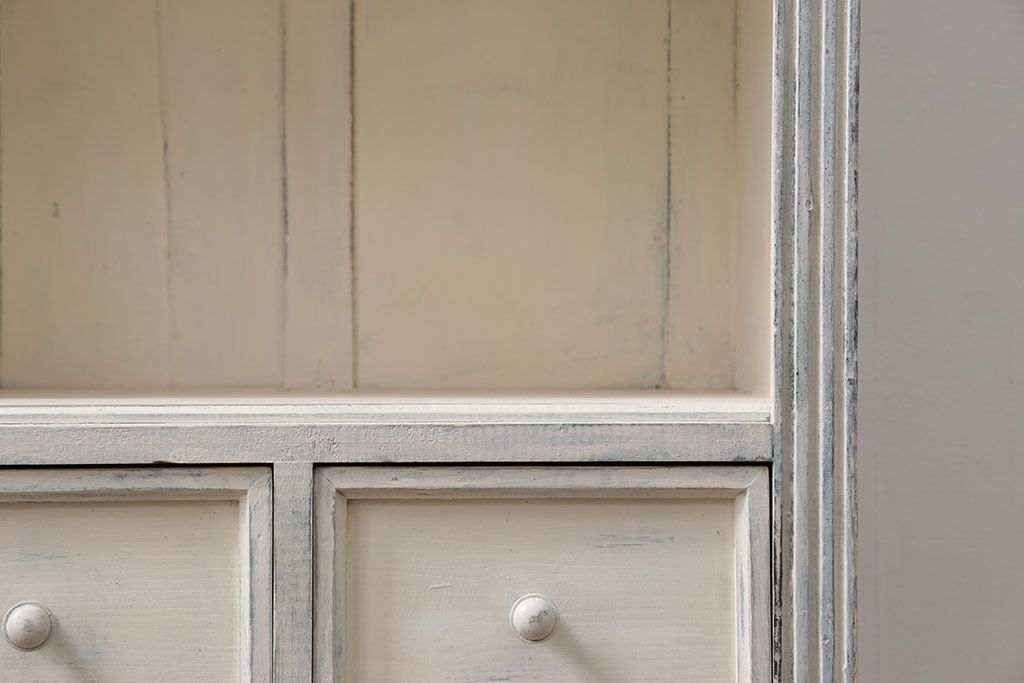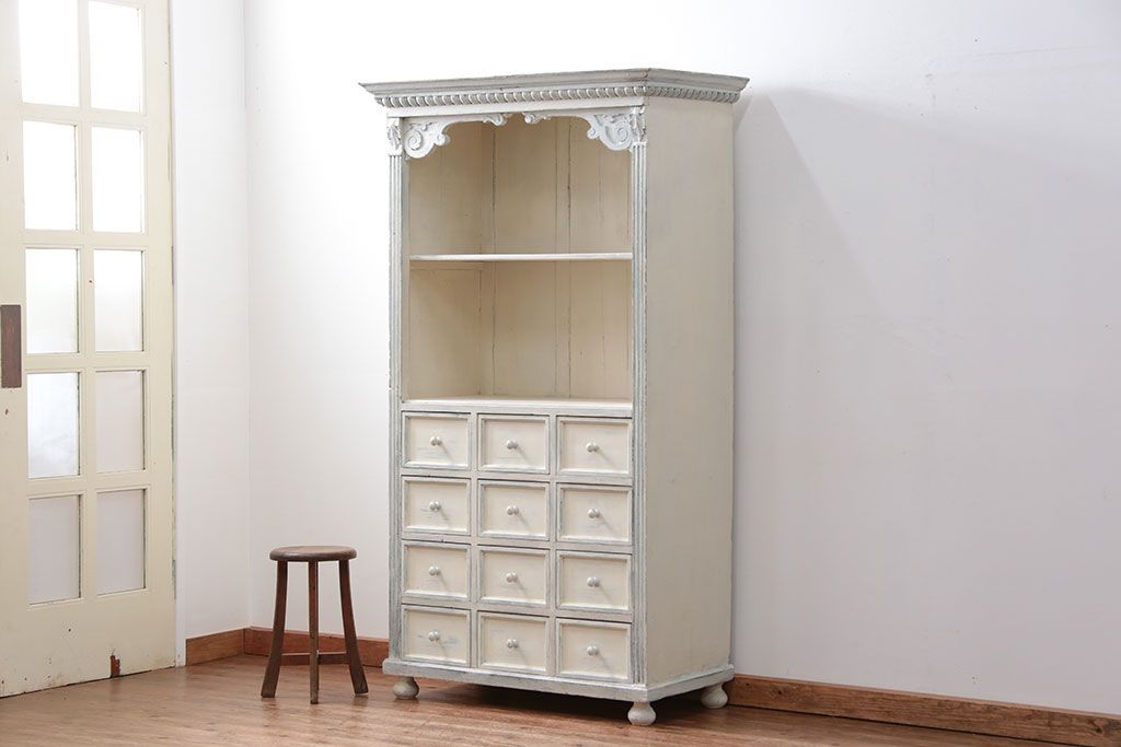 ラフジュ工房> オープンラック・シェルフ> 本棚 > アンティーク家具 フランスアンティーク シャビーなペイントのフレンチキャビネット(2)(収納棚、飾り棚)