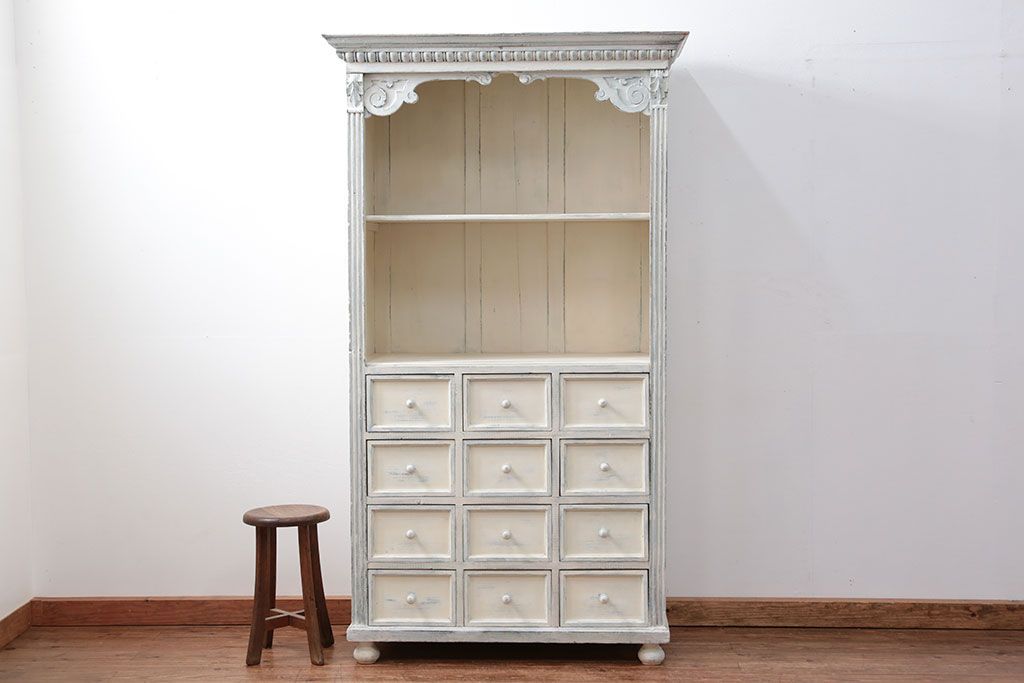 ラフジュ工房> オープンラック・シェルフ> ディスプレイラック > アンティーク家具 フランスアンティーク シャビーなペイントのフレンチキャビネット(2)(収納棚、飾り棚)