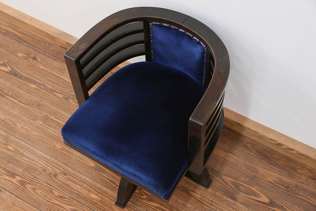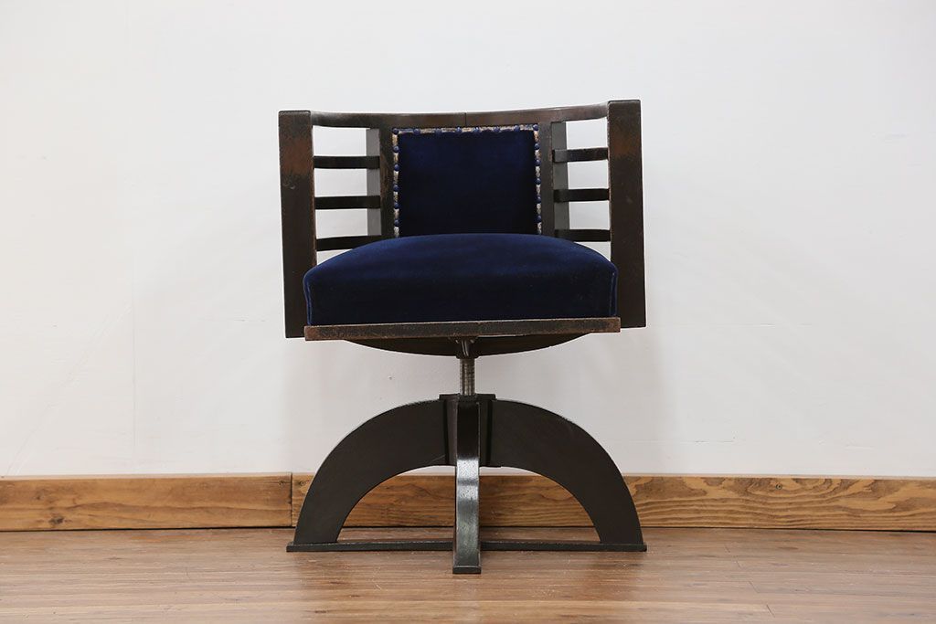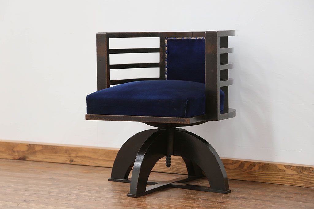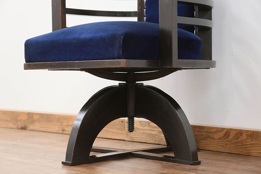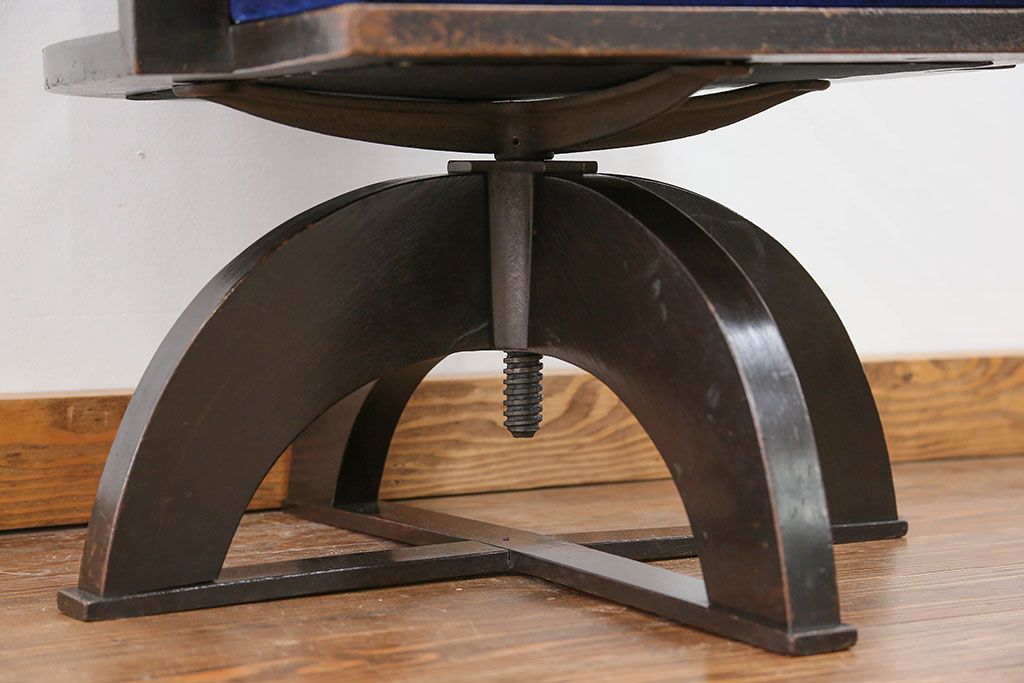 アンティーク家具 大正ロマン 古いナラ材の重厚な回転椅子(ドクターチェア、回転イス)