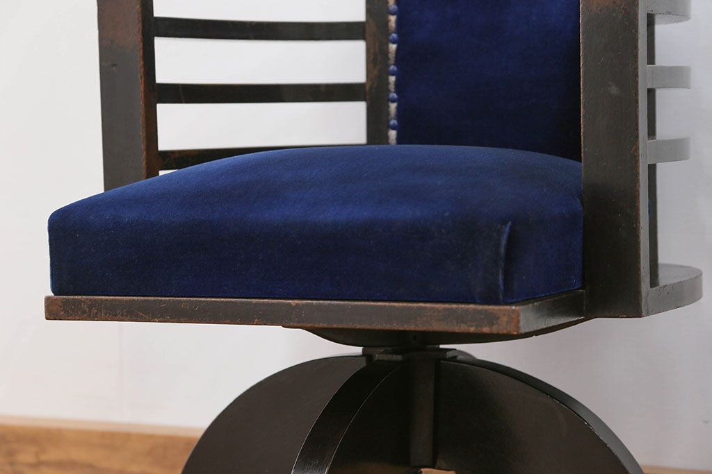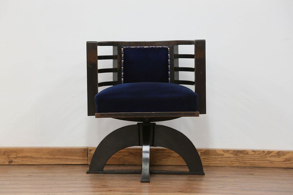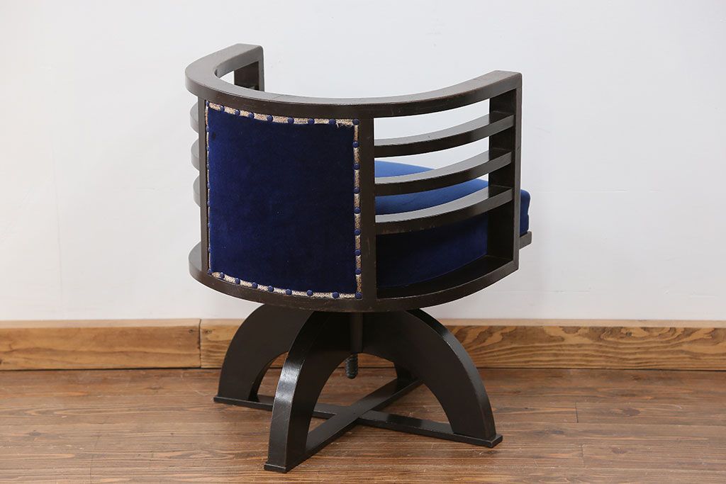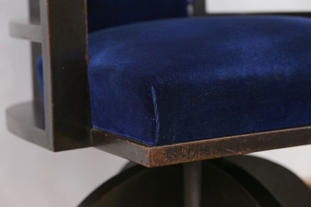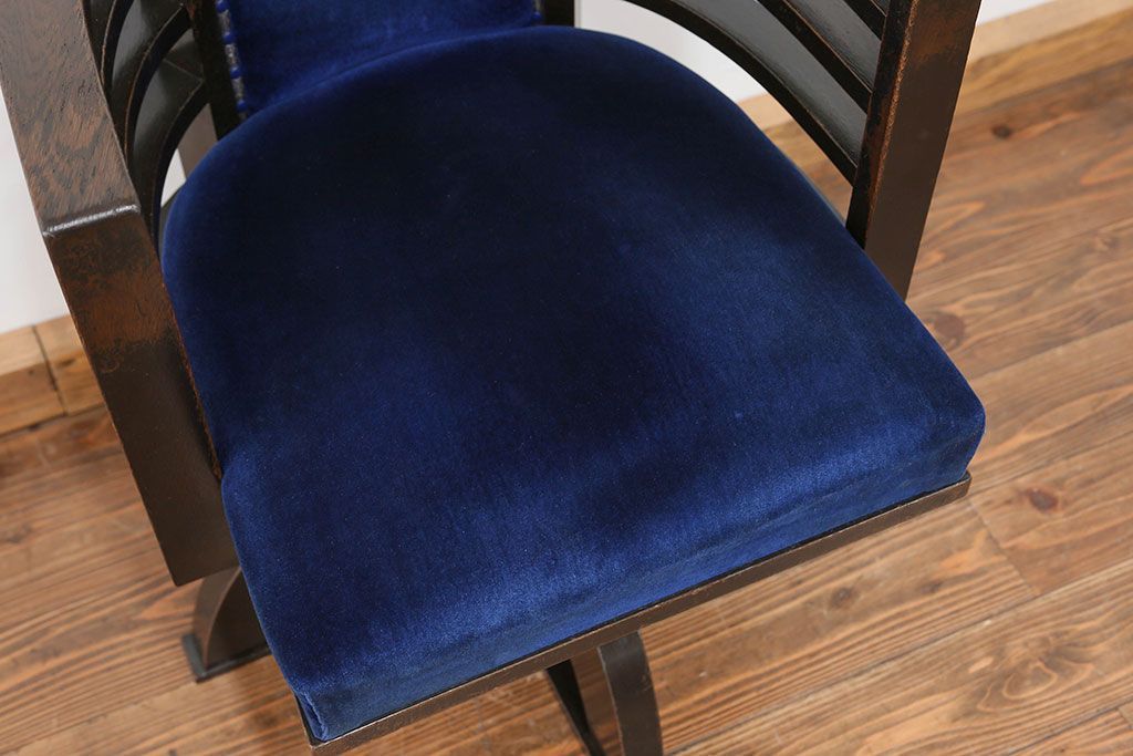 アンティーク家具 大正ロマン 古いナラ材の重厚な回転椅子(ドクターチェア、回転イス)