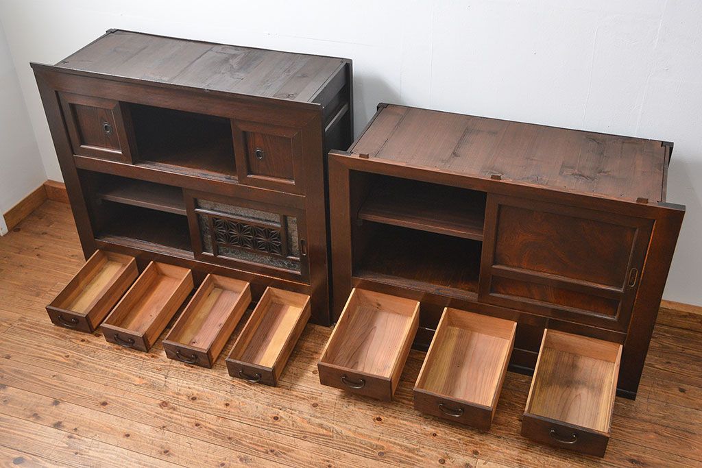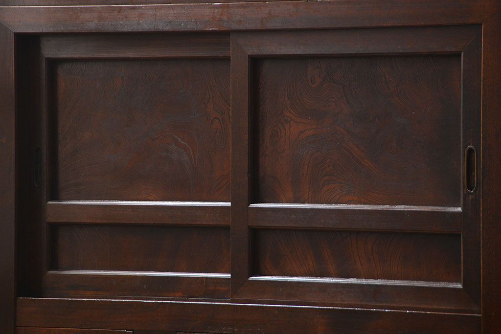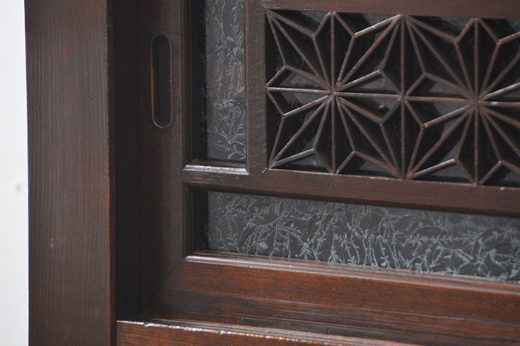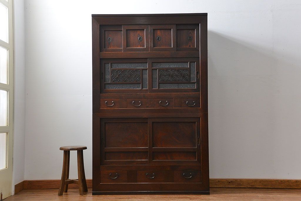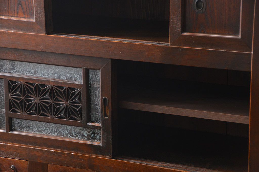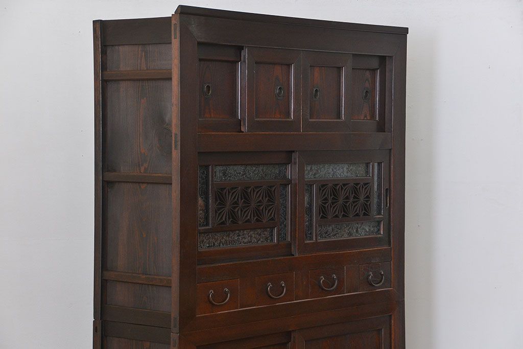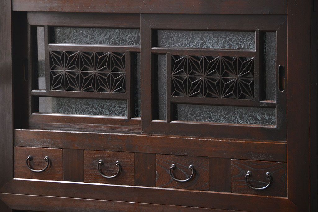 和箪笥> 水屋箪笥 > アンティーク家具 古民具・骨董 組子細工が上品な3.5尺水屋箪笥(食器棚、戸棚、茶箪笥)